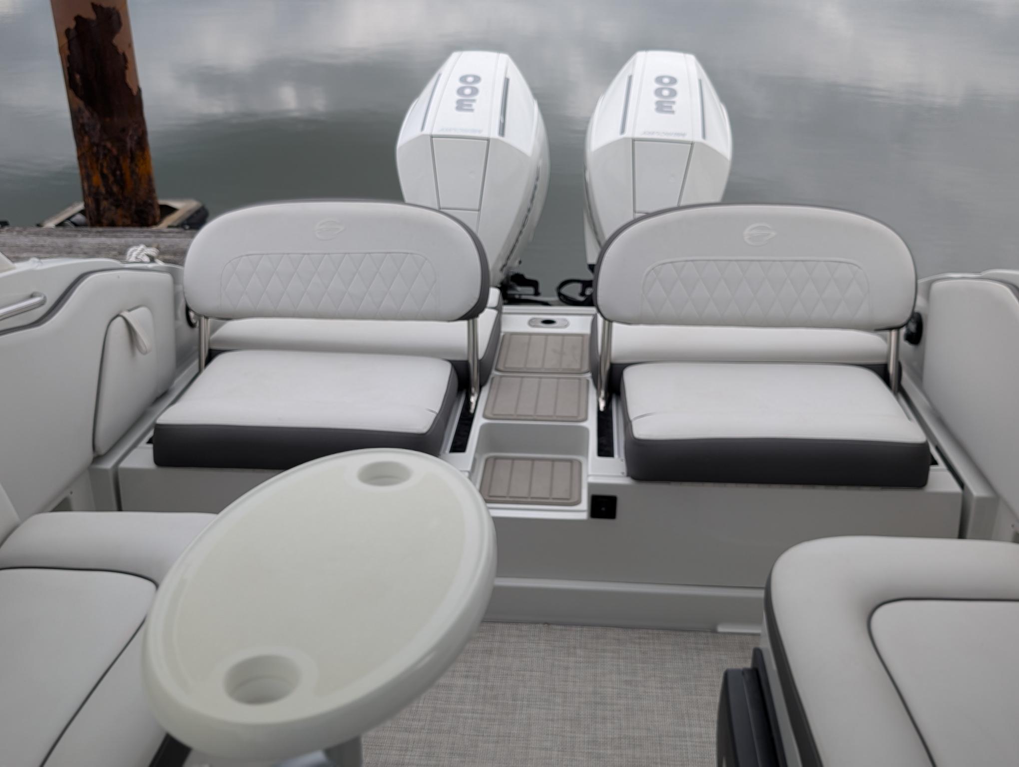 In addition to its recreational appeal, the Crownline E305 XS offers numerous practical benefits that make ownership a breeze. The ample storage space ensures you can keep your gear organized and easily accessible, while the intuitive helm and responsive engines simplify docking and maneuvering. The boat’s efficient design helps optimize fuel usage, so you can spend more time on the water and less time at the pump.The E305 XS is also easy to maintain, thanks to its high-quality materials and thoughtful engineering. Whether you’re a seasoned boater or new to the hobby, you’ll appreciate the convenience and reliability this model provides. Its twin-engine setup offers added security, making it a smart choice for those who value peace of mind during their adventures.