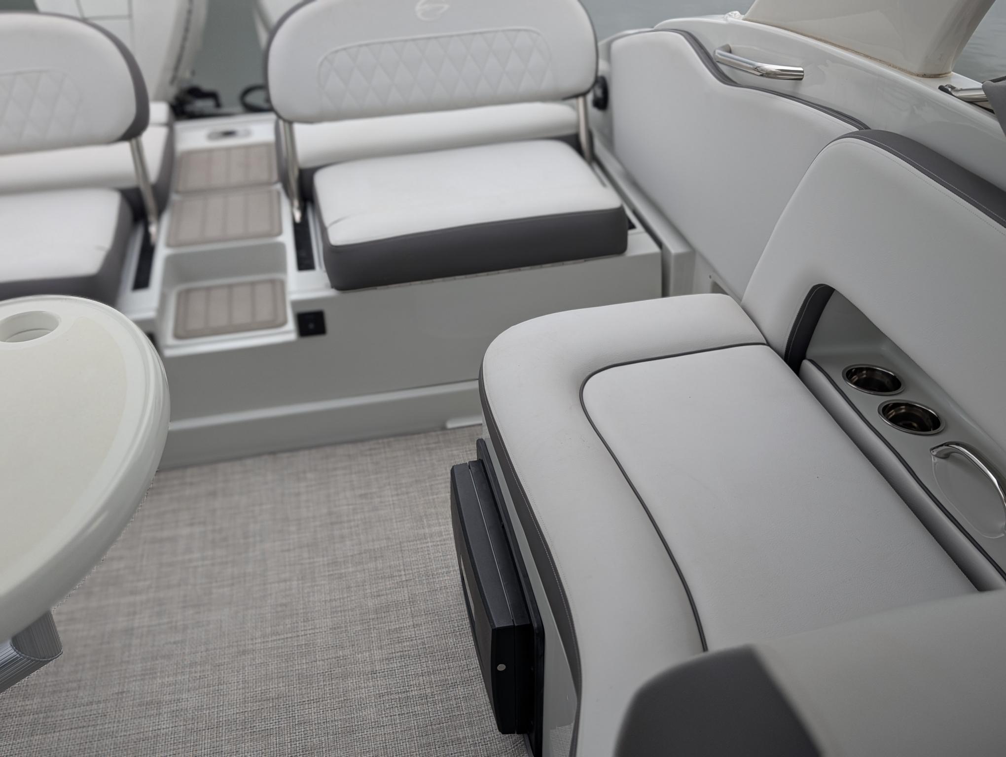 Under the hood, the Crownline E305 XS boasts twin engines delivering a combined 600 horsepower, ensuring exhilarating performance and smooth handling. With two engines, this Bowrider offers enhanced maneuverability and reliability, making it a top choice for those who demand power and precision. The low engine hours—just 30—mean you’ll enjoy many seasons of dependable operation. Whether you’re cruising at high speeds, towing water toys, or navigating tight marinas, the E305 XS responds with agility and confidence. The robust engine setup also contributes to impressive acceleration and stability, allowing you to explore lakes, rivers, and coastal waters with ease.