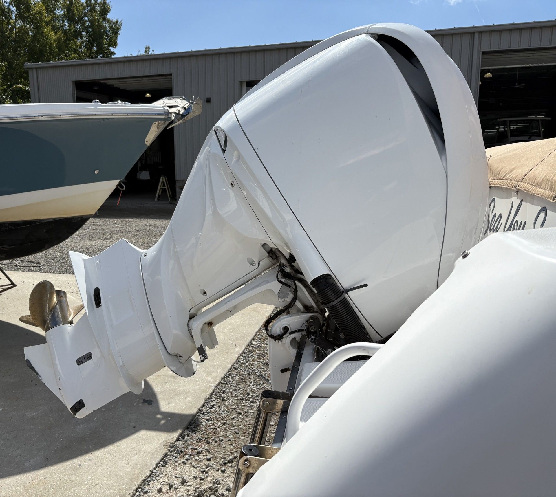 Stars & Stripes Blue Hull Color White Awlgrip Painted Engine