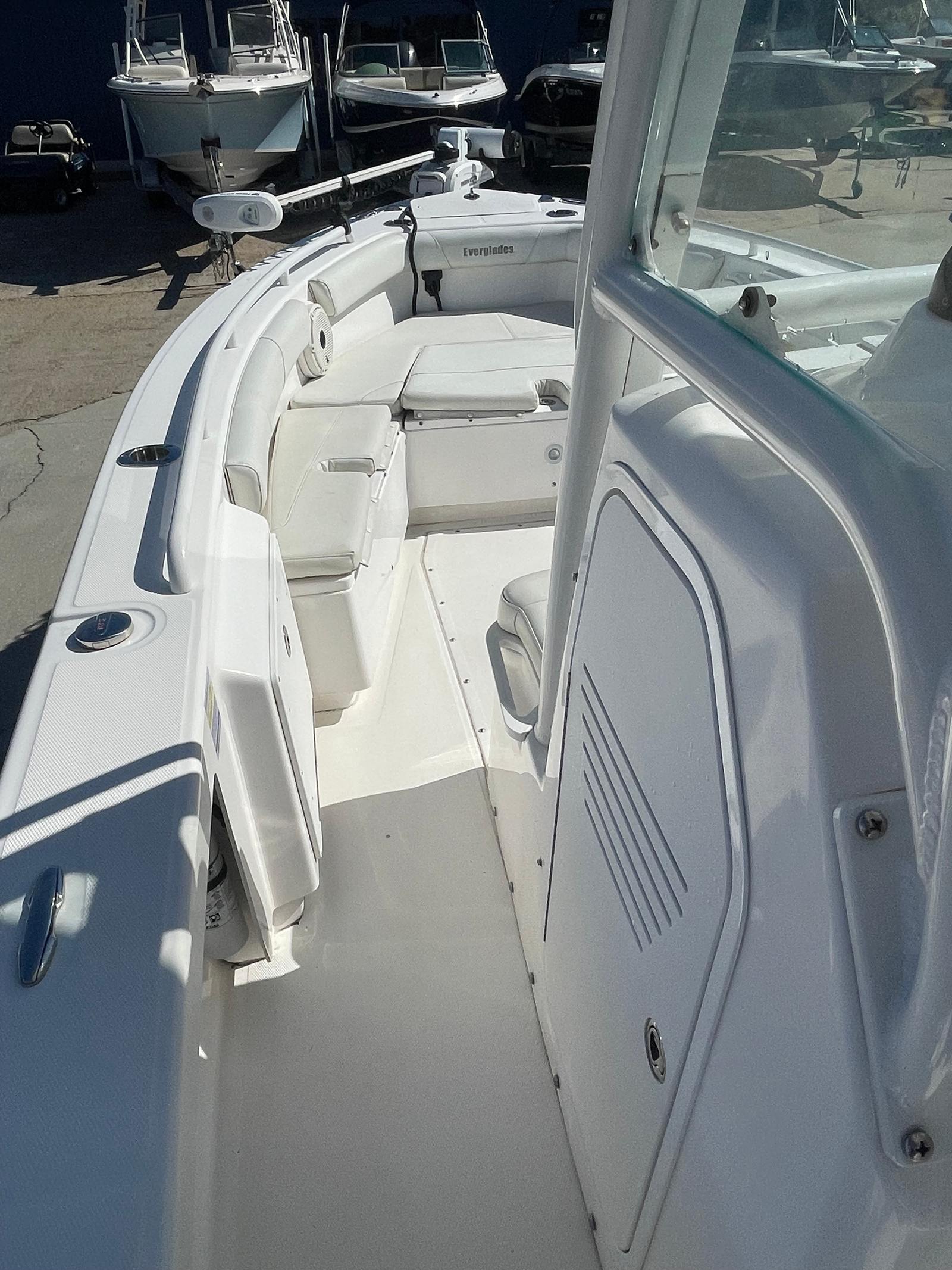 Practicality is at the heart of the Everglades 243 CC’s design. The boat’s ample storage compartments make it easy to stow fishing gear, water toys, and personal items, keeping the deck clutter-free and organized. The center console configuration allows for easy docking and maneuvering, even in tight spaces, making it a breeze to visit marinas, waterfront restaurants, or secluded coves. The efficient engine ensures you can enjoy longer trips without frequent refueling stops, while the sturdy construction provides peace of mind in varying weather conditions. Whether you’re planning a weekend getaway or a quick afternoon escape, this Everglades boat for sale offers the convenience and reliability you need for stress-free boating.