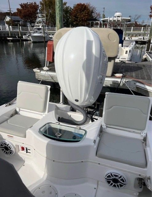 The 2022 Everglades 243 CC is a 25.67-foot Center Console boat that exemplifies the brand’s commitment to quality and innovation. With its sleek lines, robust construction, and thoughtful layout, this used Everglades boat for sale offers a unique blend of functionality and luxury. The 243 CC model is celebrated for its spacious deck, ergonomic helm, and ample seating, making it ideal for both serious fishing expeditions and leisurely cruises with friends and family. Its 2022 model year ensures you benefit from the latest design enhancements and modern features, while its gently used condition with only 167 engine hours means it is ready for many more adventures on the water.