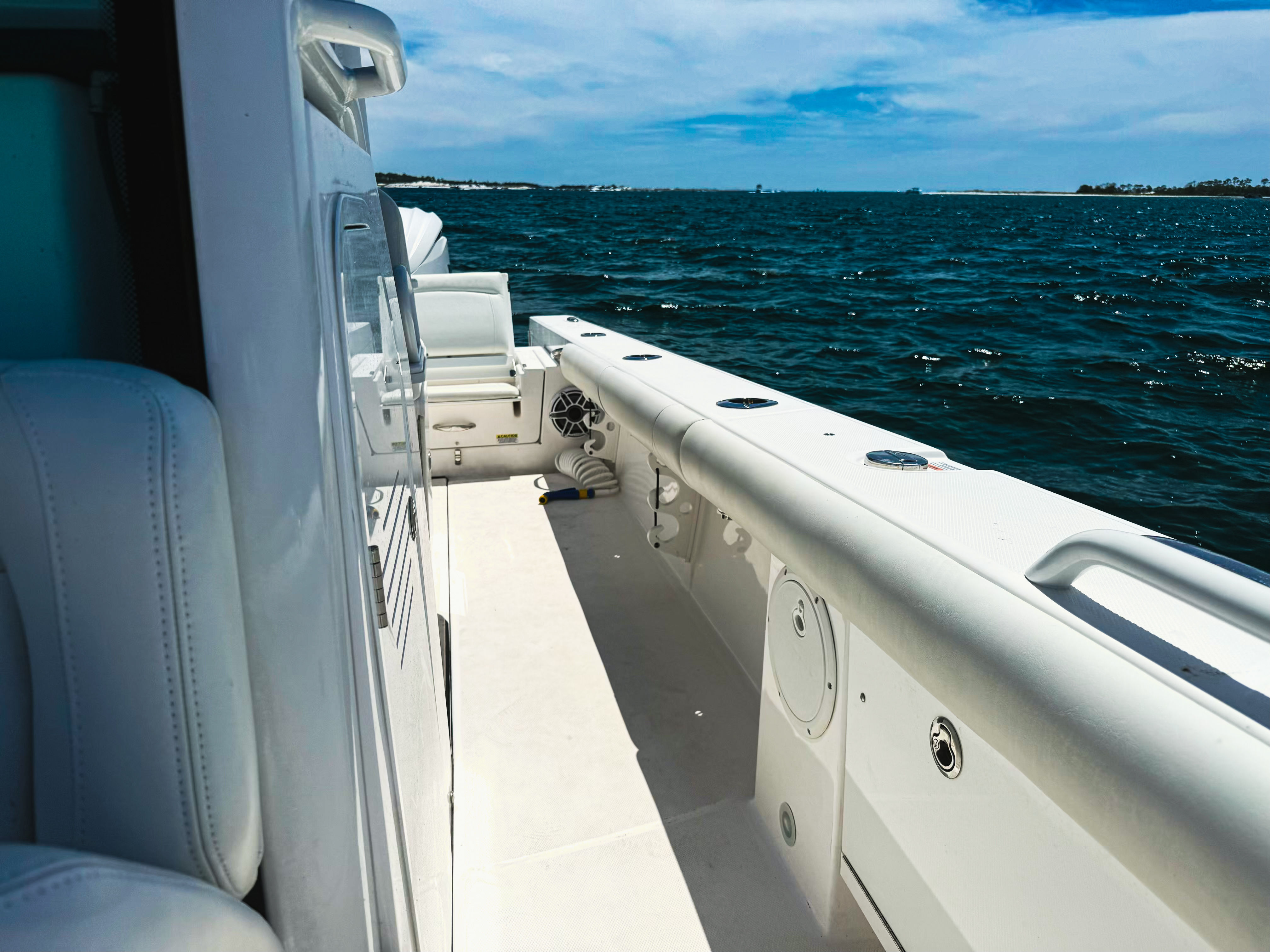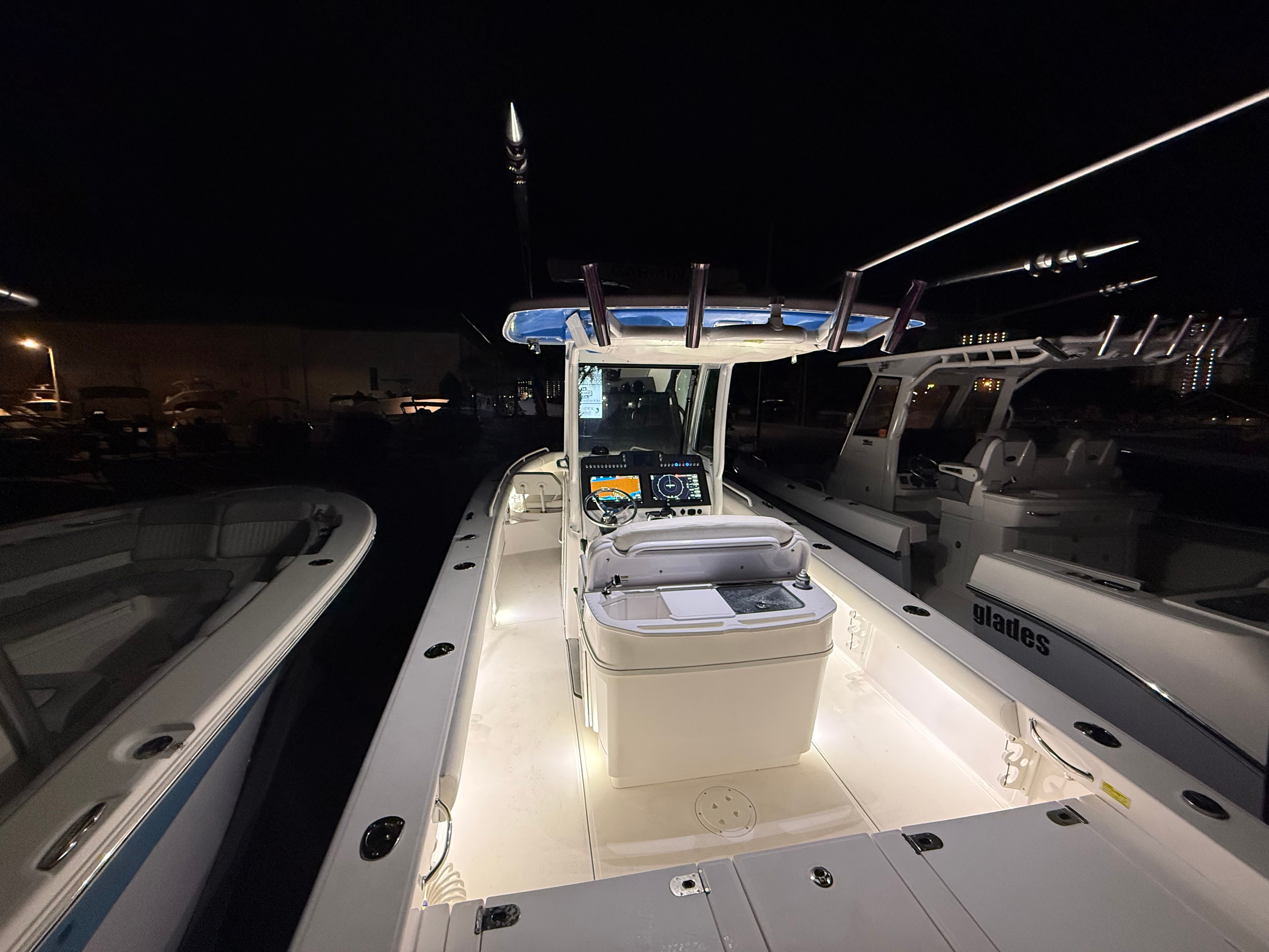 Powering the 2023 Everglades 273 CC are twin engines delivering a combined 600 horsepower. With only 6 hours on the engines, you can expect peak performance and longevity. The dual-engine setup ensures robust acceleration, smooth cruising, and impressive top speeds, making it ideal for offshore runs, quick trips to your favorite fishing spot, or leisurely cruises along the coast. The responsive handling and stability of the Everglades 273 CC make it a joy to captain, even in challenging conditions. Whether you are chasing the next big catch or enjoying a sunset cruise, this Center Console boat for sale delivers a thrilling and confident ride.