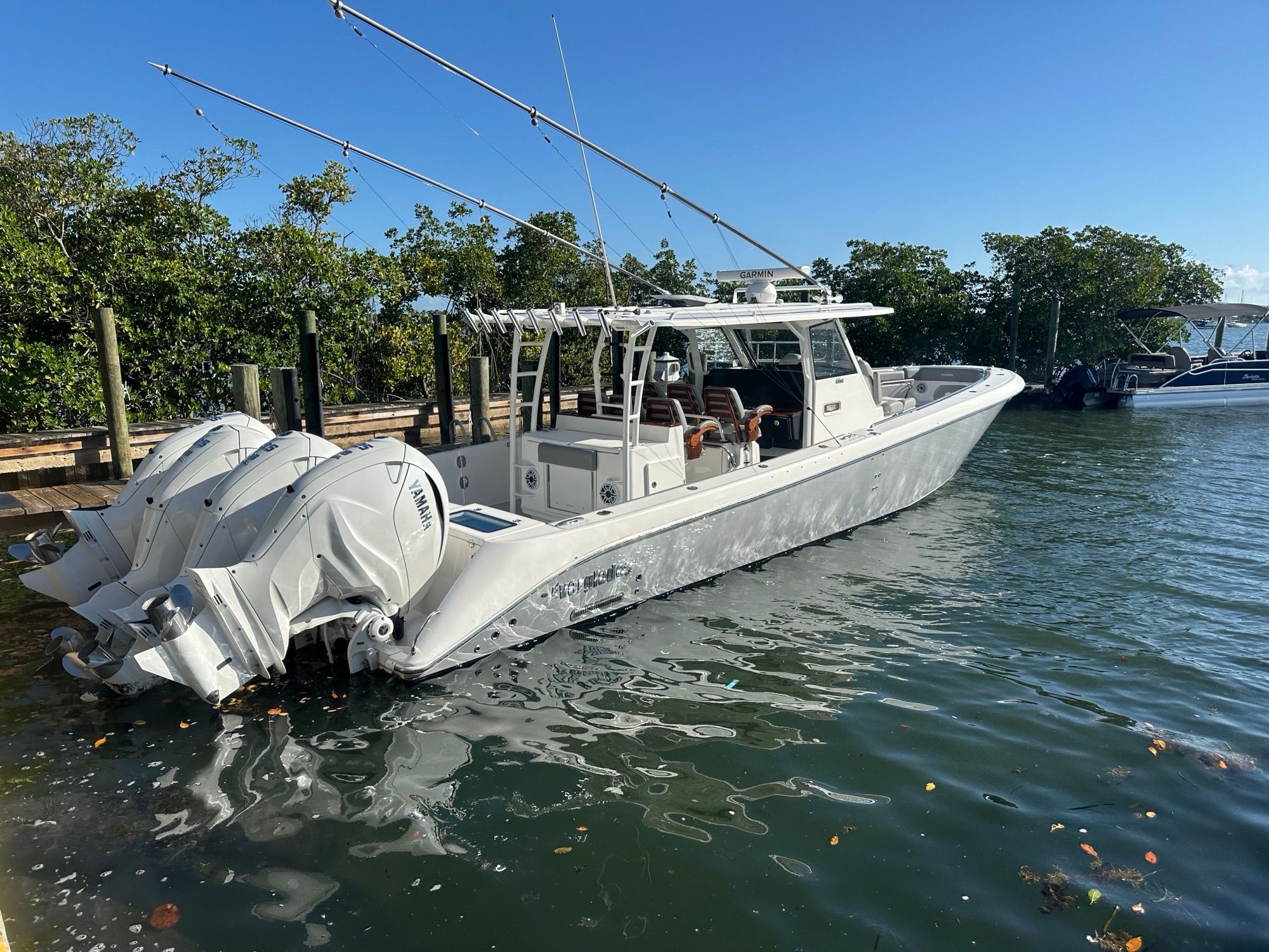 In summary, the 2021 Everglades 435 CC is a remarkable center console boat for sale that offers unparalleled performance, versatility, and luxury. With its impressive 45-foot length, quad engines delivering 1,700 horsepower, and a host of premium features, this used Everglades boat for sale is an exceptional opportunity for discerning buyers. Whether you are seeking adventure, relaxation, or the ultimate fishing experience, the 435 CC is ready to deliver. Don’t miss your chance to own one of the finest center console boats on the market—contact the dealer today to learn more and schedule your personal viewing.