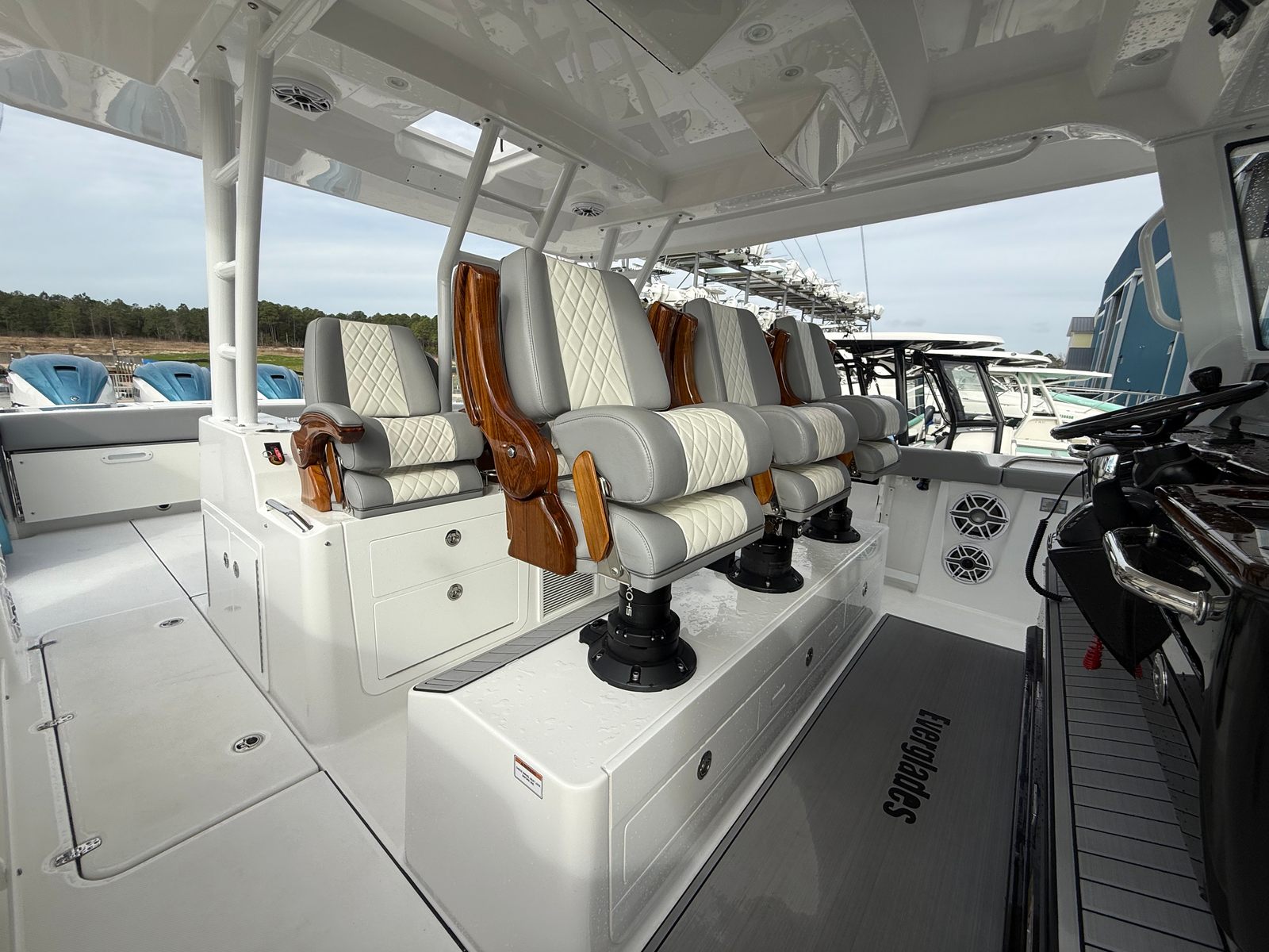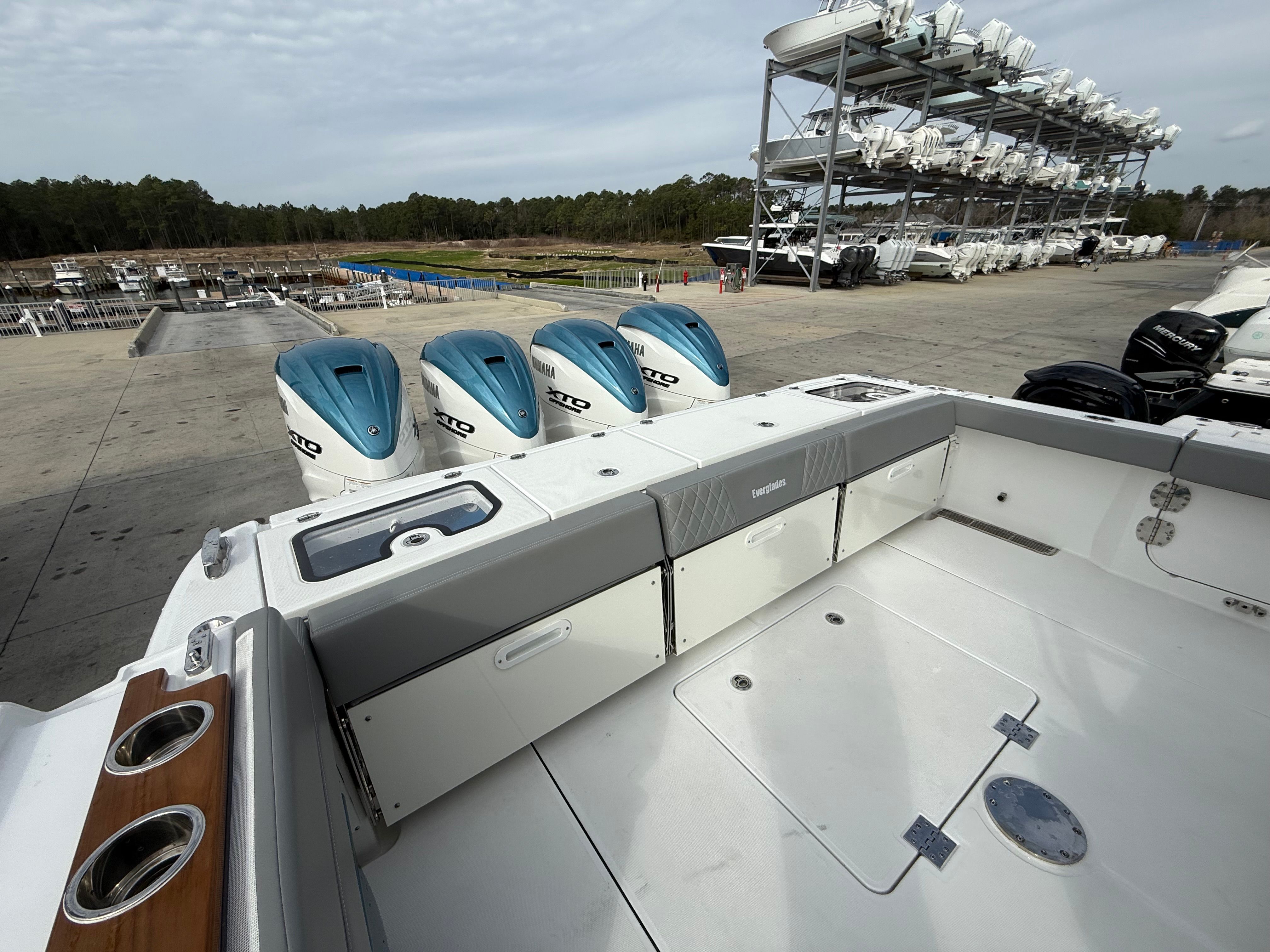 Power and precision are at the heart of the Everglades 455 CC. Equipped with four powerful engines delivering a combined 1800 horsepower, this center console boat offers exhilarating speed and responsive handling. The quad-engine setup ensures that you have the thrust and reliability needed for offshore adventures, long-distance cruising, or quick trips to your favorite fishing spots. With only 1 engine hour, these engines are practically new, providing peace of mind and years of dependable performance ahead. Whether you are navigating open waters or maneuvering in tight marinas, the Everglades 455 CC’s advanced engineering guarantees a smooth and confident ride.