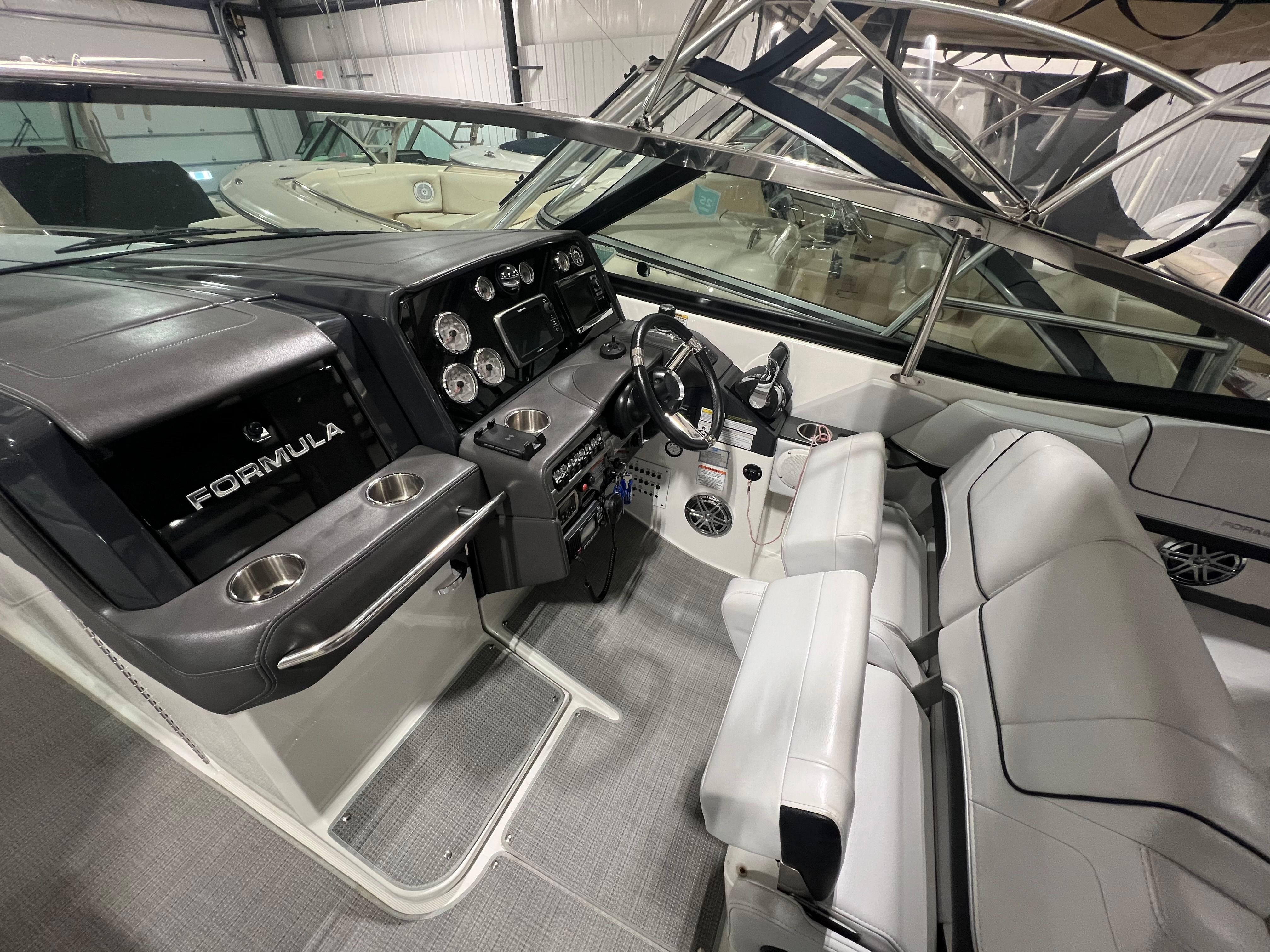 Powering the Formula 330 CBR are two robust engines, delivering a combined 760 horsepower. With 731 engine hours, these engines have proven their reliability and are ready to provide exhilarating performance for years to come. The twin-engine setup ensures smooth acceleration, responsive handling, and impressive speed, making this Formula boat for sale a true standout in its class. Whether you’re navigating open waters or docking at the marina, you’ll appreciate the confidence and control that comes with this powerful cruiser.