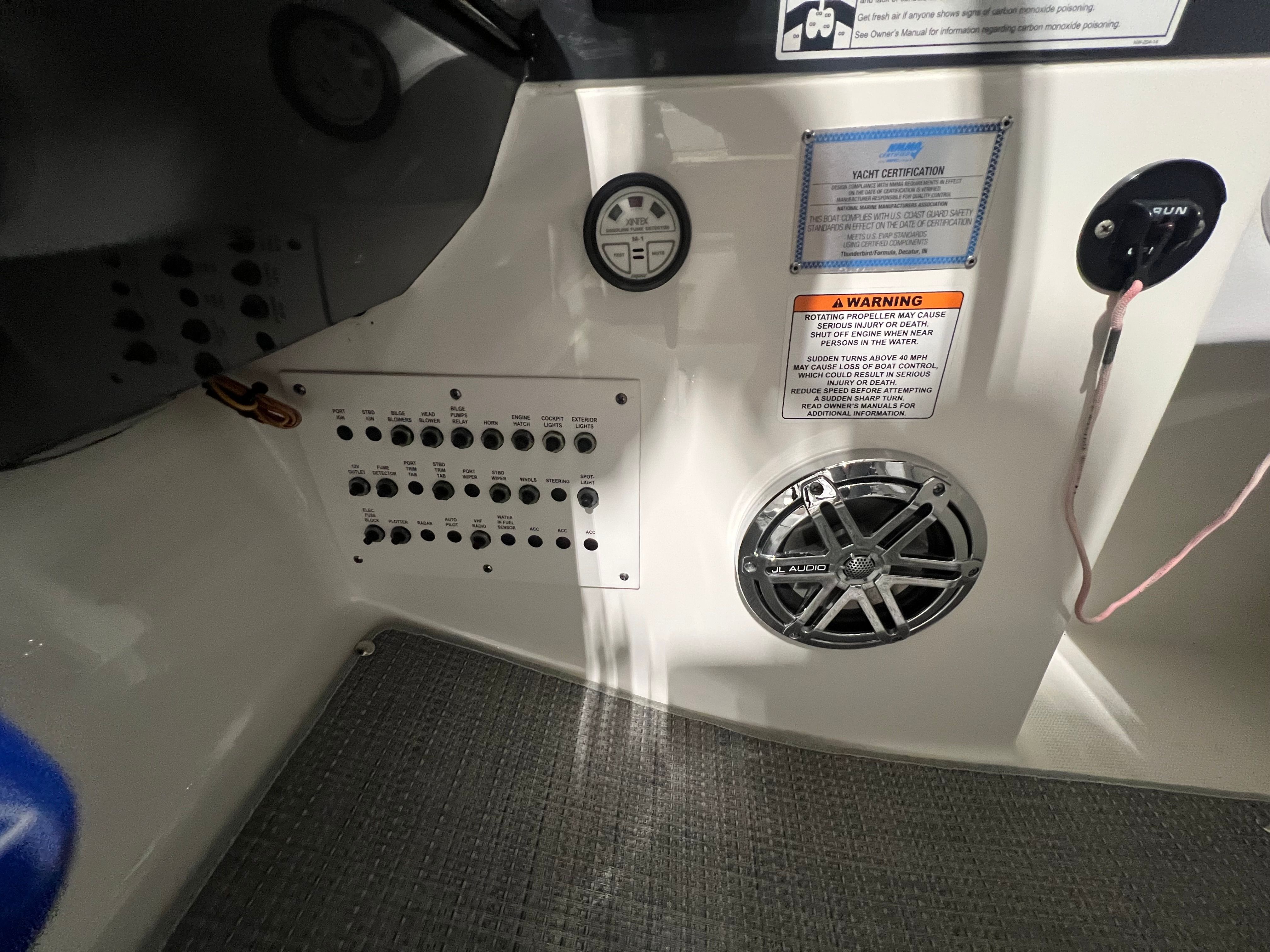 The Formula 330 CBR is designed with practicality in mind, making ownership both enjoyable and convenient. The battery charger keeps your systems running smoothly, while the bottom paint reduces maintenance requirements and helps preserve the boat’s sleek appearance. The bow and cockpit covers offer protection from the elements, ensuring your investment stays in top condition year after year. Docking and storage are made easier thanks to the boat’s manageable 33-foot length, allowing you to access a variety of marinas and slips with confidence. The twin engines provide excellent maneuverability, making docking and navigating tight spaces a stress-free experience. Fuel efficiency is enhanced by Formula’s advanced engineering, so you can spend more time on the water and less time at the pump.