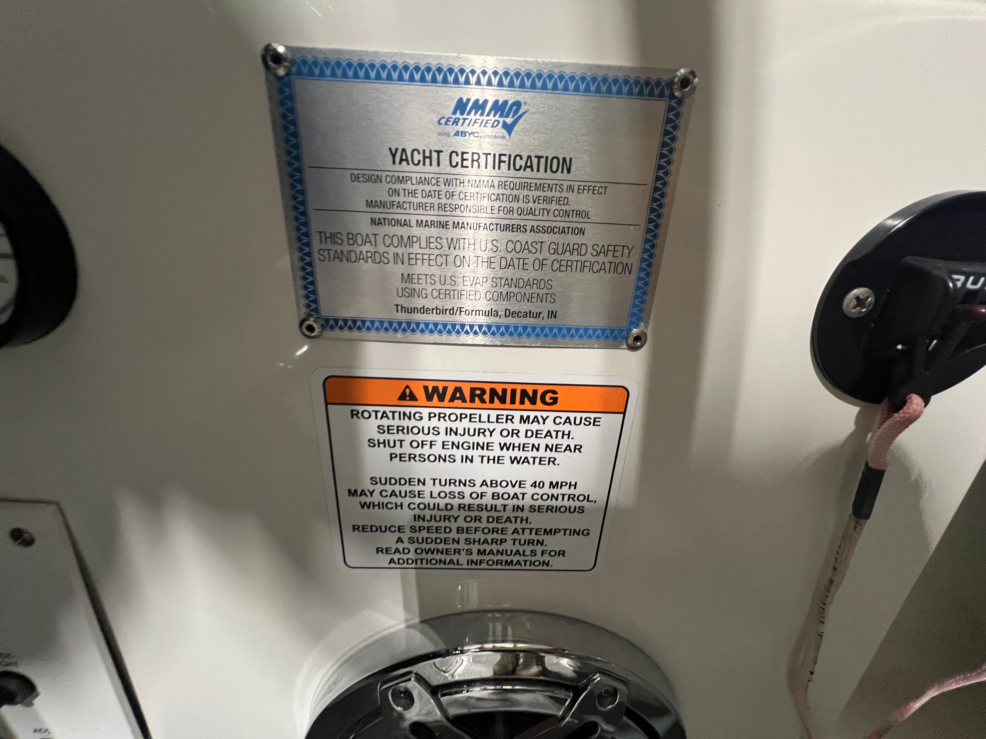 The 2016 Formula 330 CBR is packed with special features designed to enhance your boating experience. Notably, the boat’s age is listed as 2026, reflecting its modern appeal and up-to-date amenities. The battery charger ensures your onboard electronics remain powered throughout your adventures, while the bimini top provides essential shade and protection from the sun. The bottom paint helps maintain the hull’s integrity and appearance, making maintenance a breeze. For added convenience and comfort, the bow cover and cockpit cover offer protection from the elements, keeping your boat in pristine condition. The camper enclosure extends your cruising season, allowing you to enjoy the water even in cooler weather. Inside, the cabin AC/heat system creates a comfortable environment regardless of the temperature outside, while the cockpit flooring features luxurious sea grass for a touch of elegance and easy cleaning. The black canvas color adds a sophisticated touch, complementing the boat’s overall aesthetic.