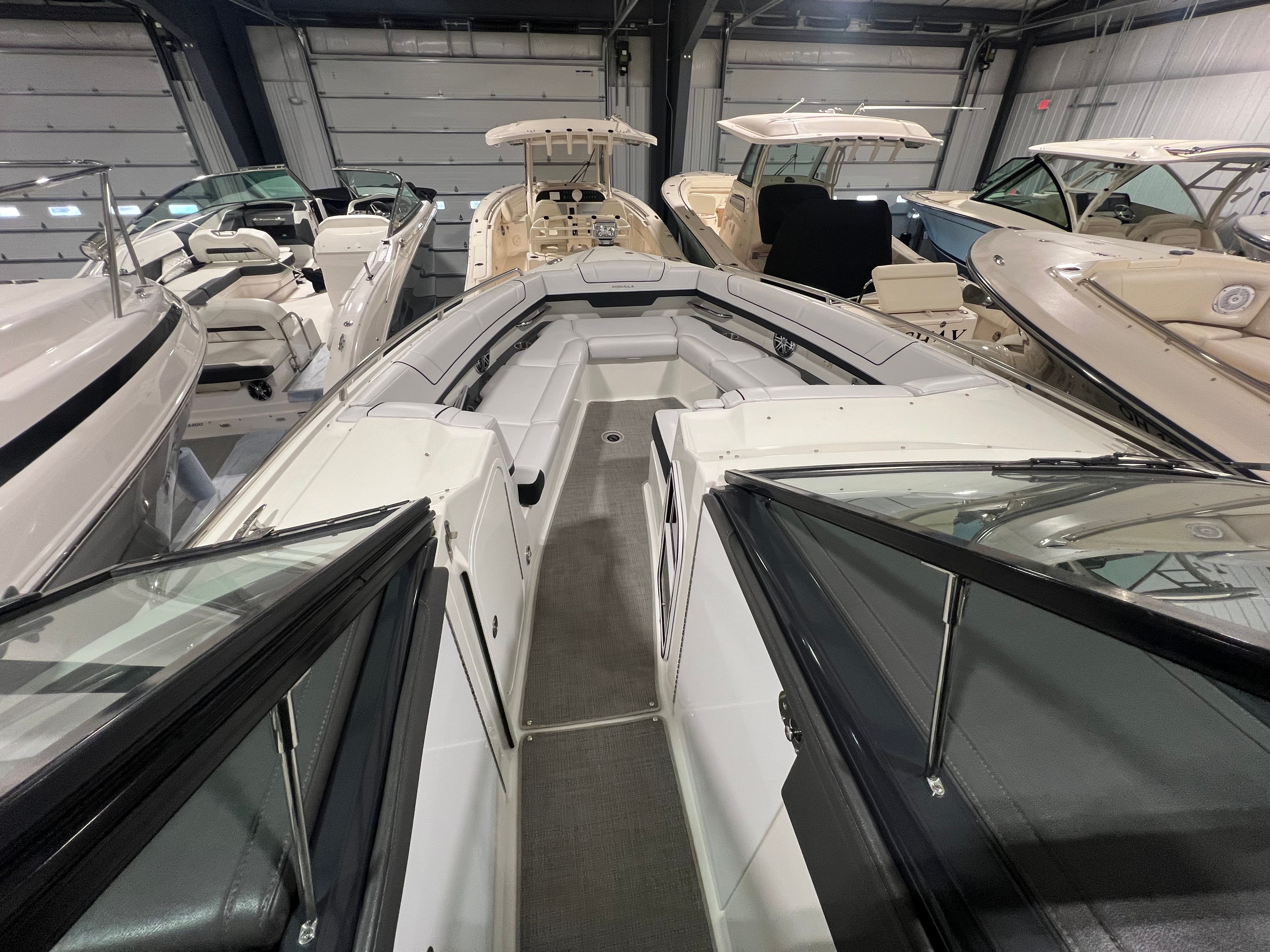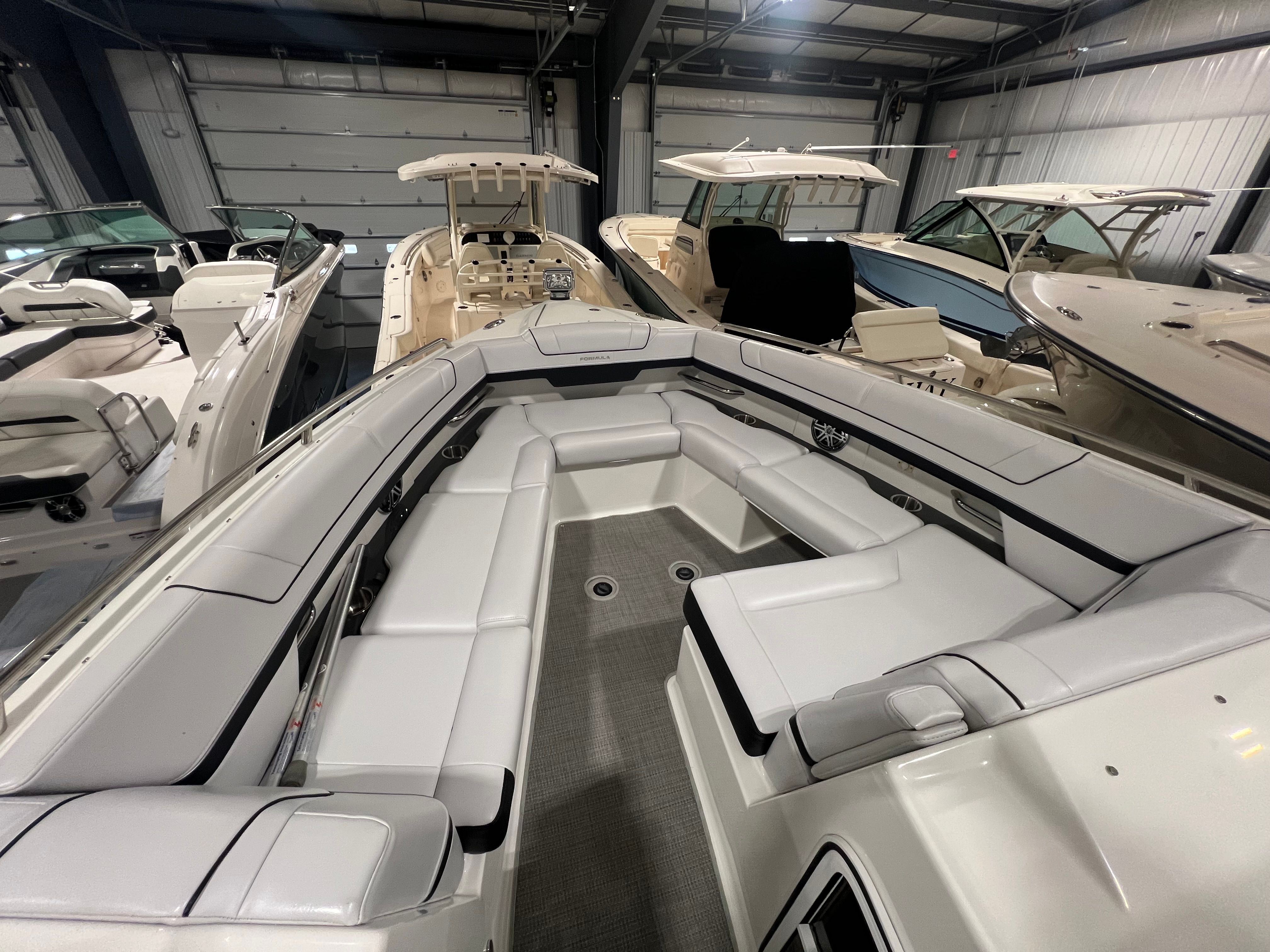 The Formula 330 CBR cruiser is the perfect choice for a wide range of boating activities. Families will love the spacious deck and comfortable cabin, ideal for day trips, picnics, and water sports. Fishing enthusiasts can take advantage of the boat’s stability and ample room for gear, while those seeking luxury getaways will appreciate the stylish design and premium amenities. Imagine setting out for a weekend escape, enjoying the comfort of cabin AC/heat, and relaxing under the bimini top as you cruise to your favorite destination. The camper enclosure allows you to extend your adventures into the cooler months, while the elegant sea grass flooring provides a touch of luxury throughout your journey. Whether you’re exploring new waters or revisiting beloved spots, the Formula 330 CBR is your ticket to endless fun and relaxation.