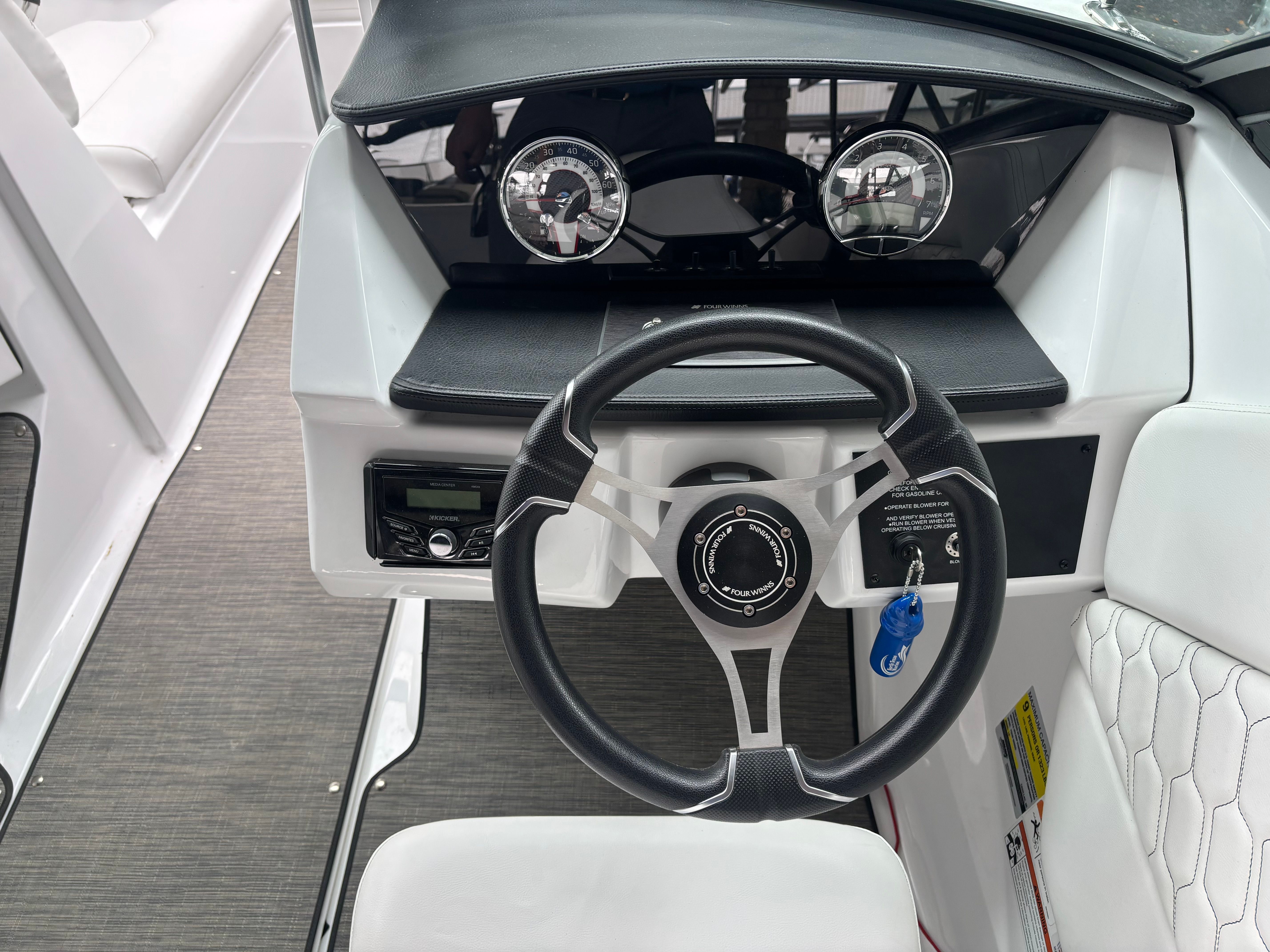 Under the hood, the Four Winns H1 is powered by a single engine delivering an impressive 250 horsepower. This robust engine ensures exhilarating acceleration, smooth handling, and reliable performance, whether you’re navigating calm lakes or coastal waters. The 250-horsepower engine provides plenty of power for towing water toys, wakeboarding, or simply enjoying a spirited ride across the waves. With responsive steering and a well-balanced hull, the H1 offers a confident and enjoyable driving experience for both seasoned boaters and newcomers alike.