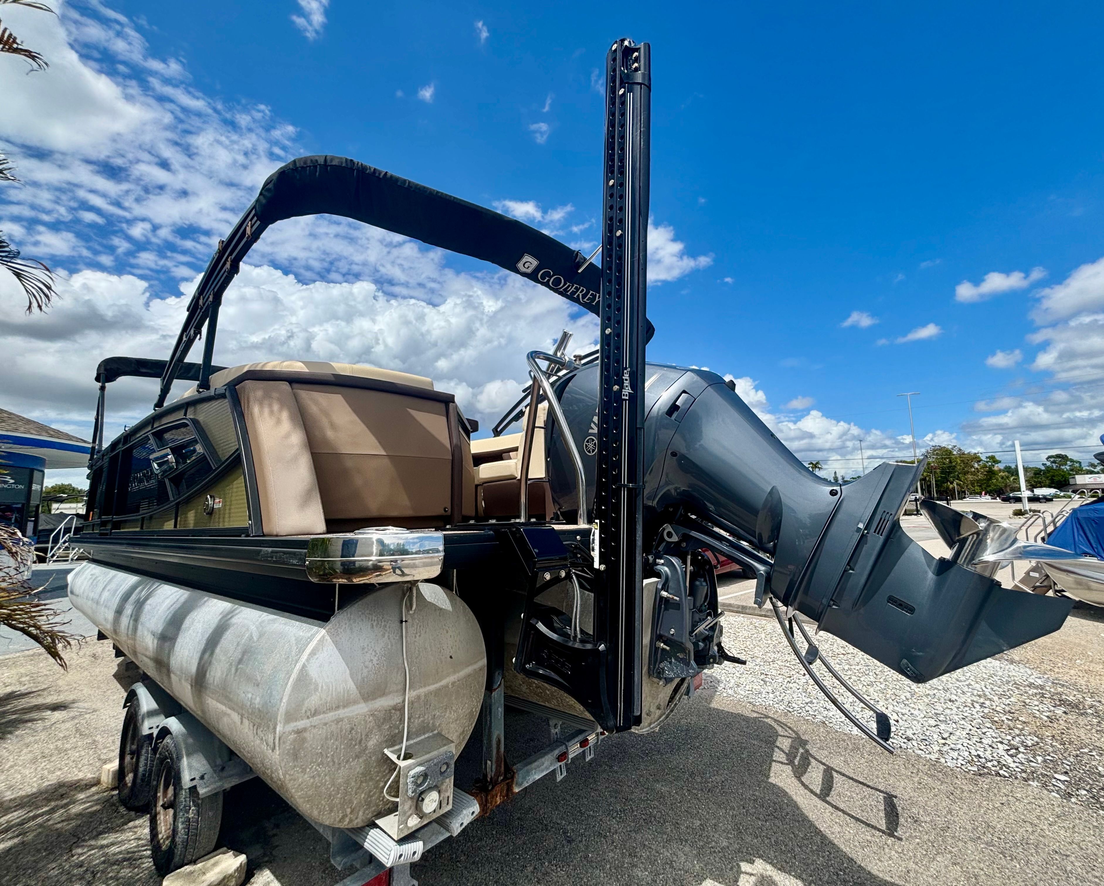 In summary, the 2022 Godfrey 235 SB Pontoon stands out as an exceptional choice for anyone seeking a high-quality pontoon boat for sale. With its impressive 23.75-foot length, powerful 300-horsepower engine, and low engine hours, this used Godfrey boat for sale offers the perfect balance of performance, comfort, and versatility. Whether you’re hosting gatherings, exploring new waterways, or simply unwinding in the sun, the Godfrey 235 SB is designed to make every moment on the water special. Don’t miss your chance to own this outstanding pontoon – contact your local dealer today to learn more and schedule a viewing. Your next adventure awaits with the Godfrey 235 SB Pontoon!