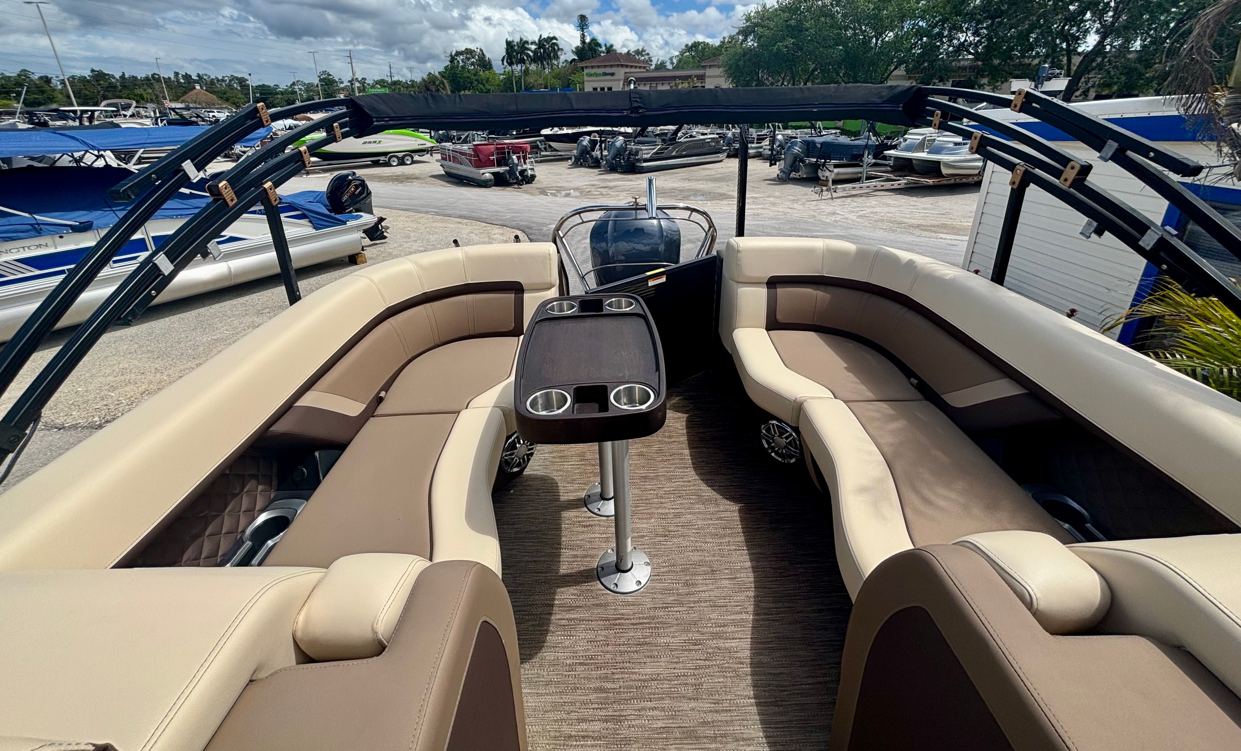 Under the hood, the Godfrey 235 SB is powered by a single engine boasting an impressive 300 horsepower. This robust engine ensures that you’ll have all the power you need for smooth cruising, quick acceleration, and thrilling rides across the lake or river. With 75 engine hours, the motor has been gently used and is ready to deliver reliable performance for years to come. The combination of power and efficiency makes this pontoon boat for sale an ideal choice for those who value both excitement and dependability on the water.
