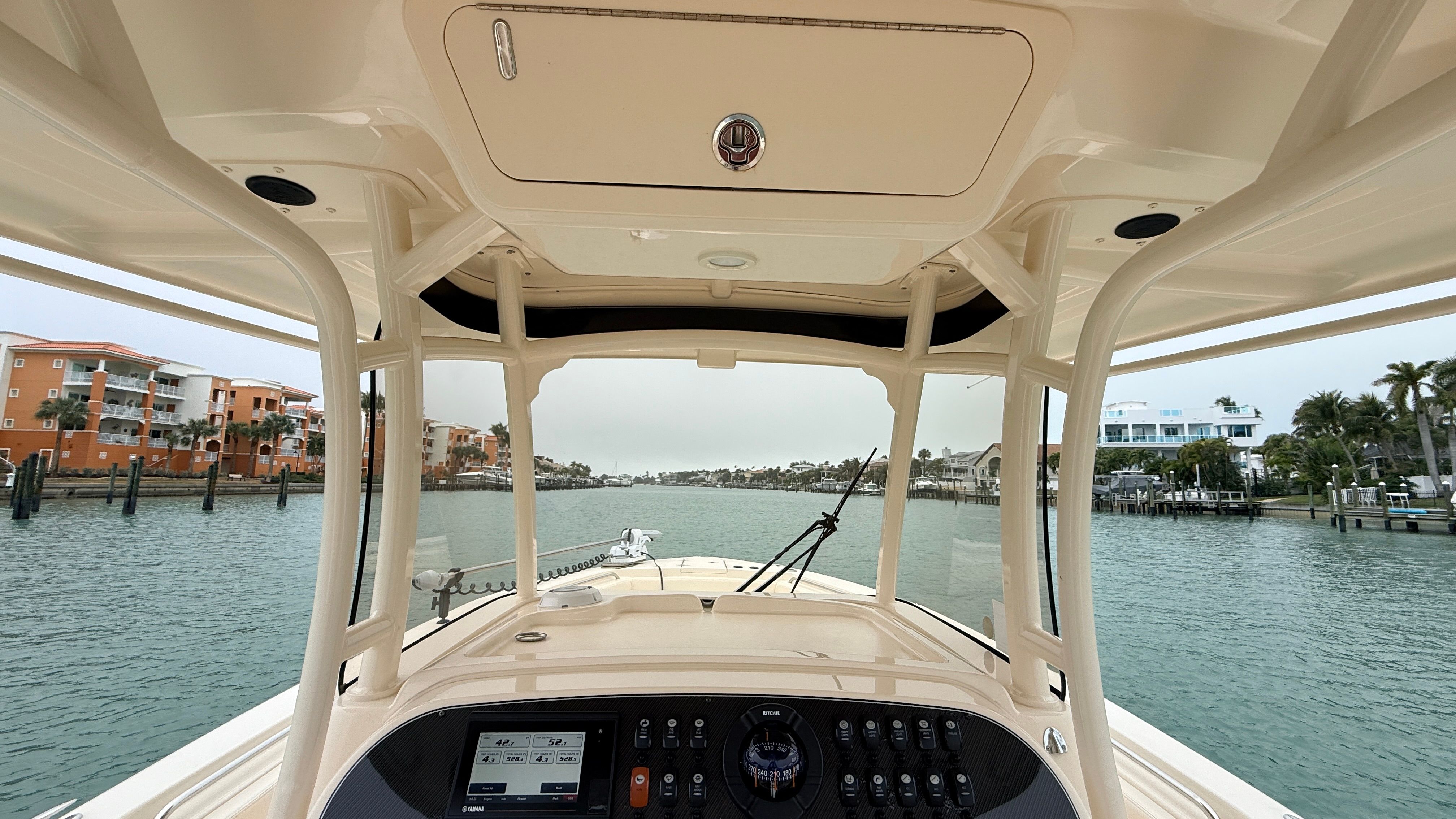 • Twin Yamaha F300 DEC (Digital Electronic Controls): Upgraded gray engines with just 499 confirmed hours. Always serviced annually by certified Yamaha technicians at Quality Boats.