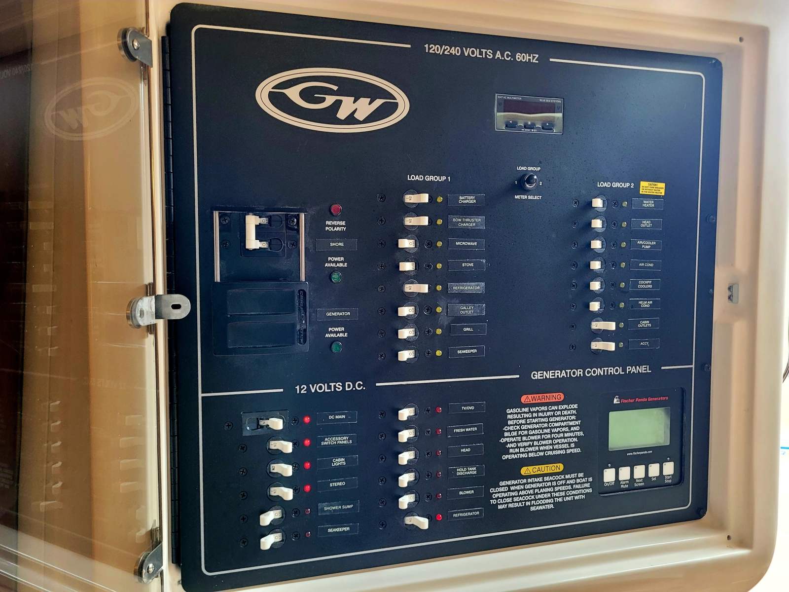 This model truly does do it all, its generous 13'2" beam affords an expansive cockpit and well appointed Helm area with extensive electronics including Garmin MFD's, Sea Keeper 5 Gyro, FLIR infra red camera and Tracvision Sat TV and Radar. Down below a grand cabin complete with galley to port and a convertible dinette area and enclosed head starboard. Then aft is a comfortable cabin. Options include:
