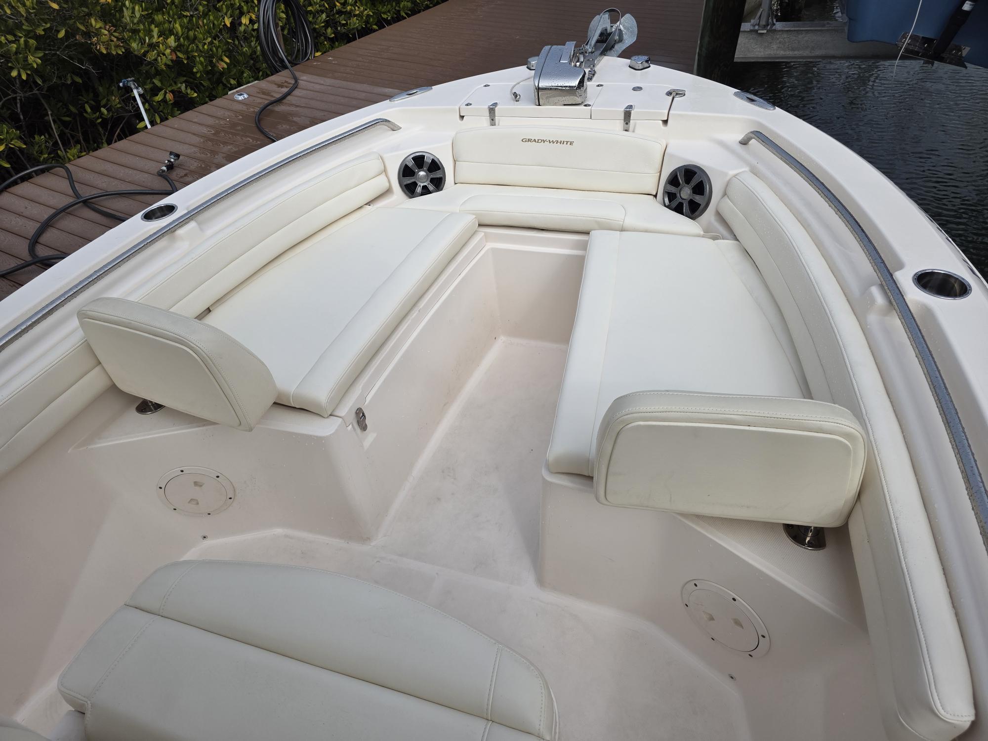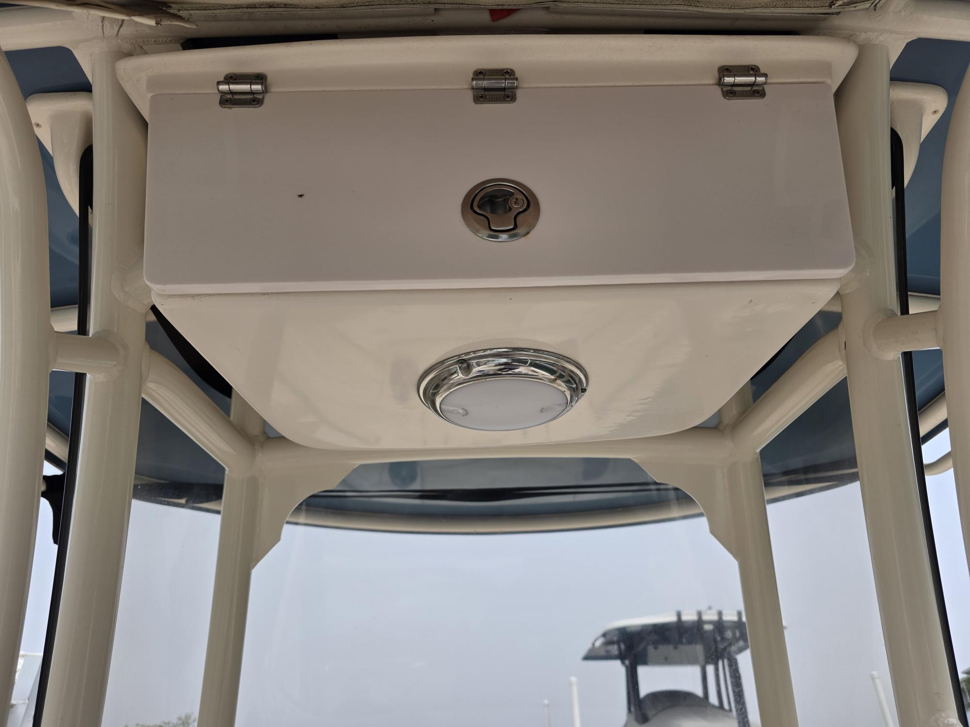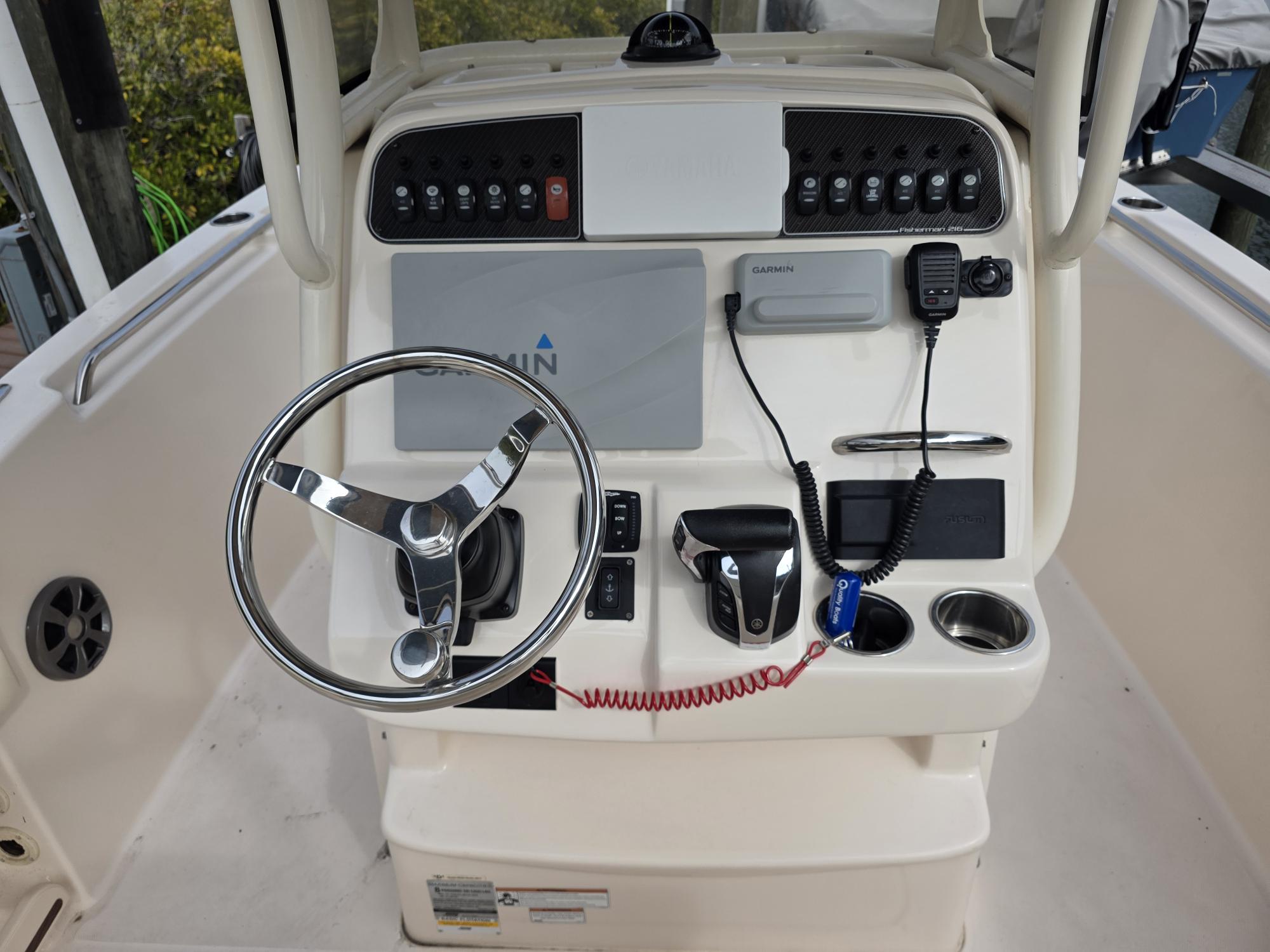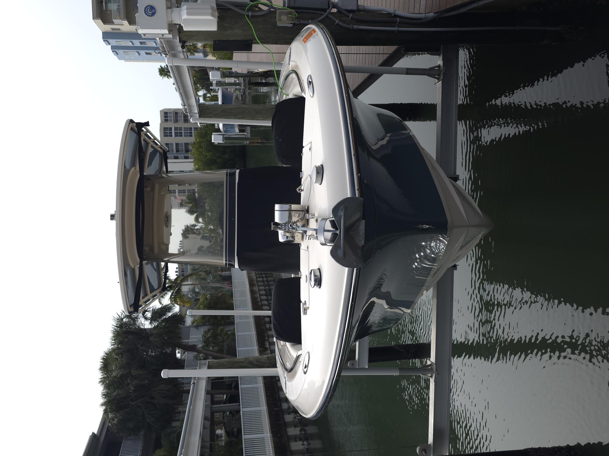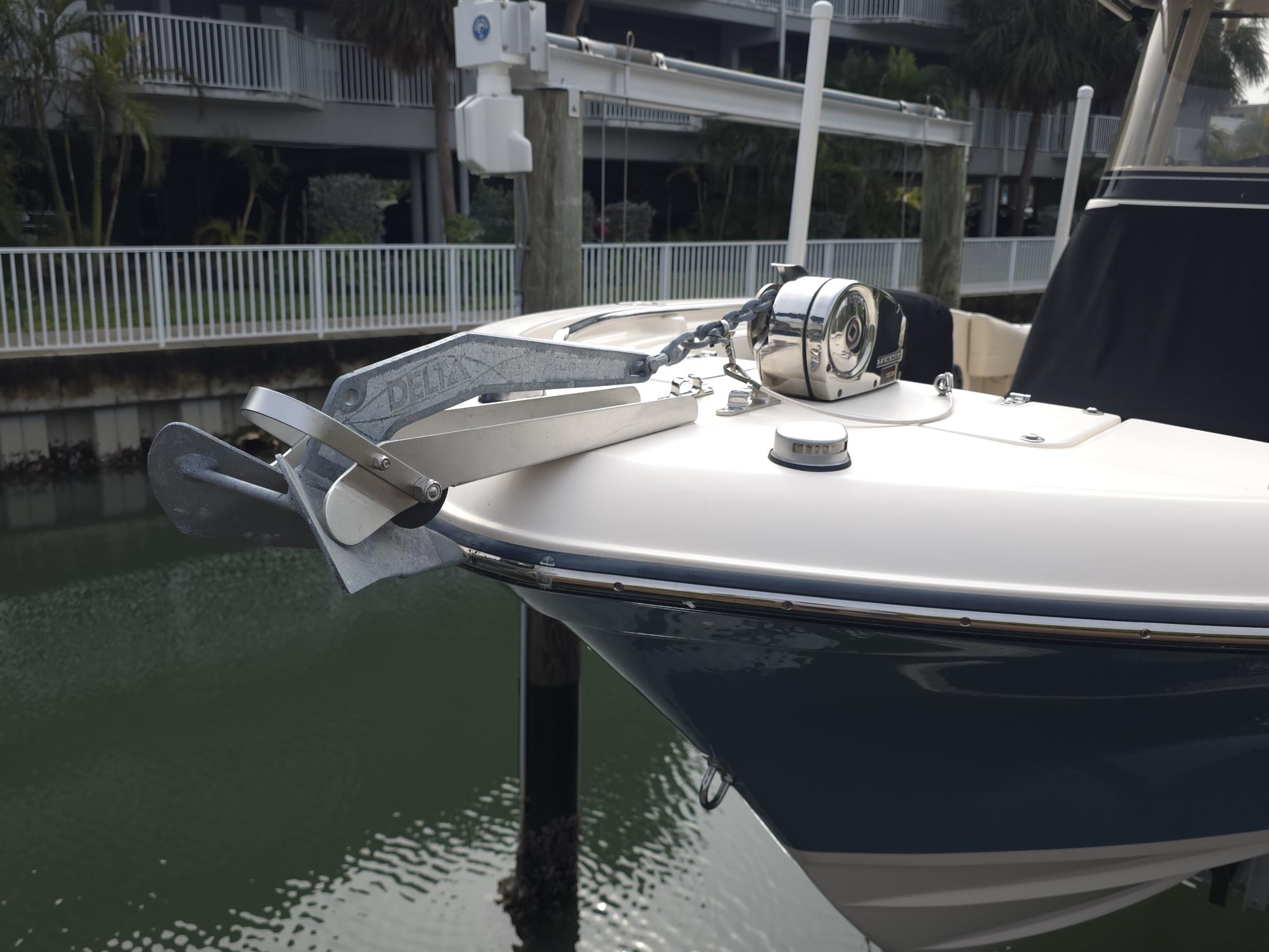Canvas covers for seat back rests and full helm cover, Porta Head plumbed in with pump out connection, Engine Flush kit, Ski Package, Added Lemar electric Windlass, stainless steel cup holders all around, Radio box in TTOP, Rocket Launchers, Swim ladder, Fusion Stereo system, Trim Tabs, LED Trim indicators, Garmin VH Radio with antenna, Garmin GPSmap xsv and Compass... NoTrailer.