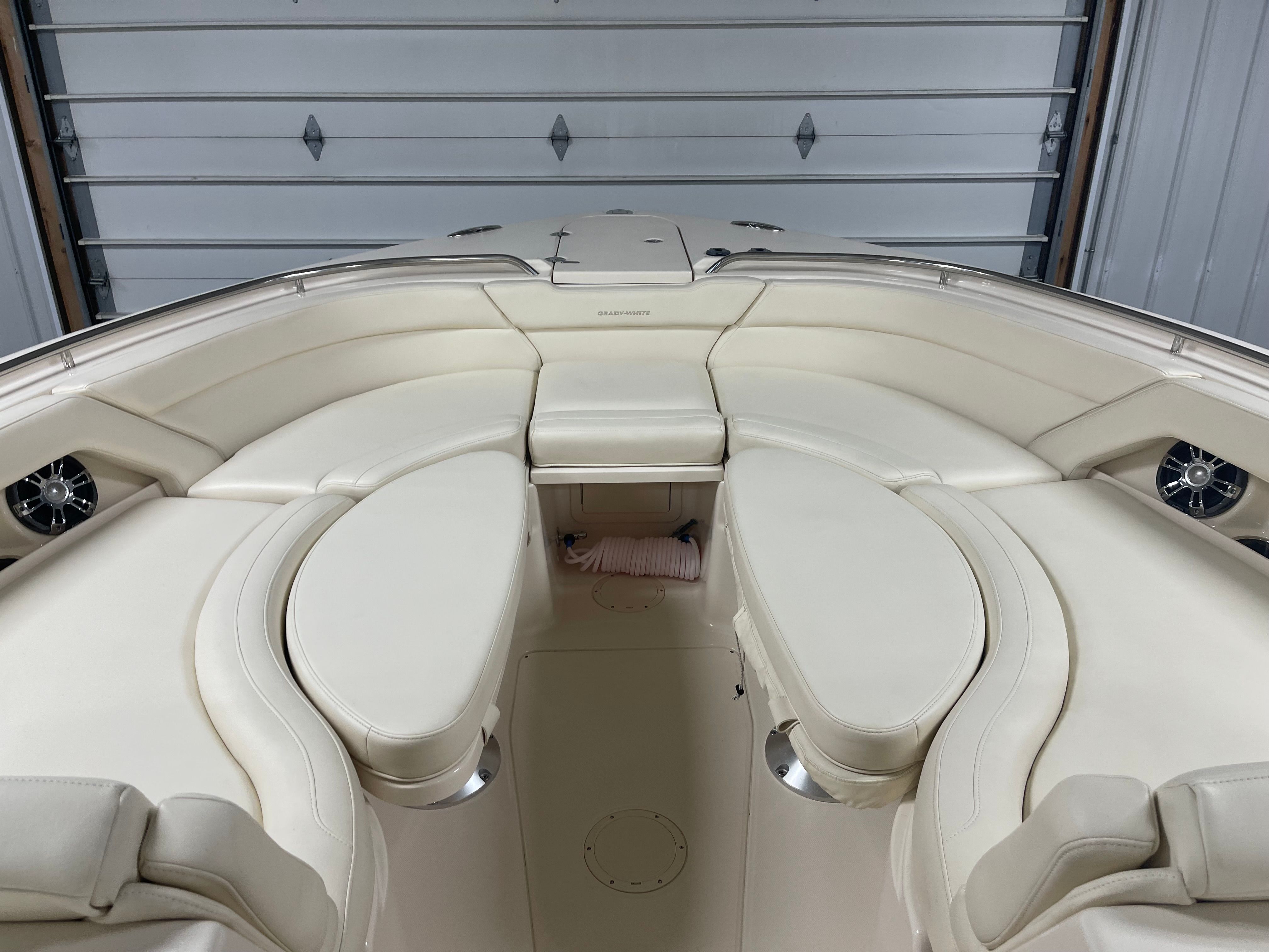 Powering the Freedom 375 are three robust engines, delivering a combined 900 horsepower. With 760 engine hours, these motors have been well utilized, showcasing their reliability and endurance. The triple-engine setup ensures impressive acceleration, smooth handling, and the ability to tackle a wide range of water conditions with confidence. Whether you’re cruising along the coastline or heading offshore for a day of fishing, the Grady-White Freedom 375 provides the power and agility you need for an exhilarating boating experience.