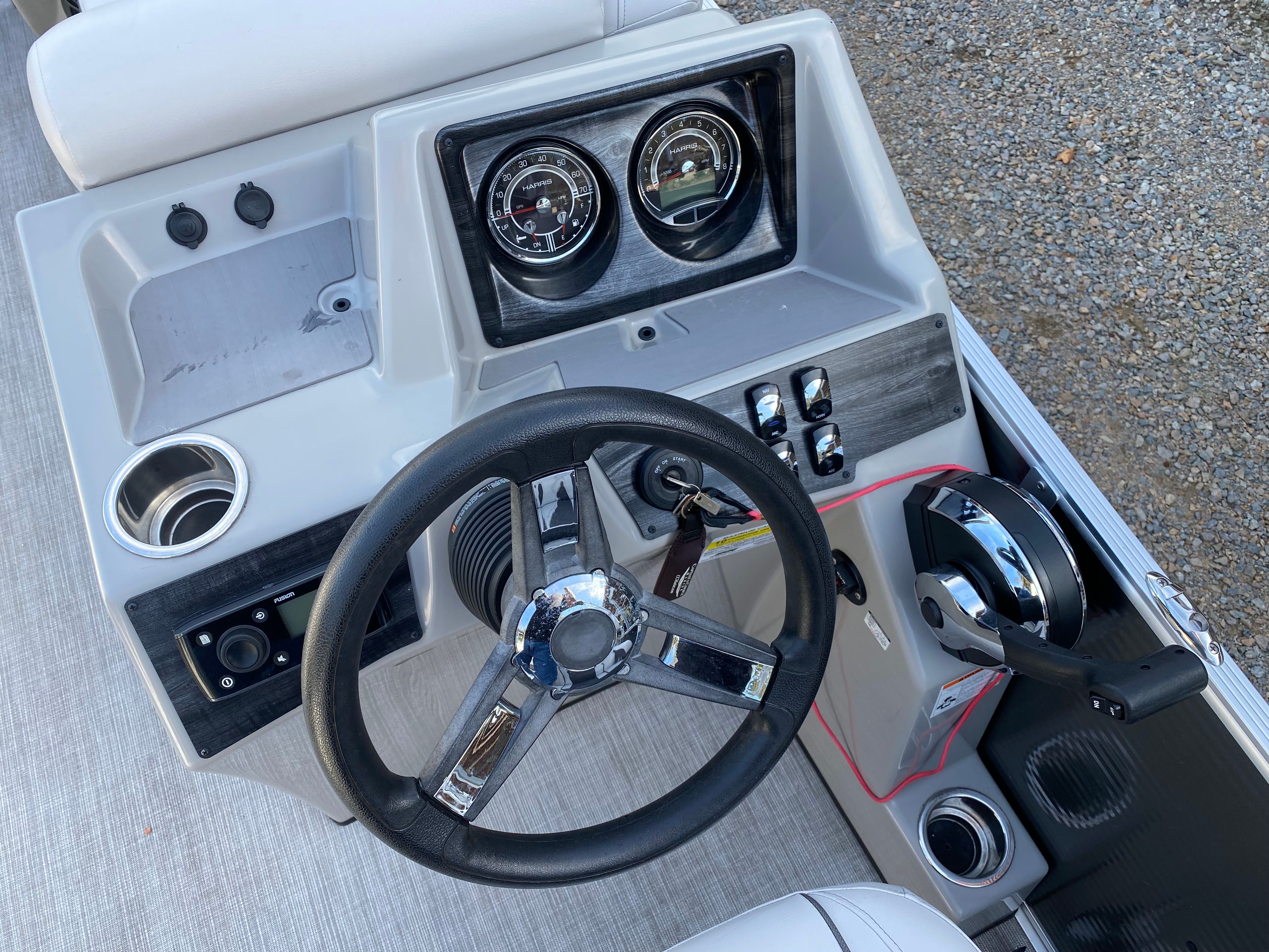 Powering the Harris Cruiser 210 is a reliable single engine with 115 horsepower and just 175 engine hours, ensuring plenty of life and performance left for your adventures. This engine provides a smooth and responsive ride, whether you are cruising leisurely along the shoreline or picking up speed for a thrilling day on the water. The 115-horsepower setup is ideal for a variety of activities, from towing inflatables to exploring new coves. With its efficient power delivery, this pontoon boat for sale offers a great blend of fuel economy and spirited performance, making every outing enjoyable and cost-effective.