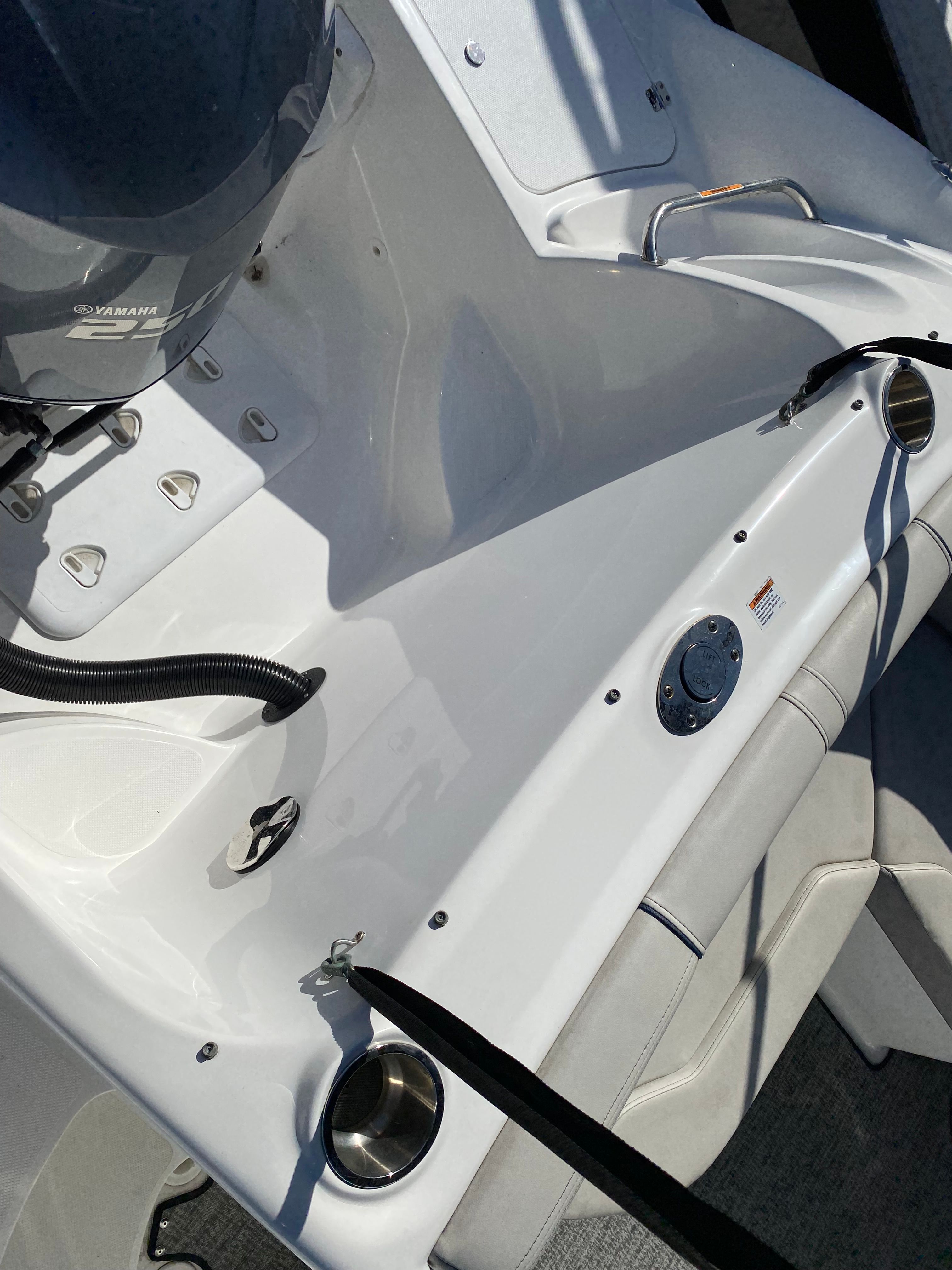 Powering the 2021 Hurricane Sundeck 2400 OB is a single outboard engine delivering an impressive 250 horsepower. This robust engine ensures that you’ll have all the power you need for exhilarating rides, quick acceleration, and reliable performance in a variety of water conditions. The 250-horsepower engine is not only responsive but also efficient, making it a great choice for those who want both excitement and practicality in their deckboat.With 171 engine hours, this used deckboat has been maintained to provide consistent and reliable performance. The outboard configuration allows for easy maintenance and efficient operation, so you can spend more time enjoying the water and less time worrying about upkeep. Whether you’re towing water toys, cruising at sunset, or heading out for a day of fishing, the Sundeck 2400 OB’s engine is up to the task.