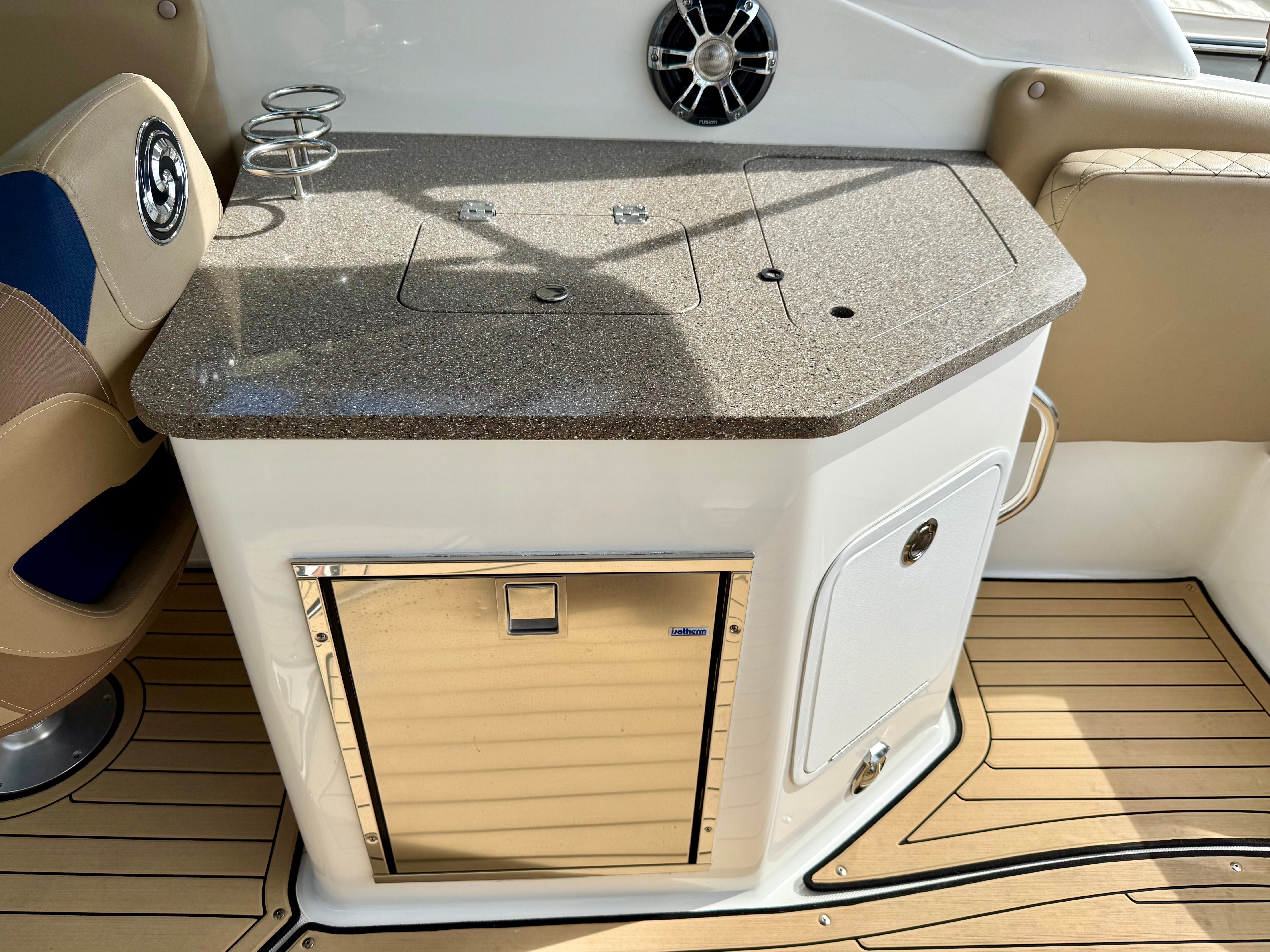 She is powered by a Yamaha 425HP outboard with approximately 250 hours, delivering strong, reliable performance whether you’re cruising the intracoastal, pulling water toys, or making a quick run to your favorite sandbar. At the helm, the boat is equipped with Yamaha CL7 digital gauges, providing clear, easy-to-read engine data and system information for confident operation.