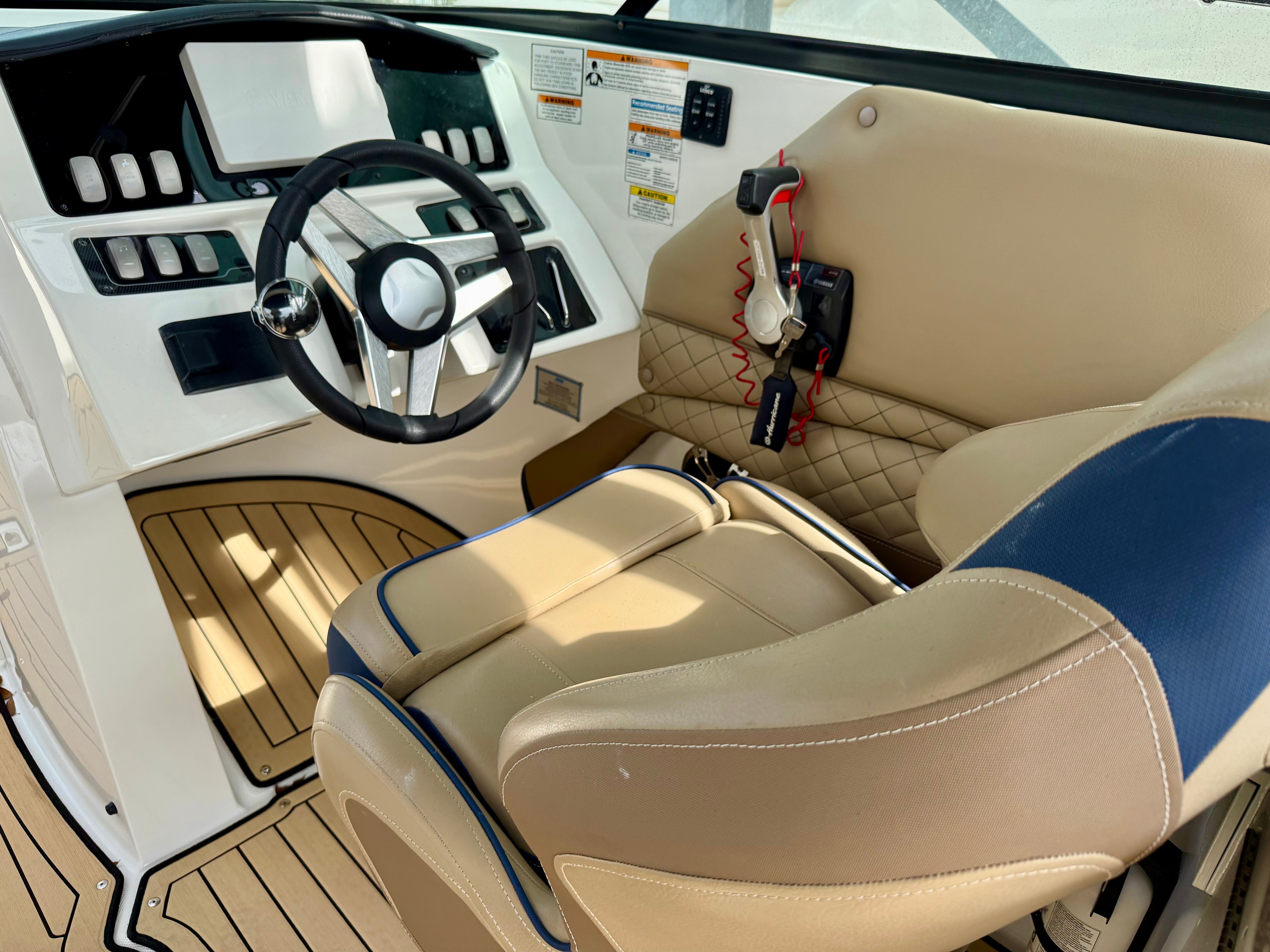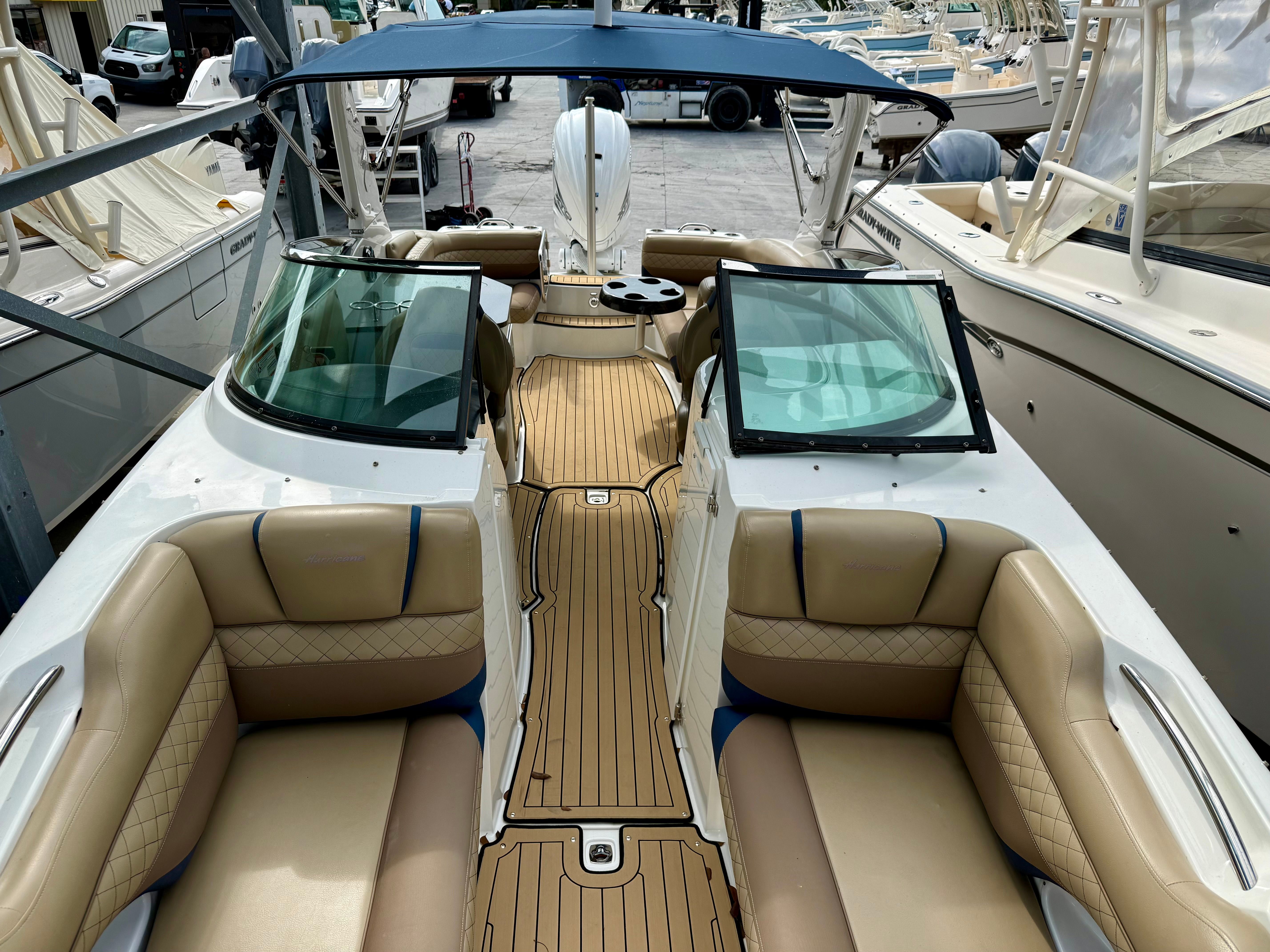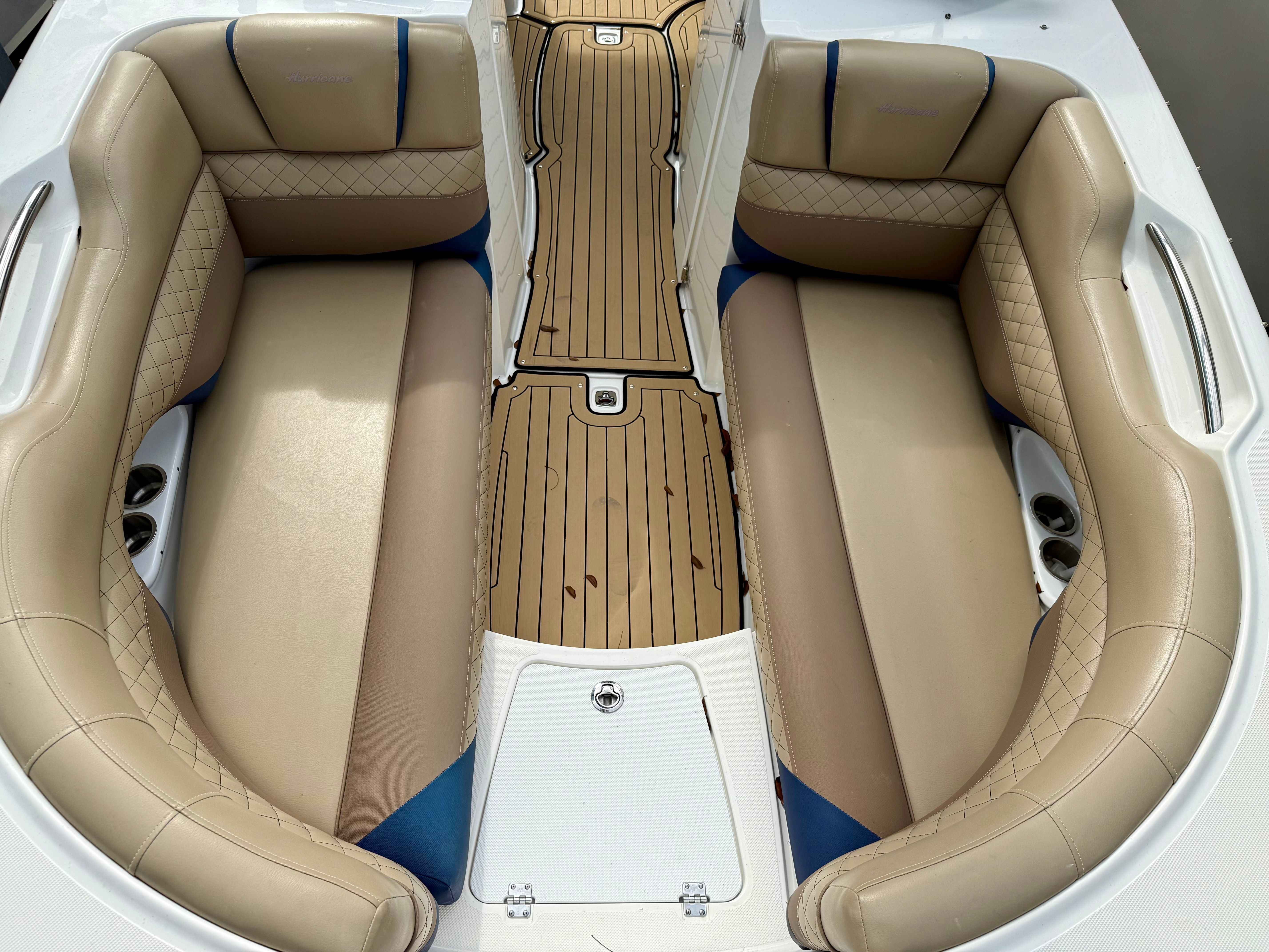 Entertainment is a strong point on this Hurricane, featuring a Fusion stereo system with speakers from bow to stern, ensuring great sound throughout the boat. The layout offers generous seating from bow to stern, with ample room for family and guests to spread out comfortably, making it ideal for relaxing cruises, sunset rides, or full-day outings. Hurricane’s smart use of space and storage allows you to bring everything you need for a day on the water without feeling cluttered.