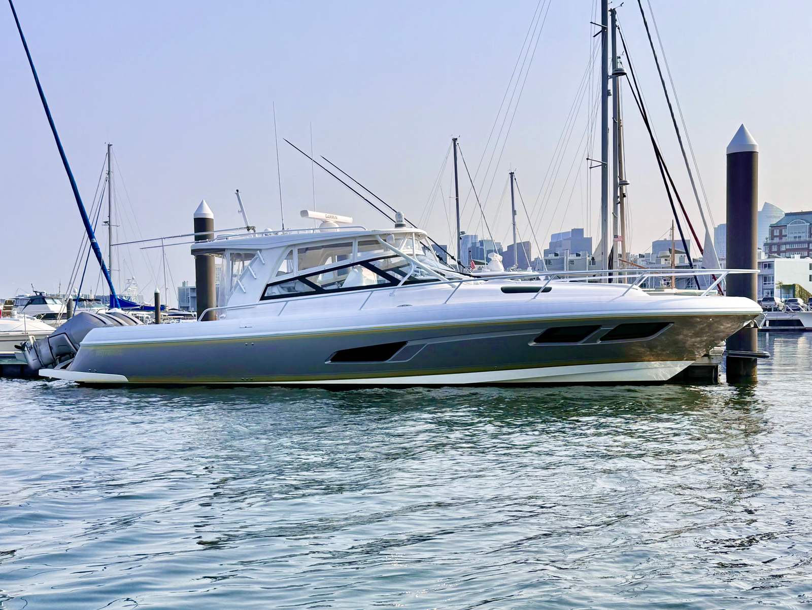 Powering the Intrepid 438 Evolution are three high-performance engines, delivering a combined 1350 horsepower. With only 492 engine hours, these motors promise plenty of life and adventure ahead. The triple engine configuration ensures impressive speed, smooth acceleration, and responsive handling, making this yacht a pleasure to captain. Whether you’re navigating open waters or maneuvering in tight marinas, the Intrepid 438 Evolution offers the kind of performance that sets it apart from other yacht boats for sale. The advanced propulsion system not only provides exhilarating speed but also enhances fuel efficiency, allowing you to enjoy longer journeys with fewer stops.