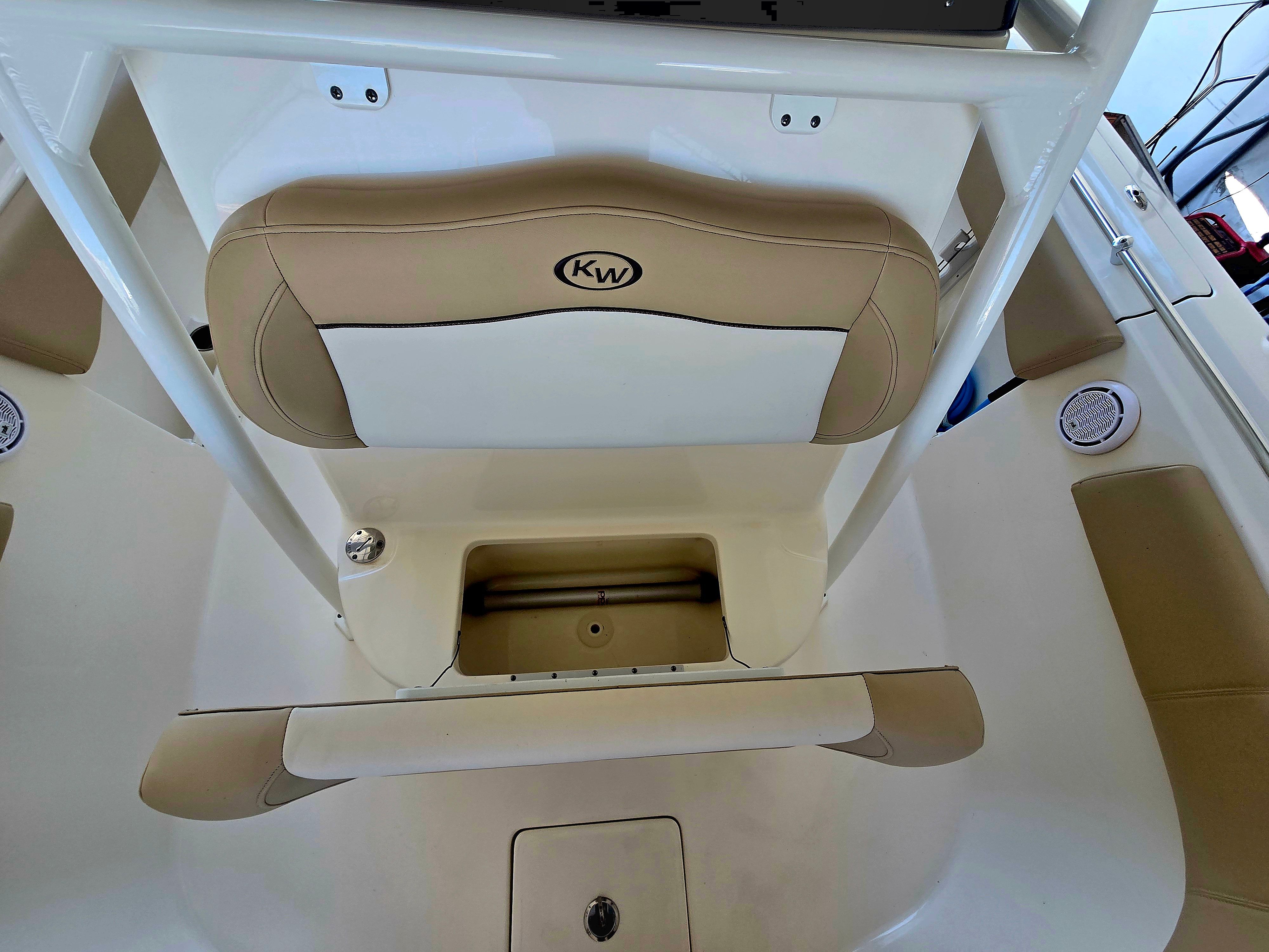 This very clean 2020 KeyWest 263 FS has many amenities such as side step dive door with an integrated ladder, forward seating with removable backrest in a full width rear bench seat, very large dual live wells located in the stern. Also has dual large in floor fish boxes. This is powered by twin Yamaha 200s with about 110 hours.
