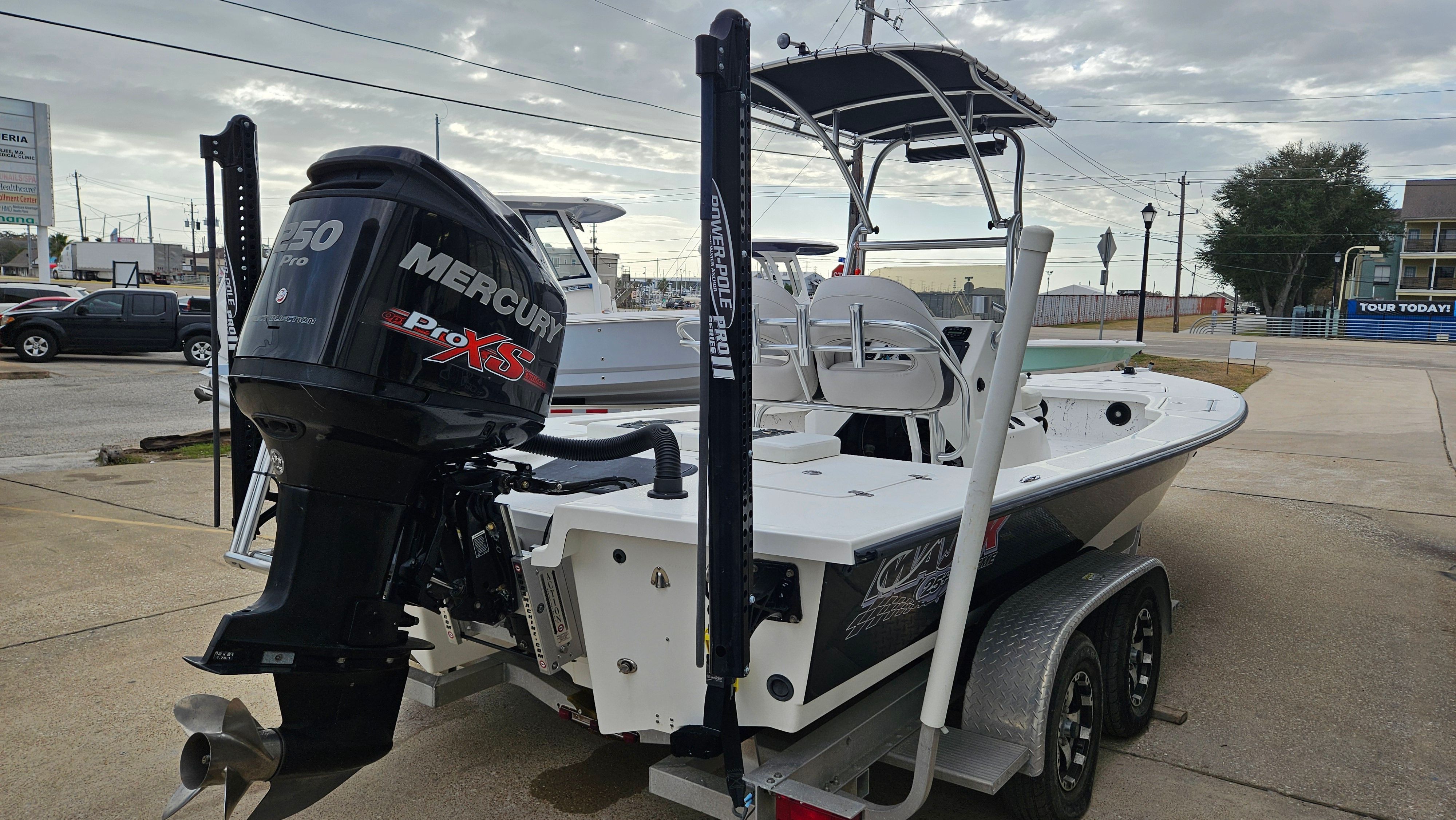 The Majek 25 Xtreme is as practical as it is fun. The tandem axle trailer simplifies storage and transport, making it easy to take your boat wherever adventure calls. Docking is a breeze thanks to the twin Power Poles, which provide reliable anchoring in a variety of conditions. The jackplate allows for precise engine adjustments, helping you navigate shallow flats or deeper channels with ease. Fuel efficiency is enhanced by the Mercury Optimax engine, so you can spend more time enjoying the water and less time worrying about refueling. Whether you’re storing gear for a day of fishing or prepping for a family outing, the spacious design and thoughtful features make ownership both convenient and enjoyable.