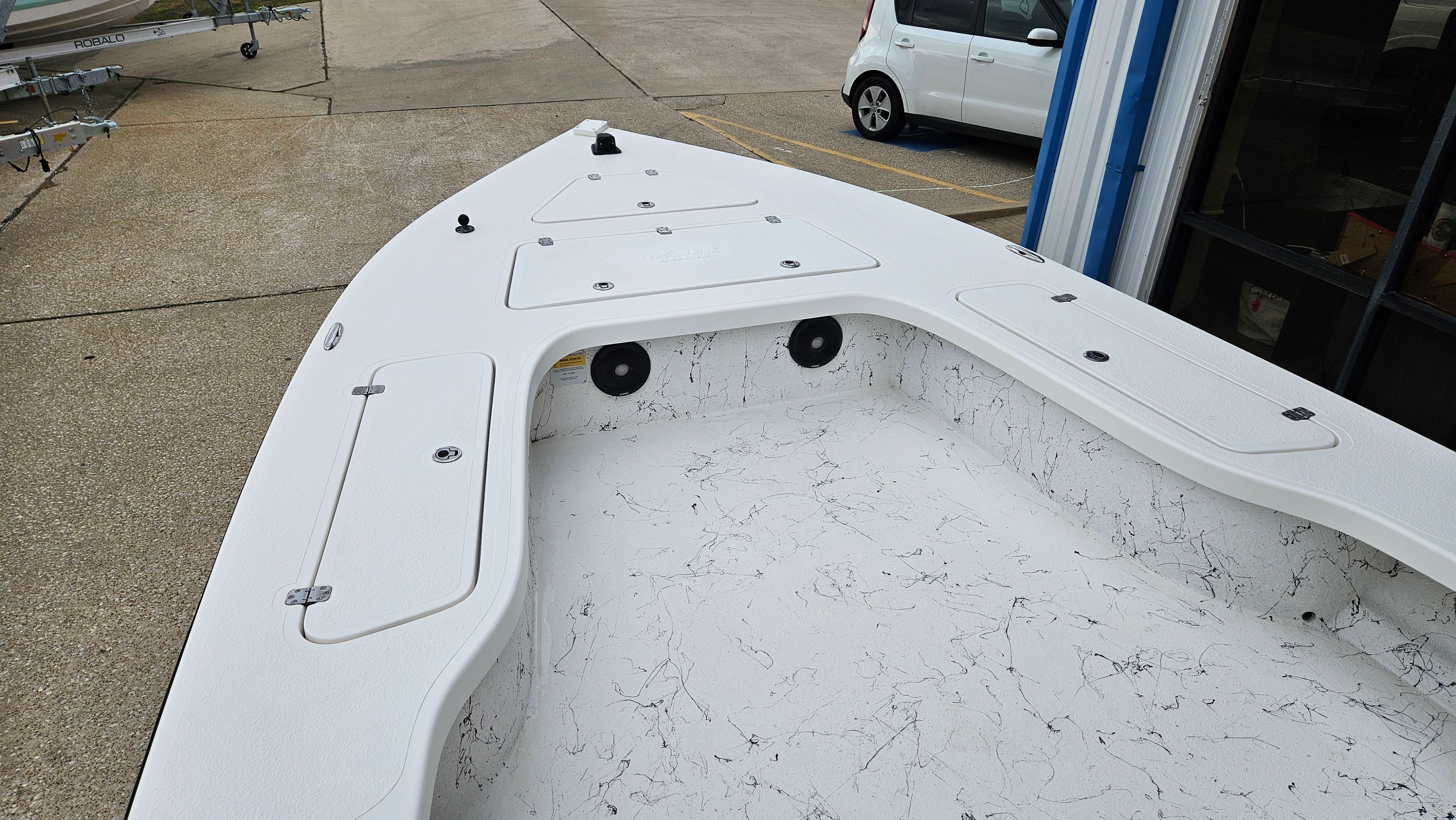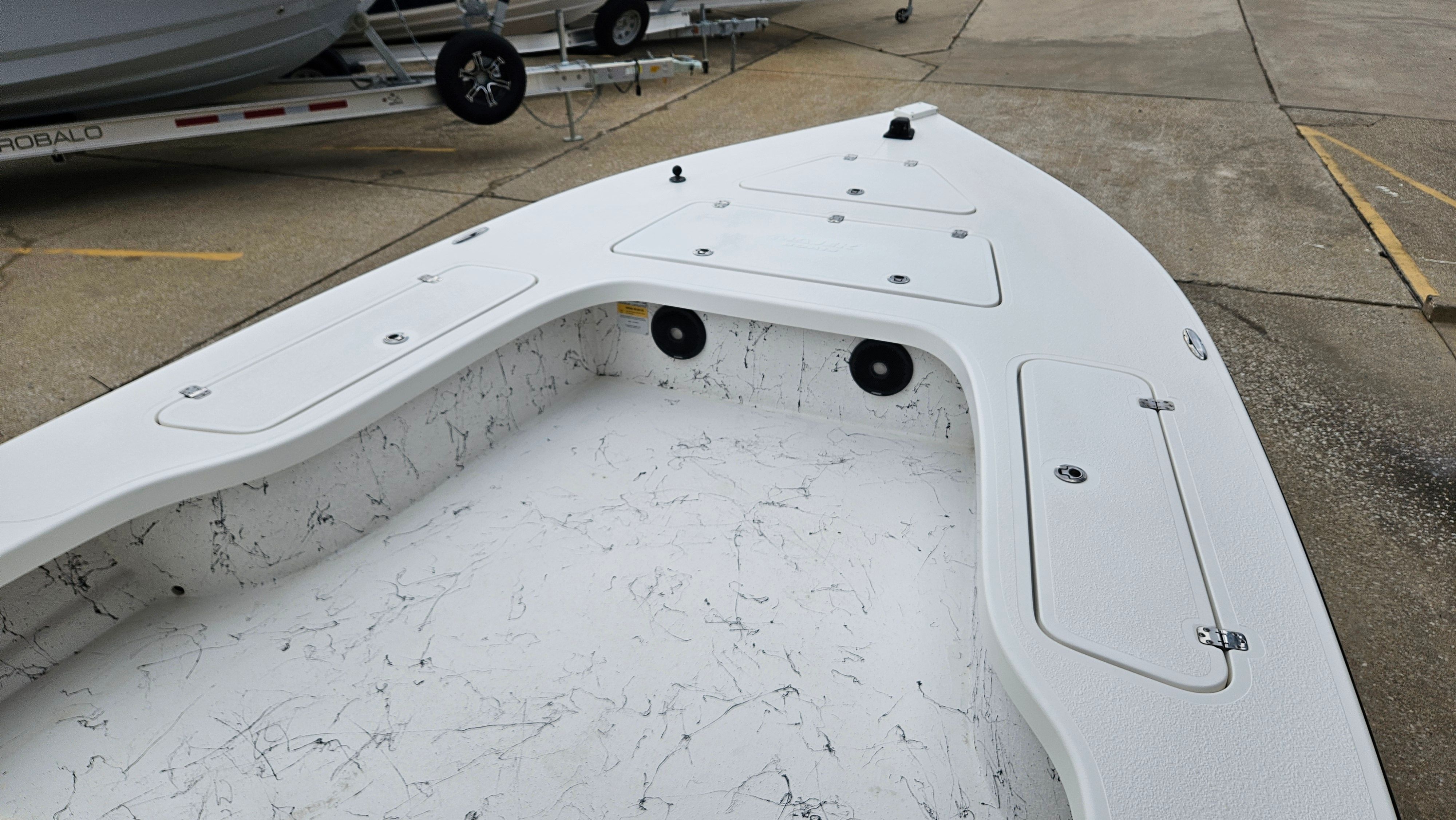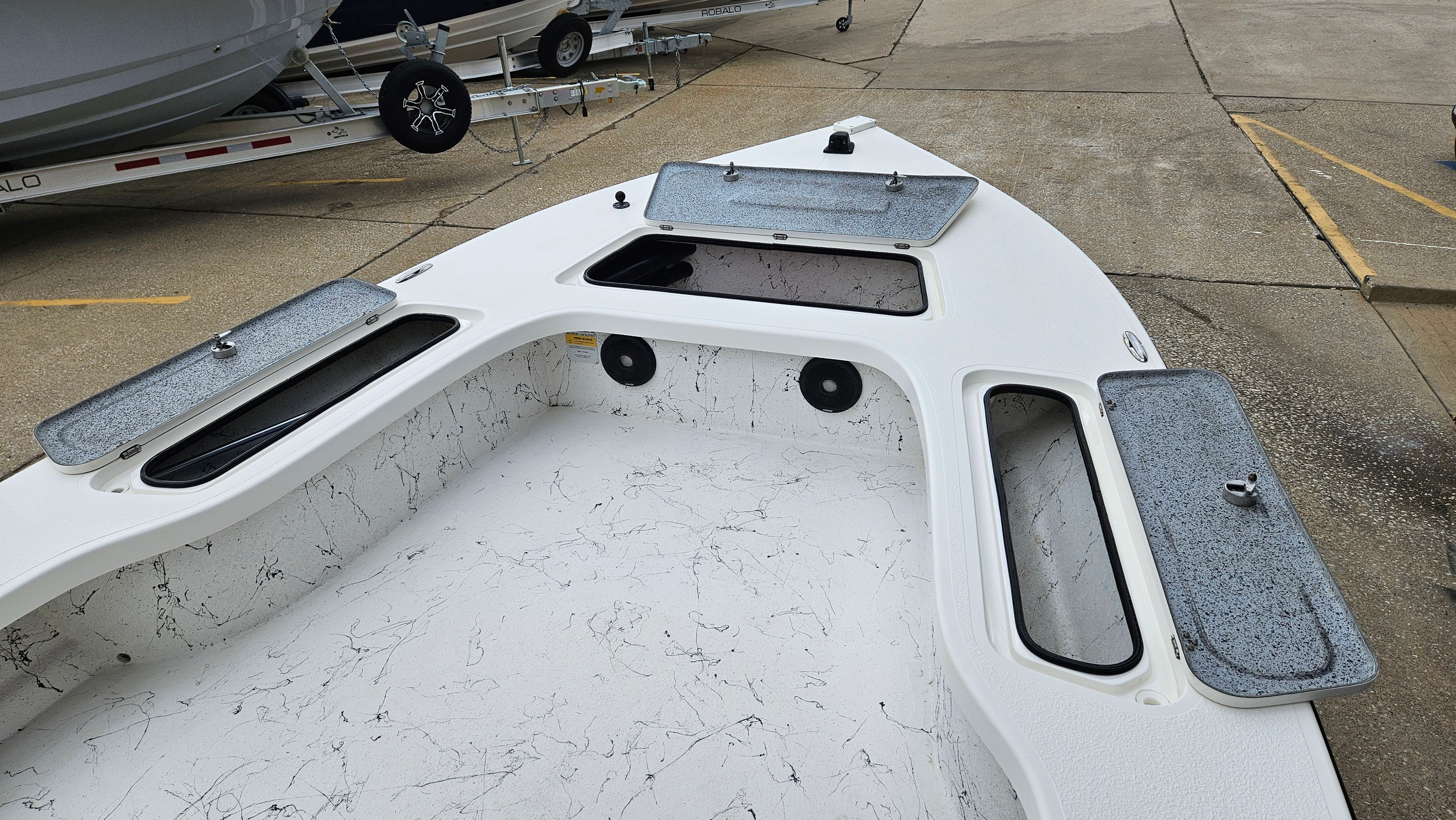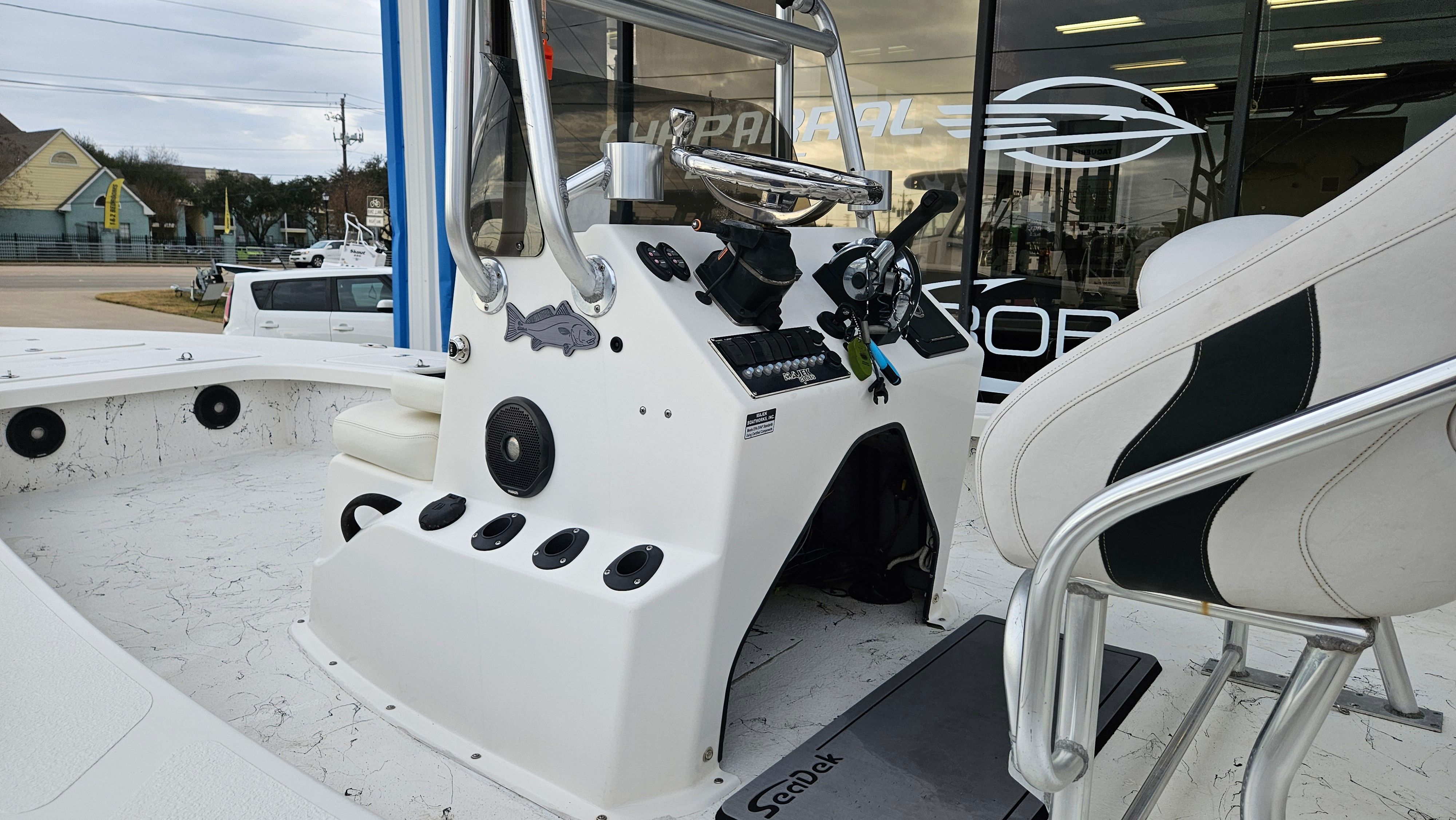 This Majek boat for sale comes loaded with special features that enhance both functionality and enjoyment. The included tandem axle trailer makes transporting your Bay Boat simple and secure, whether you’re heading to your favorite fishing spot or exploring new waterways. The sturdy T-Top offers shade and protection from the elements, allowing you to stay comfortable during long days on the water. Twin Power Pole anchors provide superior stability when you’re fishing or relaxing, letting you hold your position with ease. The integrated stereo system sets the mood for fun and relaxation, while the jackplate adds versatility for navigating shallow or deep waters. Every feature is thoughtfully designed to maximize your boating experience, ensuring you have everything you need for adventure and leisure.