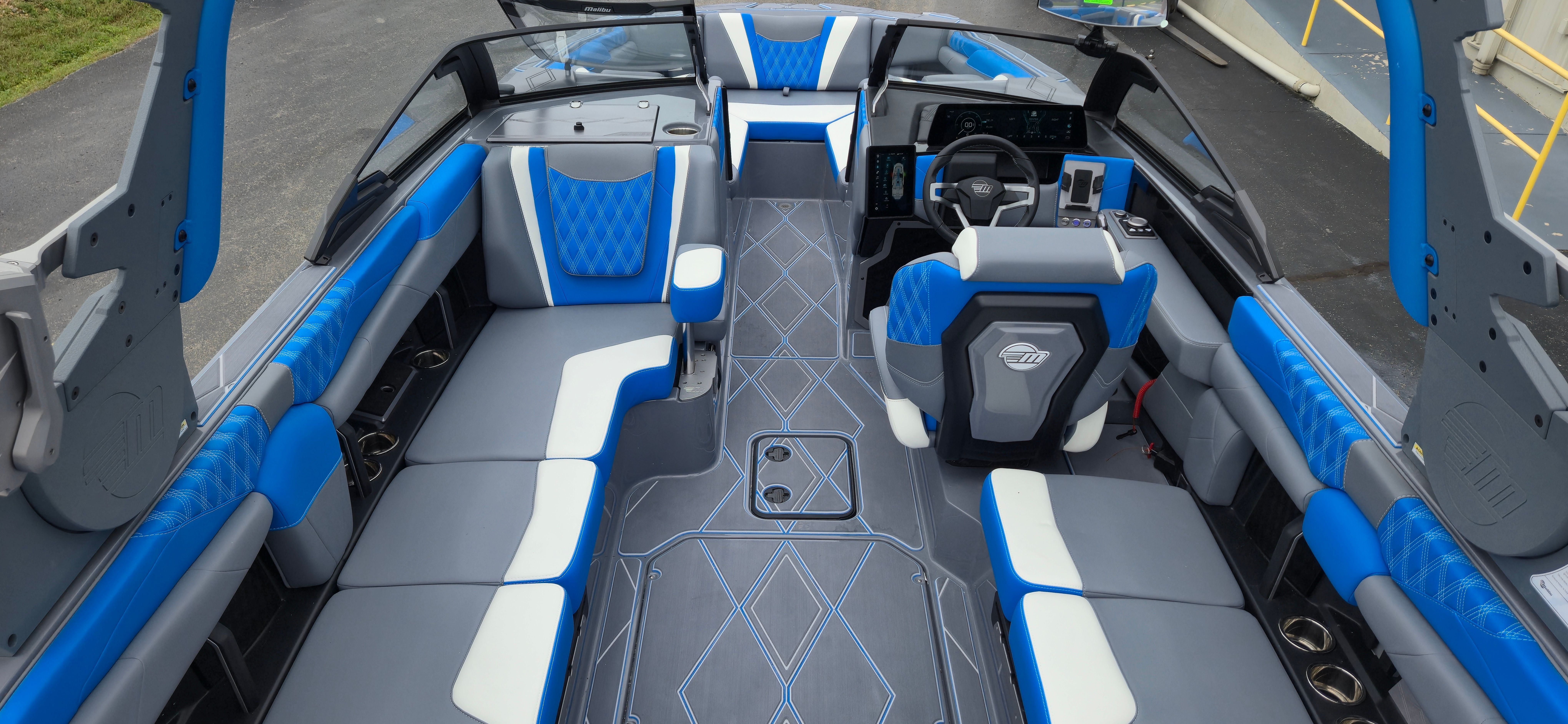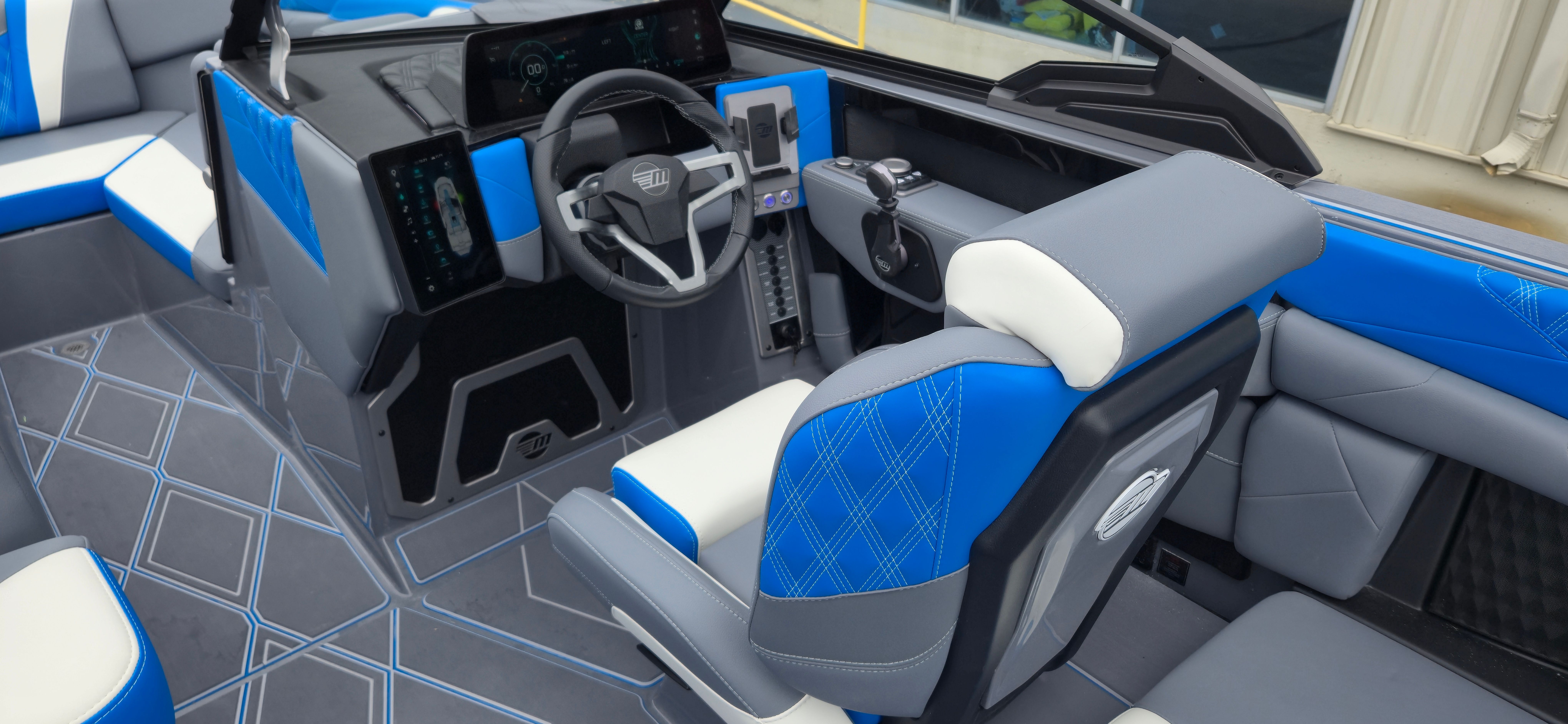The Malibu M-Series M230 is as practical as it is fun. Its 23-foot length strikes the perfect balance between maneuverability and capacity, making it easy to dock, trailer, and store. The integrated cell phone holders keep your devices safe and accessible, while the 360 Camera simplifies navigation in tight spaces. The PTMClampforce rack and other storage solutions help you keep your equipment organized, so you can spend more time enjoying the water and less time searching for gear. The efficient engine and advanced ballast plumbing system contribute to smooth operation and easy maintenance, ensuring your investment remains hassle-free for years to come.