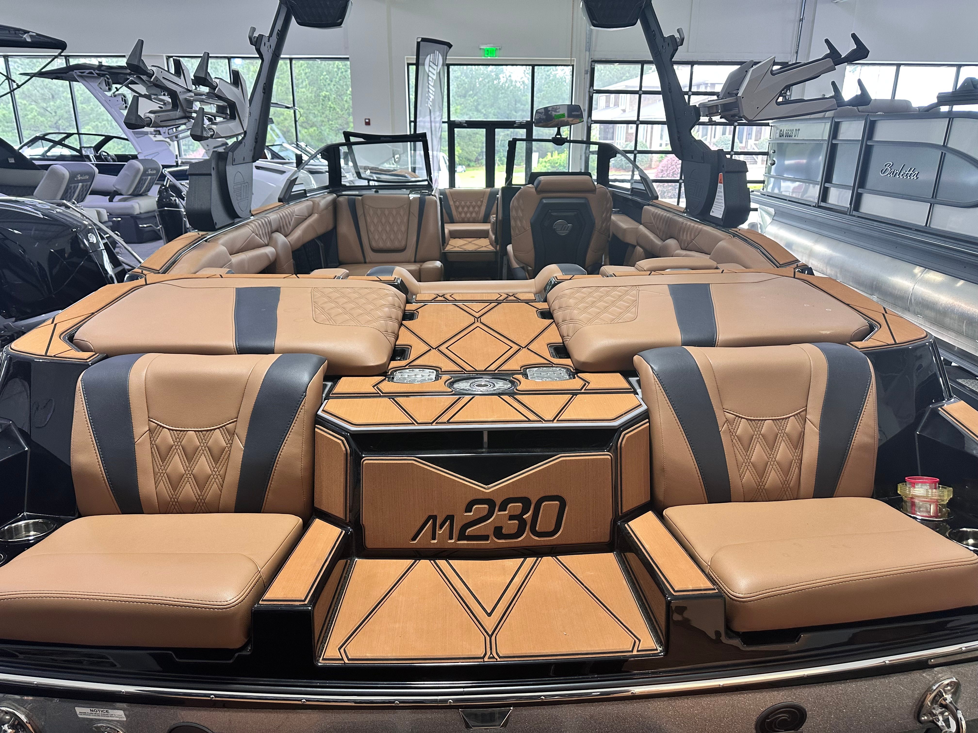 At the heart of the M230 is a powerful single engine boasting an incredible 606 horsepower. This robust engine delivers exhilarating acceleration and smooth handling, allowing you to carve through the water with precision and confidence. Whether you’re pulling wakeboarders, skiers, or tubers, the M230’s performance capabilities ensure you have all the power you need for high-energy water sports. The advanced engineering behind this Ski & Wakeboard boat for sale guarantees reliability and efficiency, so you can focus on enjoying every moment on the water.
