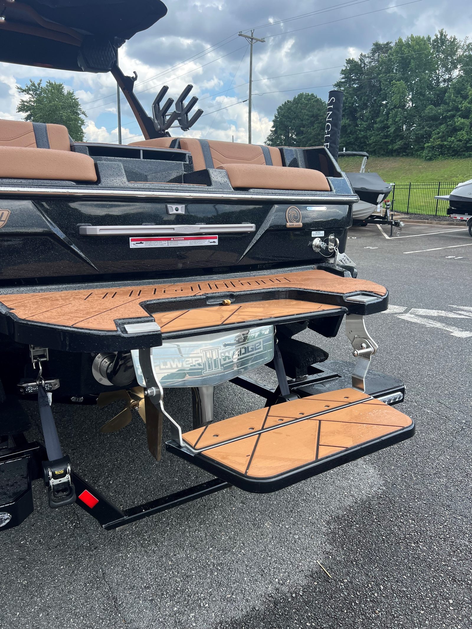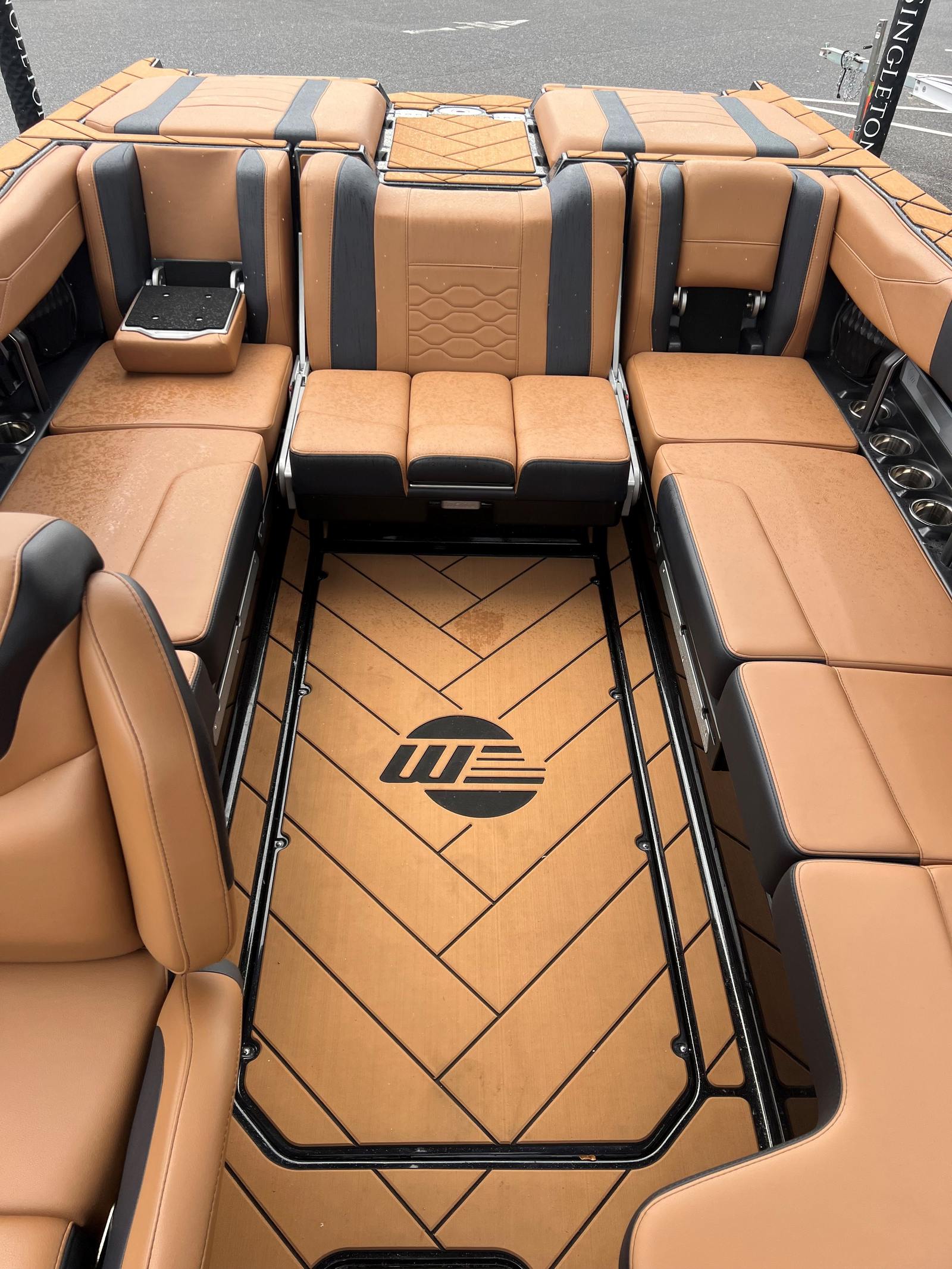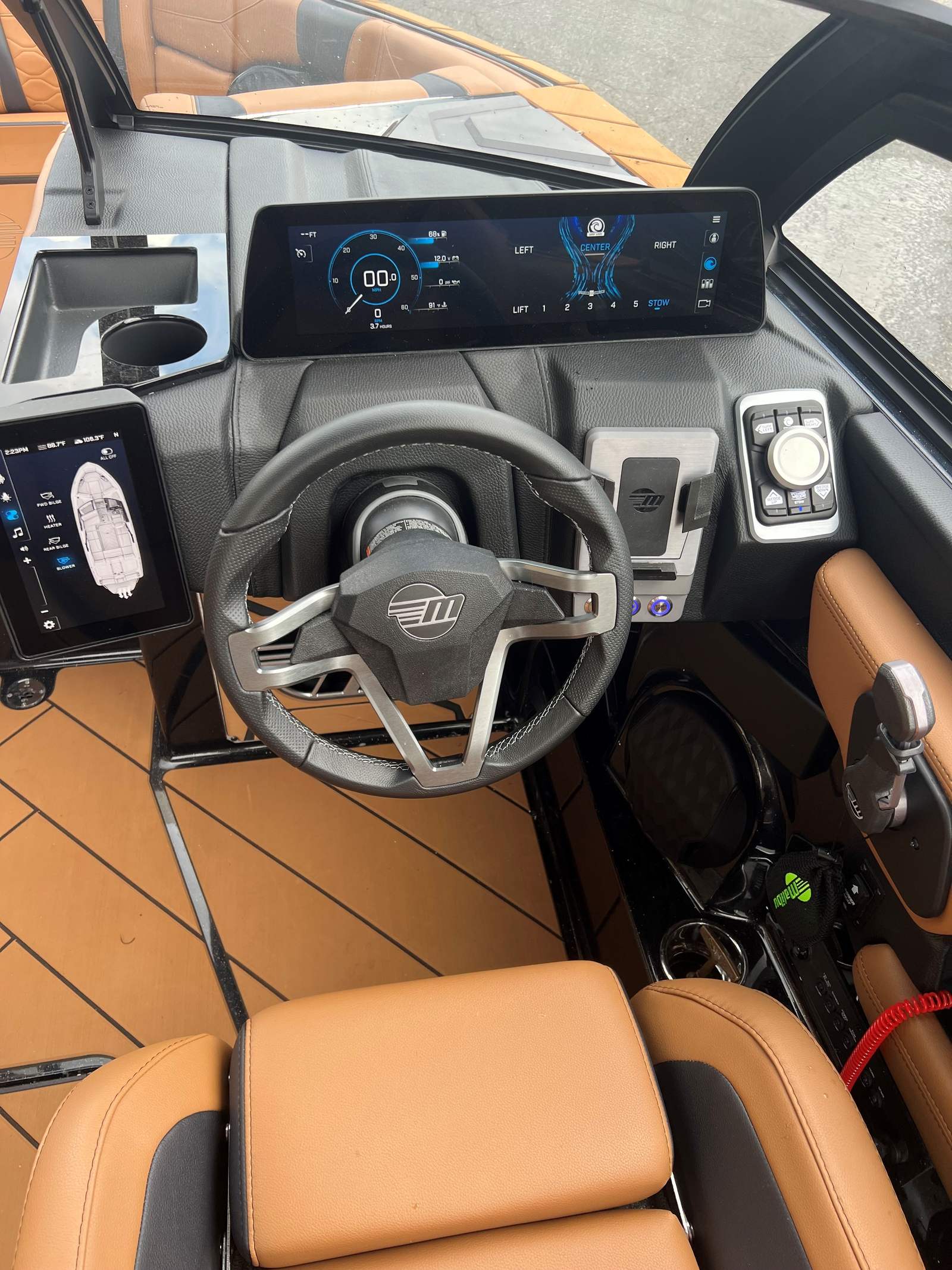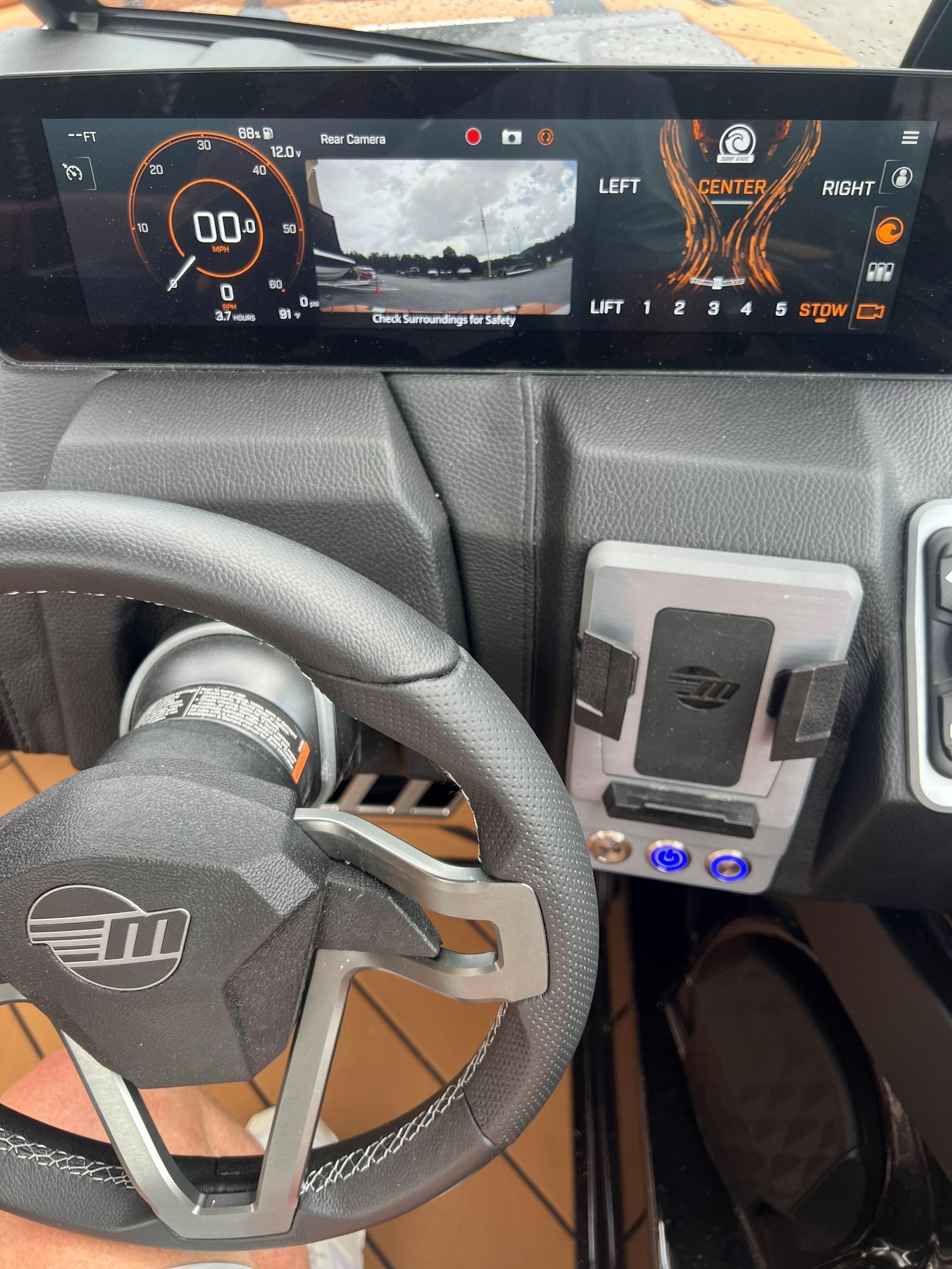 The Malibu Wakesetter 23 LSV is as practical as it is exhilarating. The Port Lower Rack - PTM Clampforce 30 keeps your boards secure and organized, reducing clutter and maximizing deck space. The advanced ballast systems make it easy to adjust your wake for different activities, ensuring every outing is tailored to your preferences. Docking is a breeze with LED docking lights, providing clear visibility in low-light conditions and enhancing safety.The flip-down entry/exit steps offer convenient access for all passengers, making boarding and disembarking simple and safe. Wireless charging stations keep your devices powered, so you can capture every moment and stay connected throughout your adventure. The Ebony-Malibu G5 Tower provides additional storage and mounting options, further enhancing the boat’s versatility and functionality.