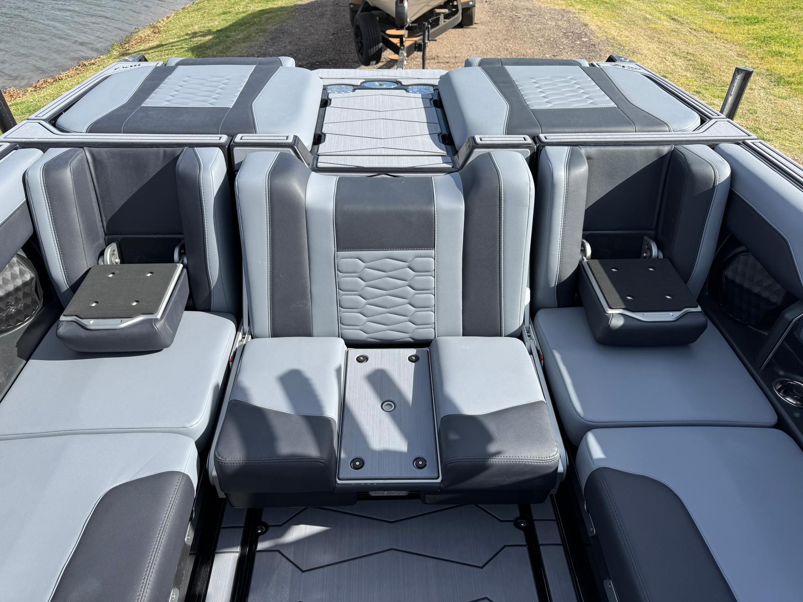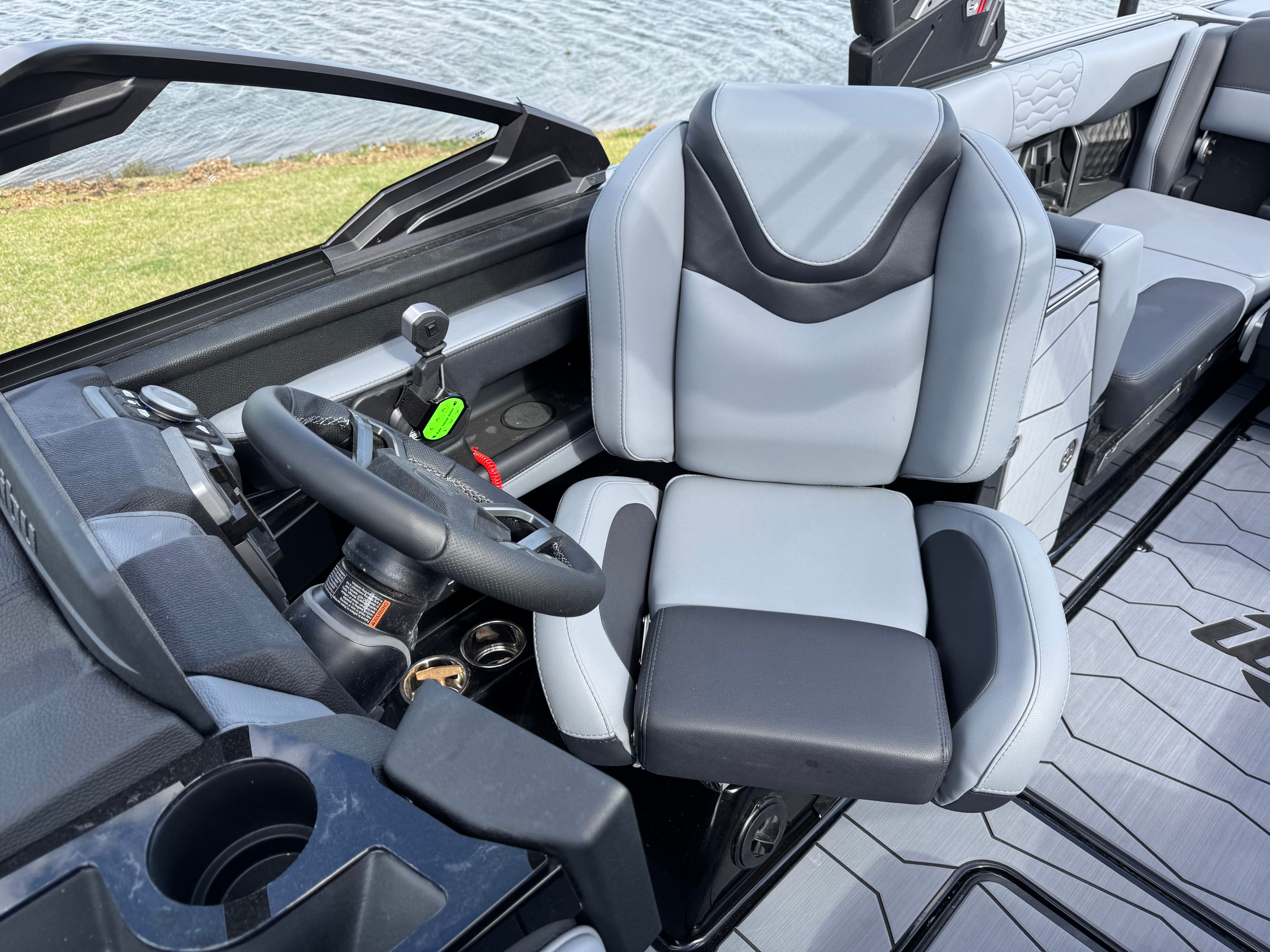 At the heart of the Wakesetter 24 MXZ is the powerful Malibu Monsoon M6Di engine, boasting an impressive 460 horsepower. This single-engine setup is engineered for optimal performance, delivering smooth acceleration, responsive handling, and the muscle needed to create massive wakes and surf waves. The 250a alternator ensures reliable power for all onboard systems, while the Exhaust - Surf Pipe enhances the boat’s surf capabilities, providing a quieter and cleaner ride. Whether you’re carving through glassy water or pulling multiple riders, this Ski & Wakeboard boat for sale is built to perform at the highest level.