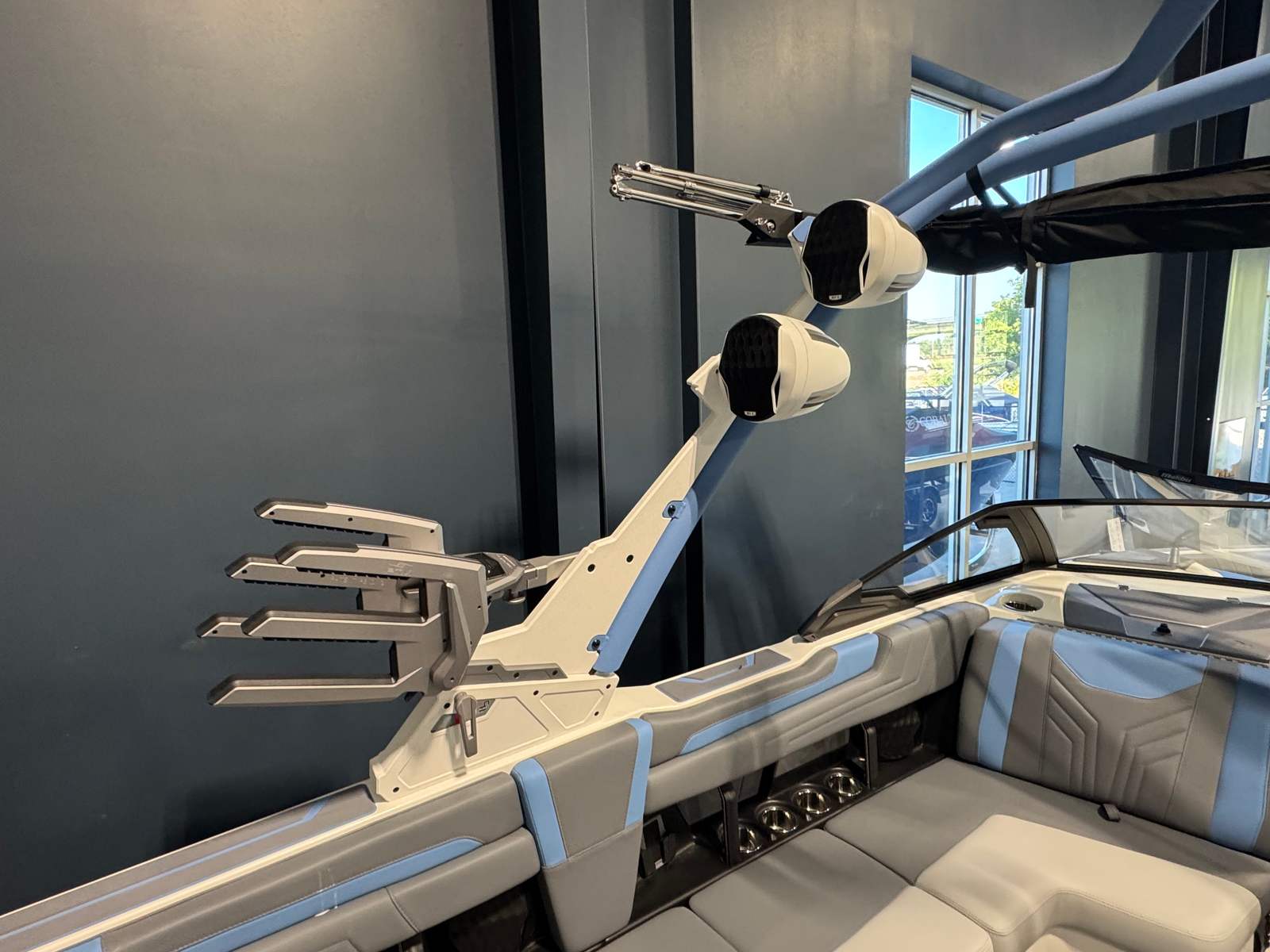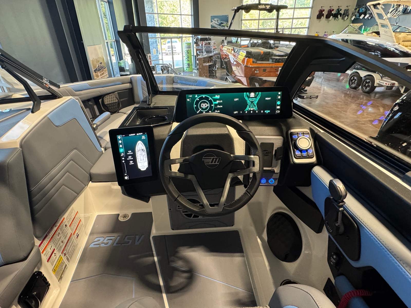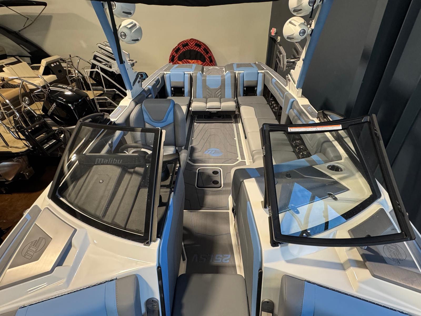 The 2025 Malibu Wakesetter 25 LSV is loaded with features designed to elevate your boating experience. The extended Gen II Surf CS Bimini Top provides ample shade and protection from the sun, ensuring comfort during long days on the water. The CS Boat Cover with APS 3 and Swimboard Cover keeps your investment protected when not in use, preserving its stunning appearance and value. Distinctive Arctic White-Wakesetter hull rear and side graphics add a touch of flair, making this boat a true head-turner wherever you go. The interior’s luxurious color scheme not only looks fantastic but also offers a welcoming and comfortable environment for passengers.