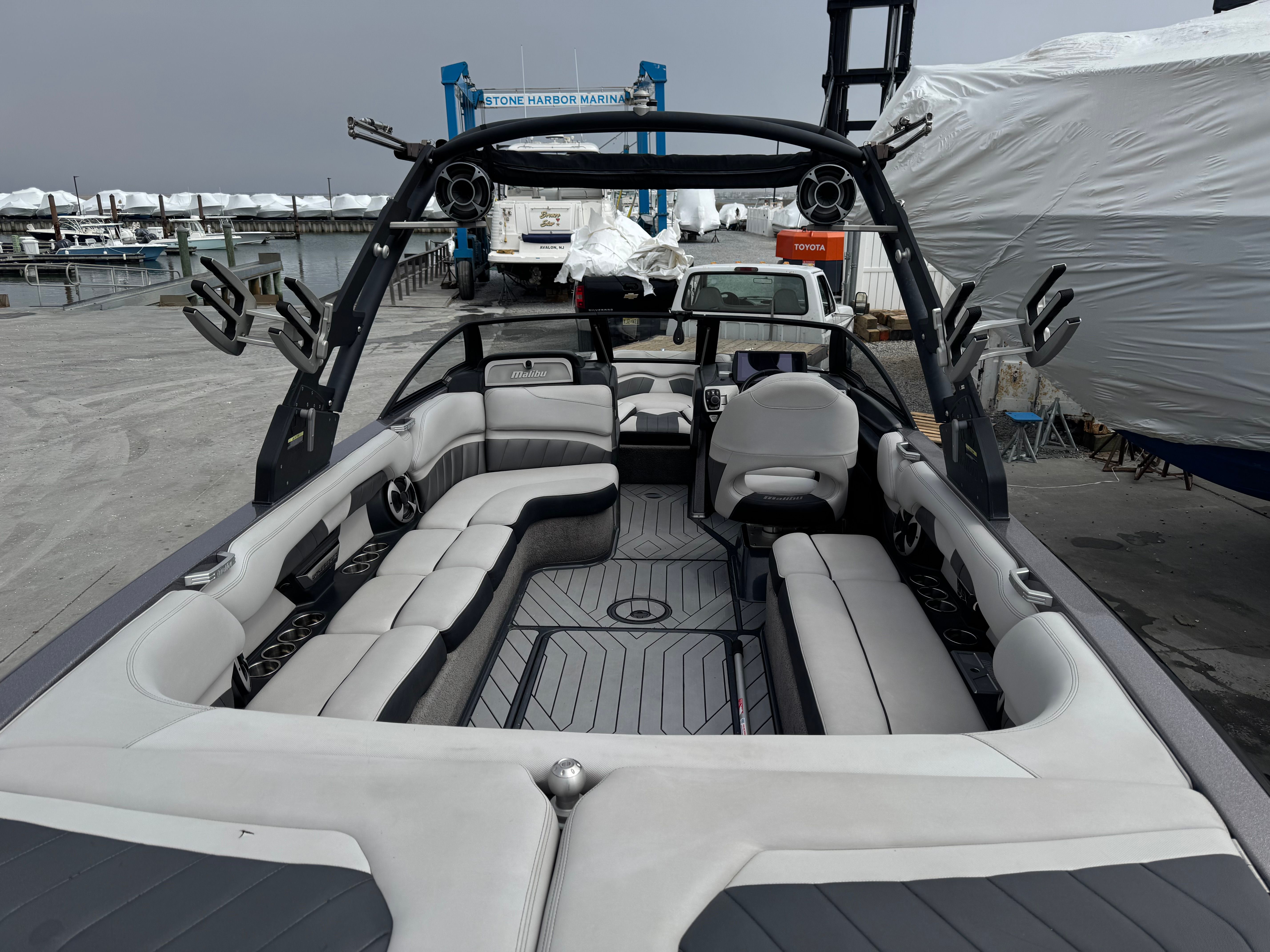 At the heart of the Wakesetter 25 LSV is a powerful single engine delivering an impressive 450 horsepower. This robust engine ensures exhilarating acceleration, smooth cruising, and the ability to create massive, customizable wakes for wakeboarding and surfing. The advanced hull design enhances stability and maneuverability, allowing you to carve through the water with precision and confidence. Whether you are towing skiers, wakeboarders, or simply enjoying a high-speed cruise, this Malibu boat for sale offers the performance you need to make every outing memorable.