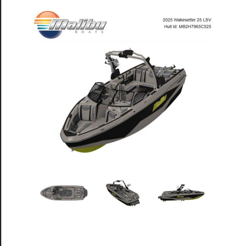 The 2025 Malibu Wakesetter 25 LSV is a standout Ski & Wakeboard boat for sale, offering unmatched performance, innovative features, and luxurious comfort. With its powerful 460-horsepower engine, advanced wake-shaping technologies, and a host of premium amenities—including the PTM Panoramic mirror, Surf Gate with Malibu Surfband, Ballast HI FLO system, Malibu Stern Turn, Max-Relax Sundeck Loungers, AVC Platinum Plus Package, and stylish interior upgrades—this Malibu boat for sale is ready to elevate your time on the water.If you’re looking for a new Ski & Wakeboard boat that combines thrilling performance with practical benefits and a vibrant social atmosphere, the Malibu Wakesetter 25 LSV is the perfect choice. Contact your local dealer today to learn more about this exceptional boat and start planning your next adventure on the water!
