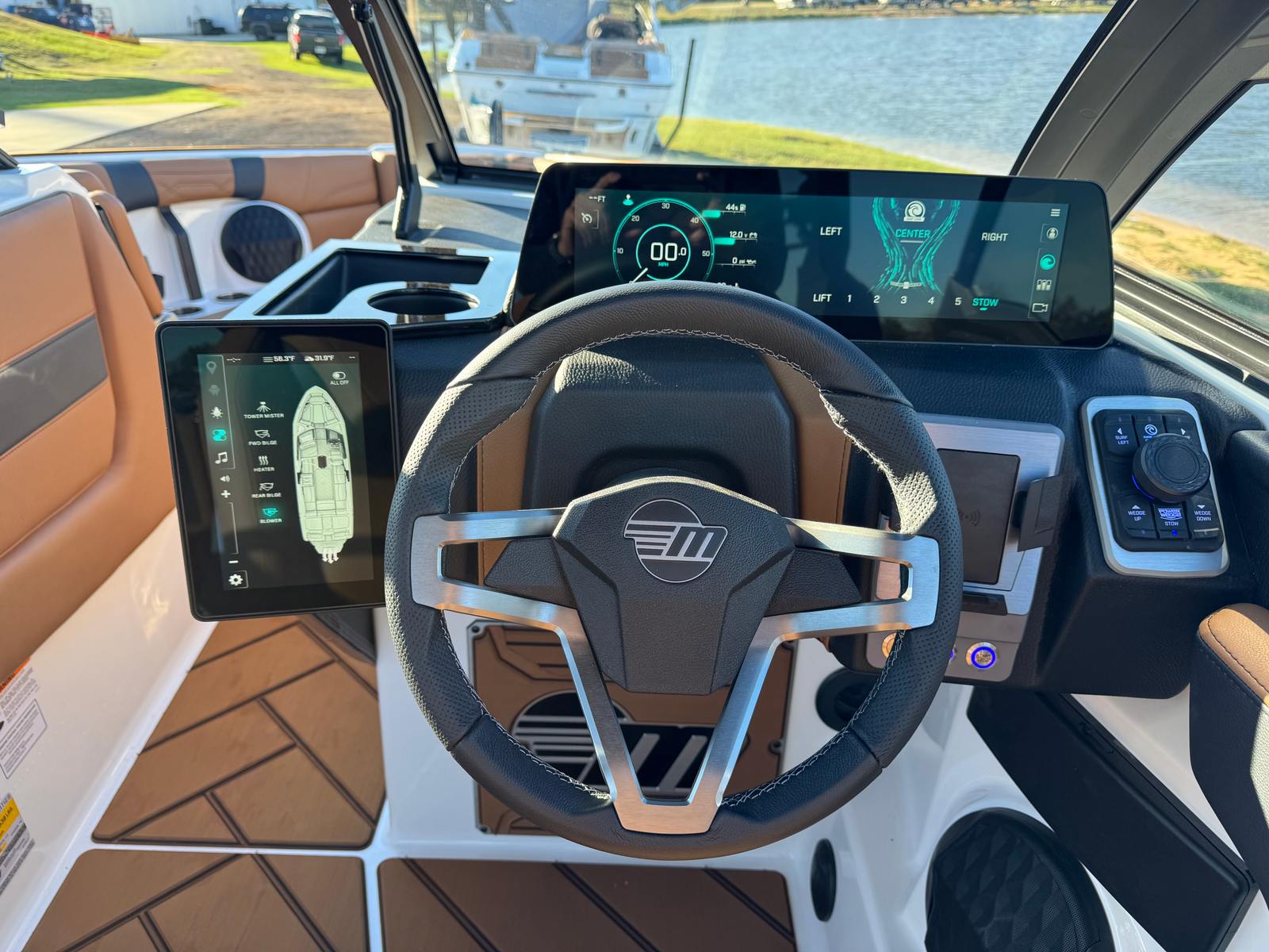 Step aboard and discover a world of premium features designed to elevate your boating experience. The interior color upgrade creates a vibrant and inviting atmosphere, ensuring every moment spent onboard is comfortable and stylish. The CS Boat Cover with APS 3 and Swimboard Cove offers superior protection for your investment, keeping your Malibu boat for sale in pristine condition when not in use. The PTM Dual Coverage Bimini, complete with rope and surf board storage, provides ample shade and convenient storage solutions for all your gear.Enjoy the luxury of a heater with five outlets, perfect for extending your boating season into cooler months. The hot water shower adds a touch of comfort, allowing you to rinse off after a swim or a long day of water sports. The Ebony-Wakesetter hull rear and side graphics not only enhance the boat’s visual appeal but also showcase its premium craftsmanship and attention to detail.