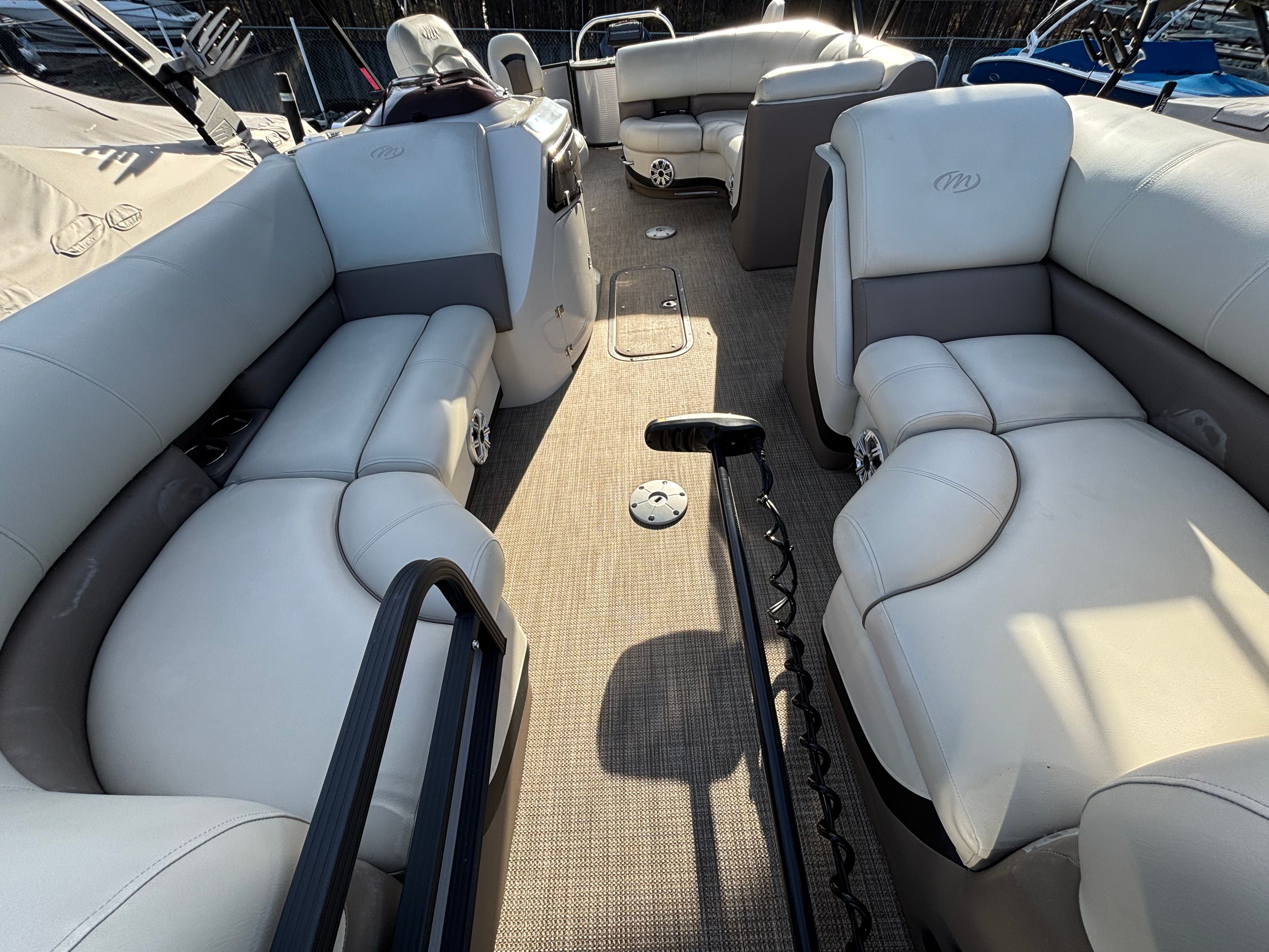 Owning the Manitou Oasis Angler 220 SHP means embracing a lifestyle of fun, relaxation, and adventure. This pontoon boat for sale is designed to bring people together, offering plenty of room for group outings, family gatherings, or quiet escapes on the water. The comfortable seating and spacious deck make it easy to entertain guests, while the angler-friendly features cater to fishing enthusiasts of all skill levels.The powerful 250-horsepower engine provides the speed and agility needed for water sports, tubing, or simply exploring new waterways. With only 95 engine hours, you can trust that this used Manitou boat for sale has plenty of life left for years of enjoyment.