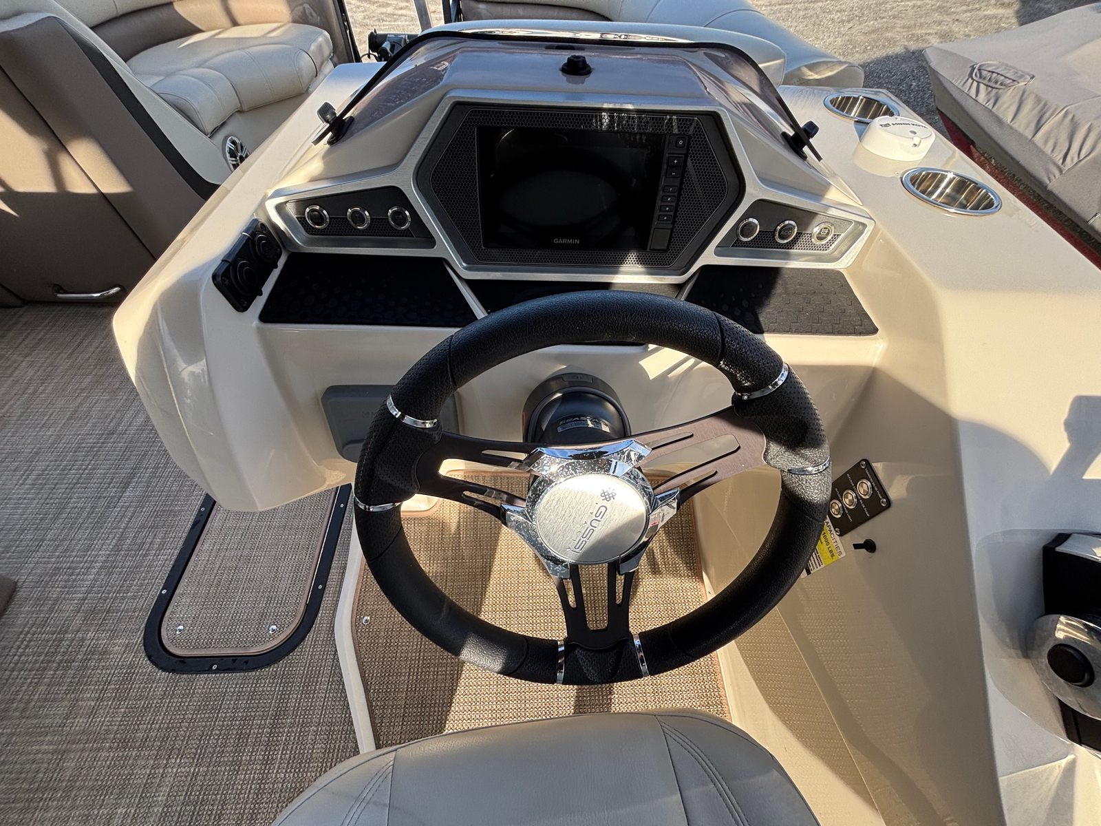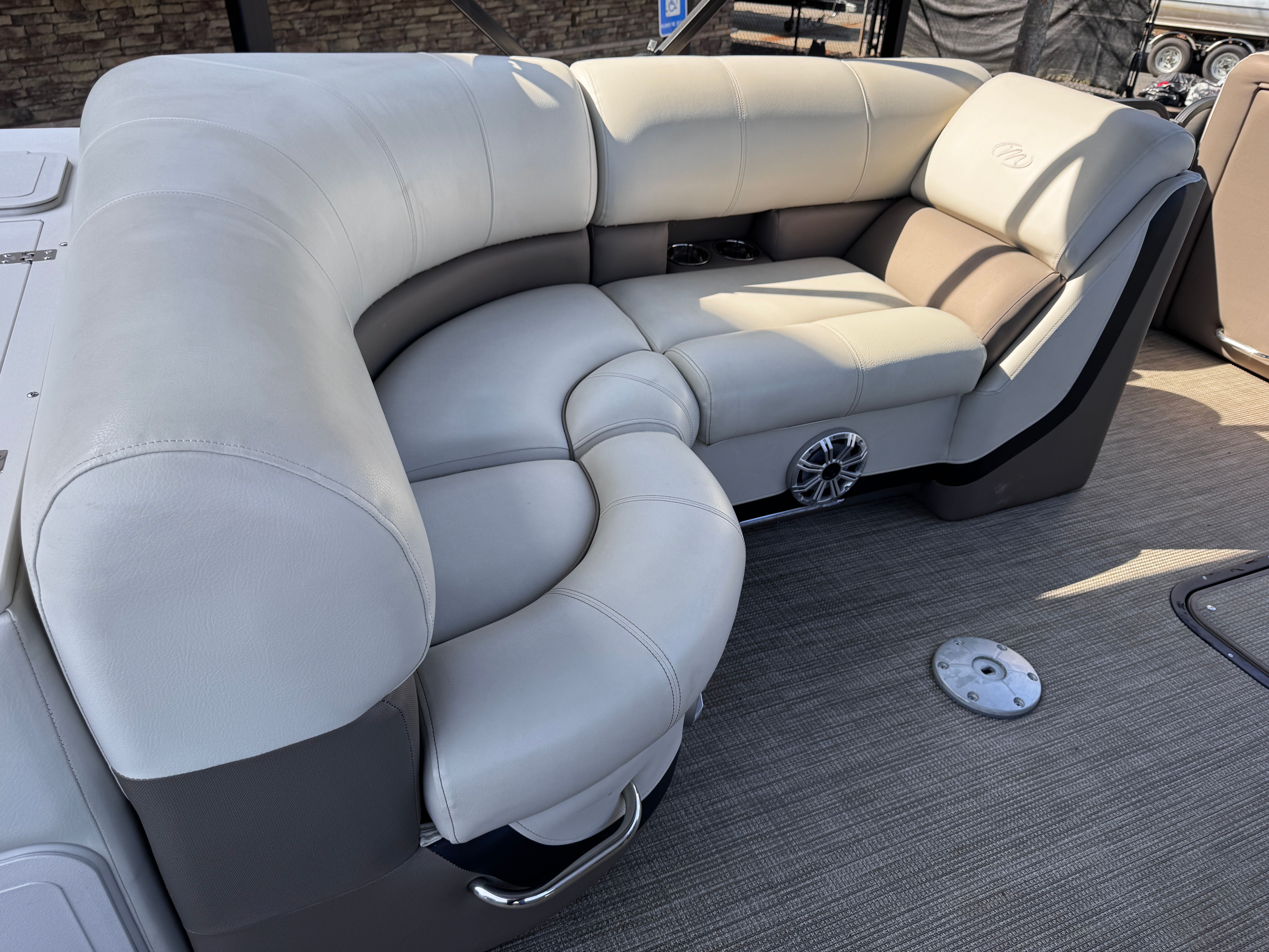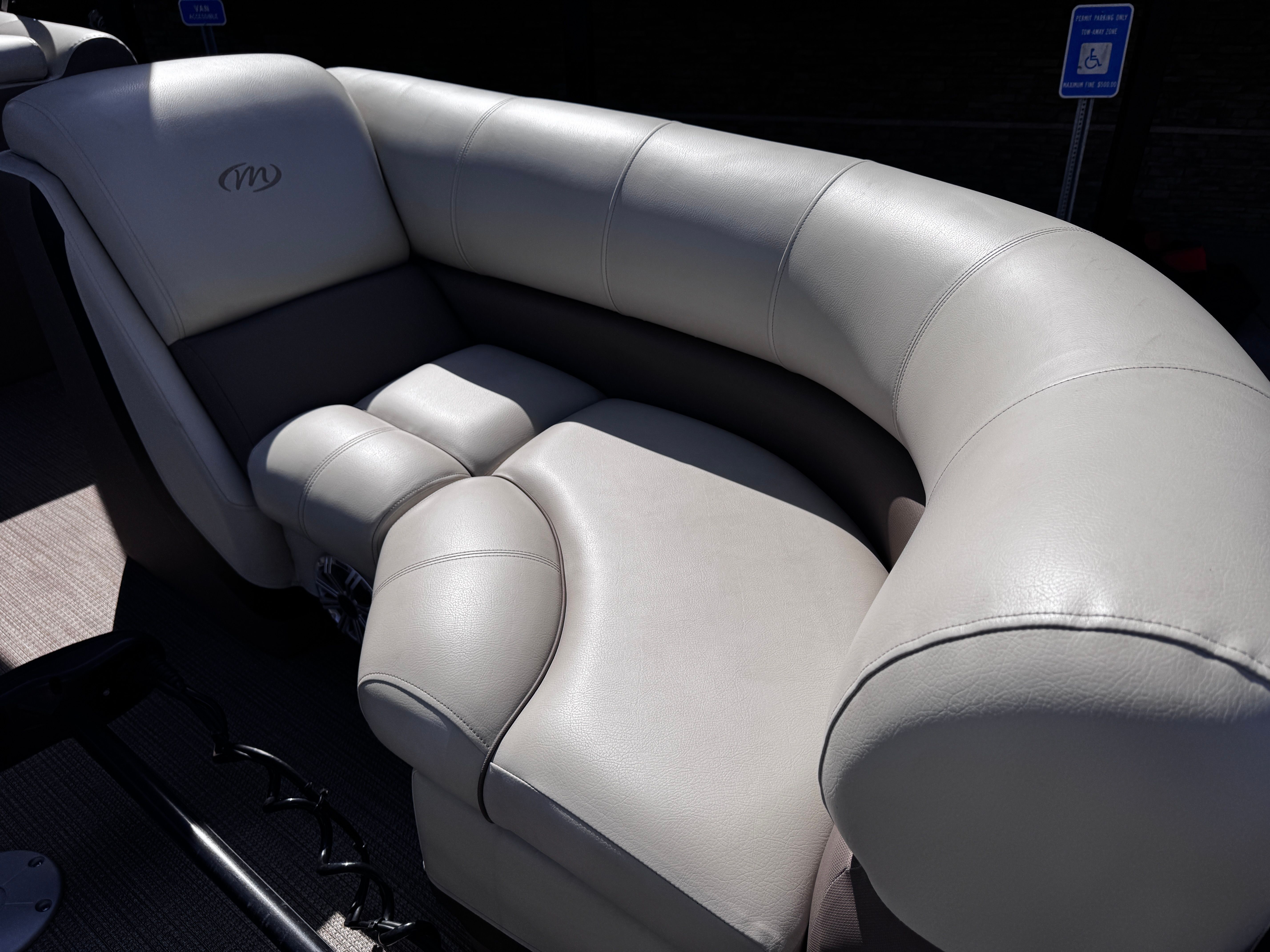 Powering the Manitou Oasis Angler 220 SHP is a robust 250-horsepower engine with only 95 hours of use. This single-engine setup delivers impressive acceleration and smooth handling, ensuring you can navigate lakes, rivers, and coastal waters with confidence. The SHP (Sport Handling Package) hull design is engineered for superior stability and agility, allowing you to enjoy thrilling rides and tight turns while maintaining a comfortable and secure experience for everyone onboard. Whether you are towing water toys, heading to your favorite fishing spot, or simply cruising at sunset, the performance of this pontoon boat will exceed your expectations.