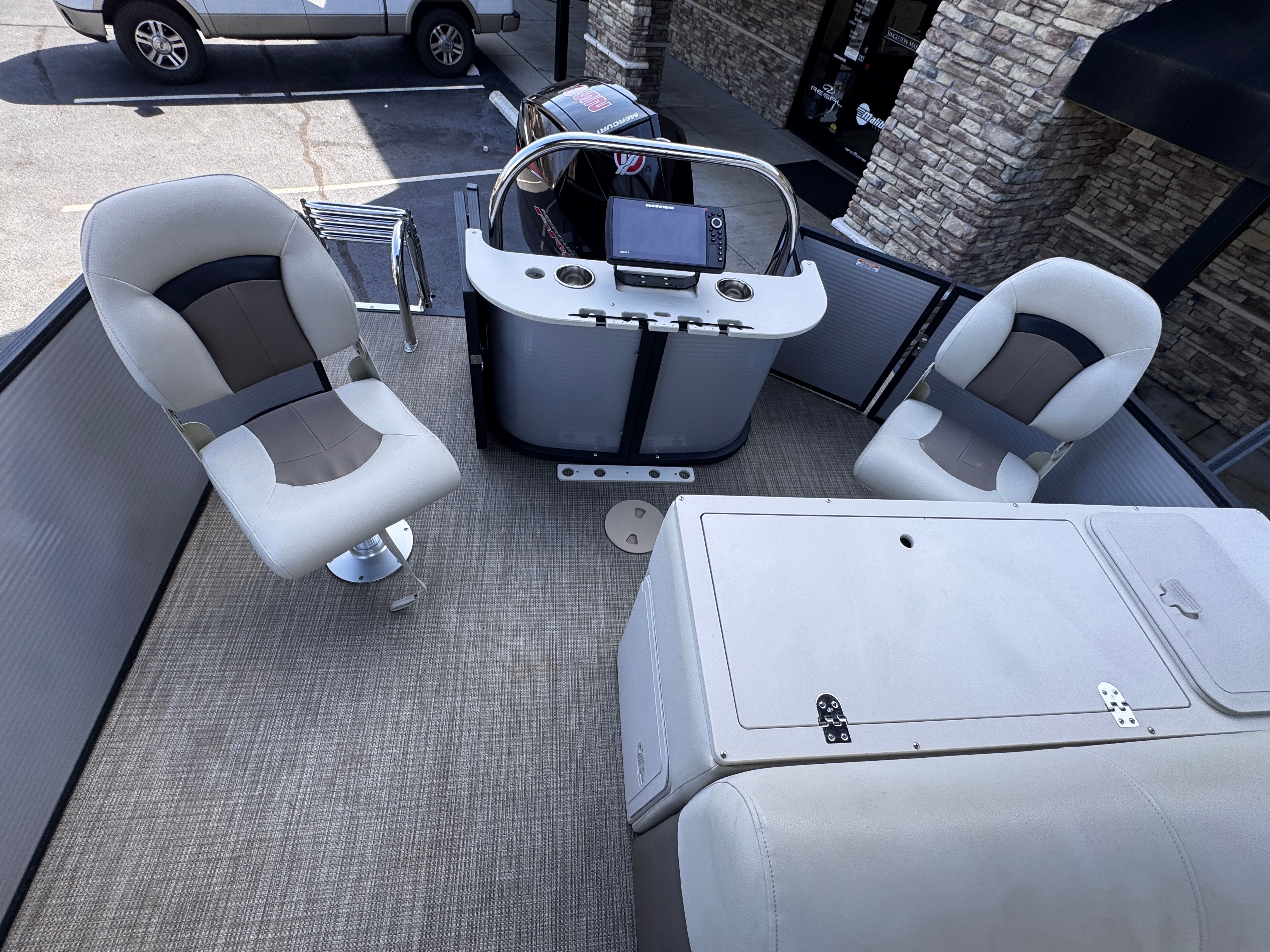 THIS 2020 MANITOU OASIS ANGLER 220 SHP WITH ONLY 95 HOURS ON THE 250 HP MERCURY PRO XS FOUR STROKE. FULL ENGINE SERVICE AND INSPECTION JUST COMPLETED.