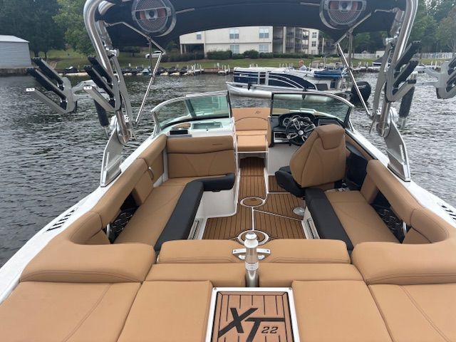 The Mastercraft XT22 is engineered with the needs of water sports lovers in mind. Its spacious 22.33-foot layout provides plenty of room for your crew to relax, socialize, and gear up for action. The boat’s design maximizes comfort and convenience, making it easy to transition from thrilling rides to laid-back lounging. The XT22’s hull is crafted for optimal wake creation, giving you the perfect platform for skiing and wakeboarding. Every detail, from the seating arrangement to the storage compartments, is thoughtfully designed to enhance your time on the water.