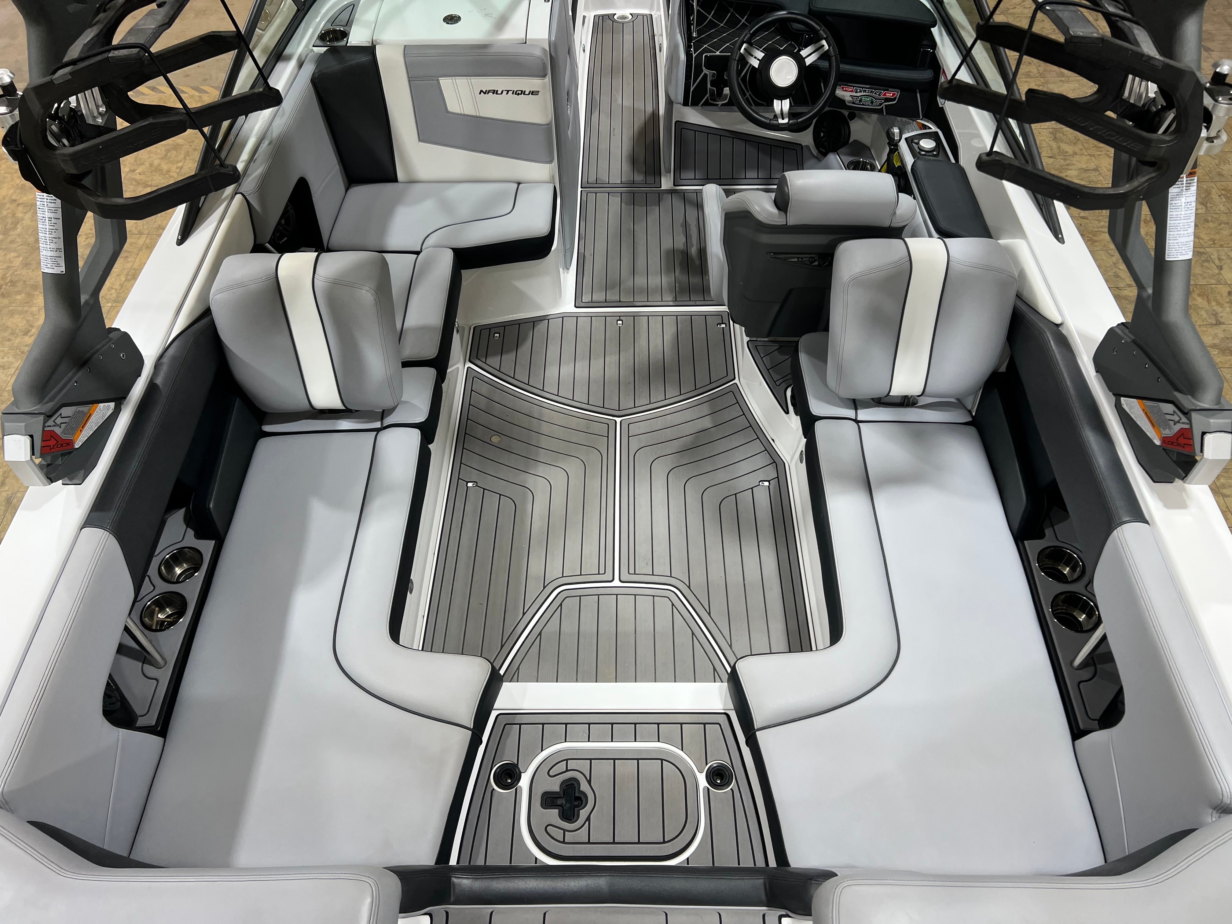 Beyond its impressive performance and stylish design, the Super AIR Nautique 230 offers practical benefits that make boat ownership a breeze. Its manageable 23-foot length makes docking and maneuvering simple, even for those new to boating. The efficient engine is designed for both power and fuel economy, allowing you to spend more time on the water and less time at the pump. Thoughtful storage solutions throughout the boat keep your gear organized and out of the way, so you can focus on having fun. The durable construction and quality materials ensure that this Nautique boat for sale will stand up to years of use and adventure.