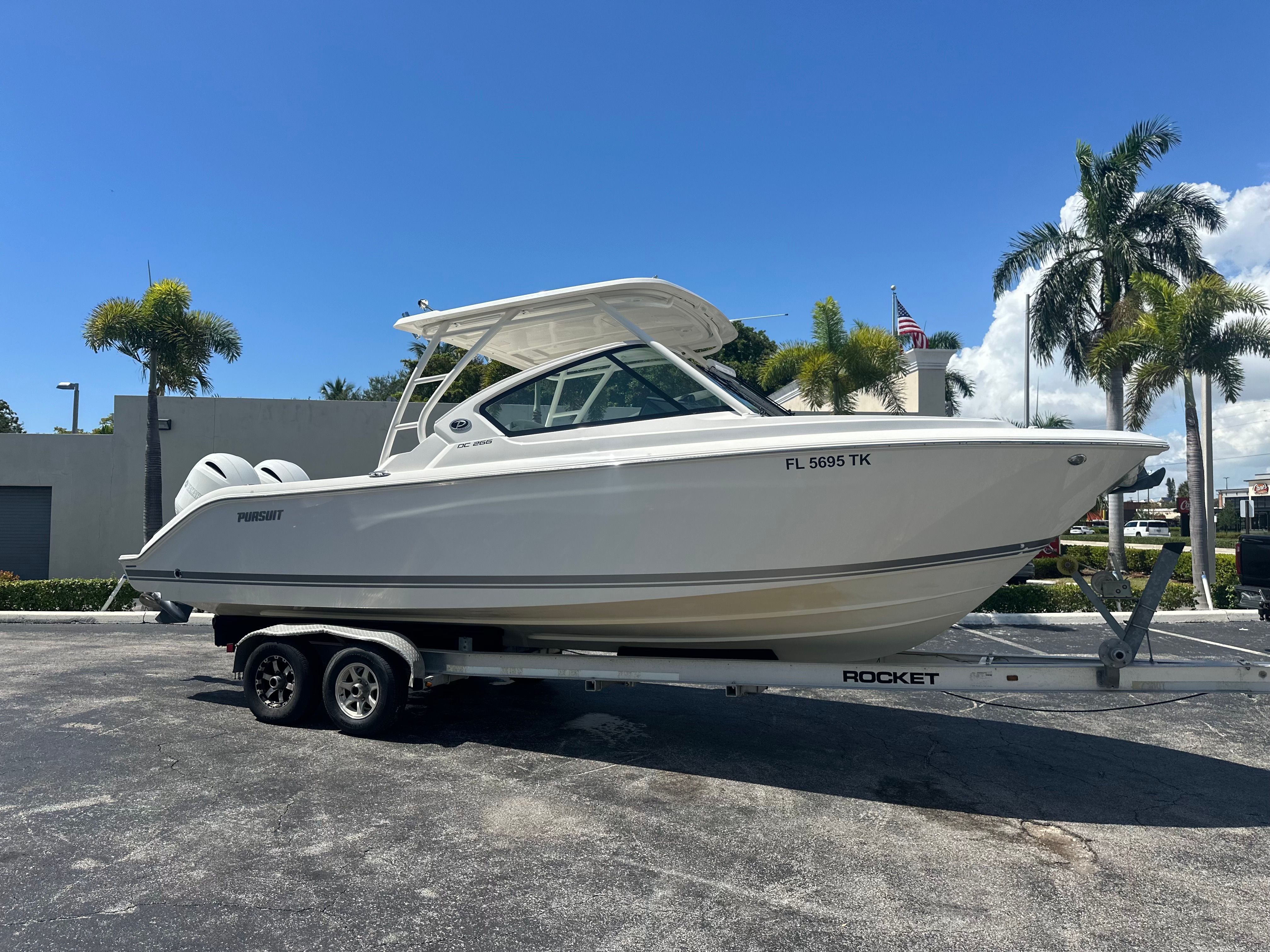 Turnkey and ready for delivery, this 2023 Pursuit DC 266 is the perfect dual console for family cruising, or fishing. Powered by reliable twin Yamaha 200’s with 255 hours, she offers smooth performance and confident handling in all conditions. Finished in a clean white hull with an elegant Platinum boot stripe, this DC 266 stands out with timeless style and classic Pursuit lines. The spacious layout includes plush bow seating, a convertible aft lounge, portside head compartment, and ample storage throughout—ideal for long days on the water.