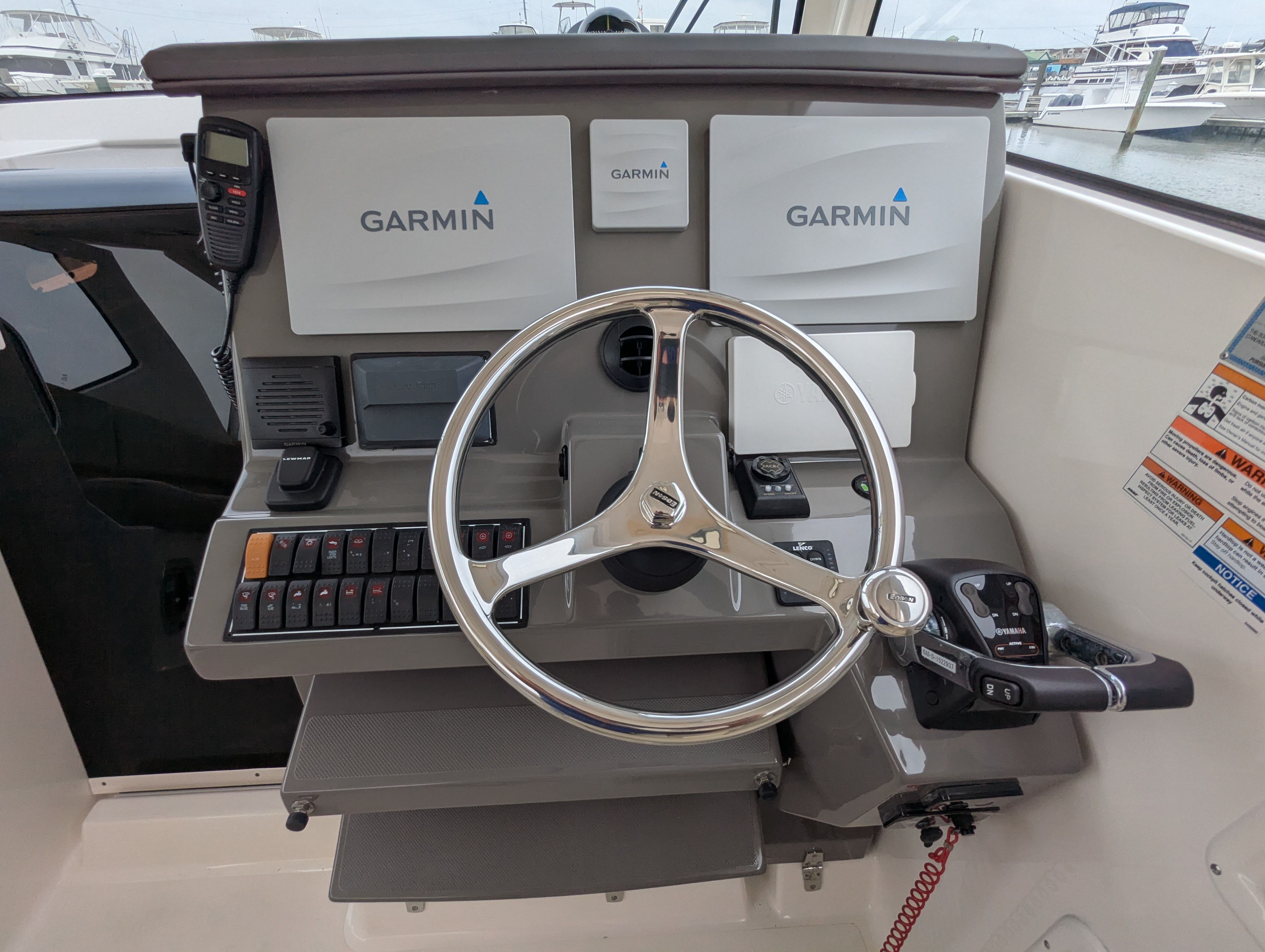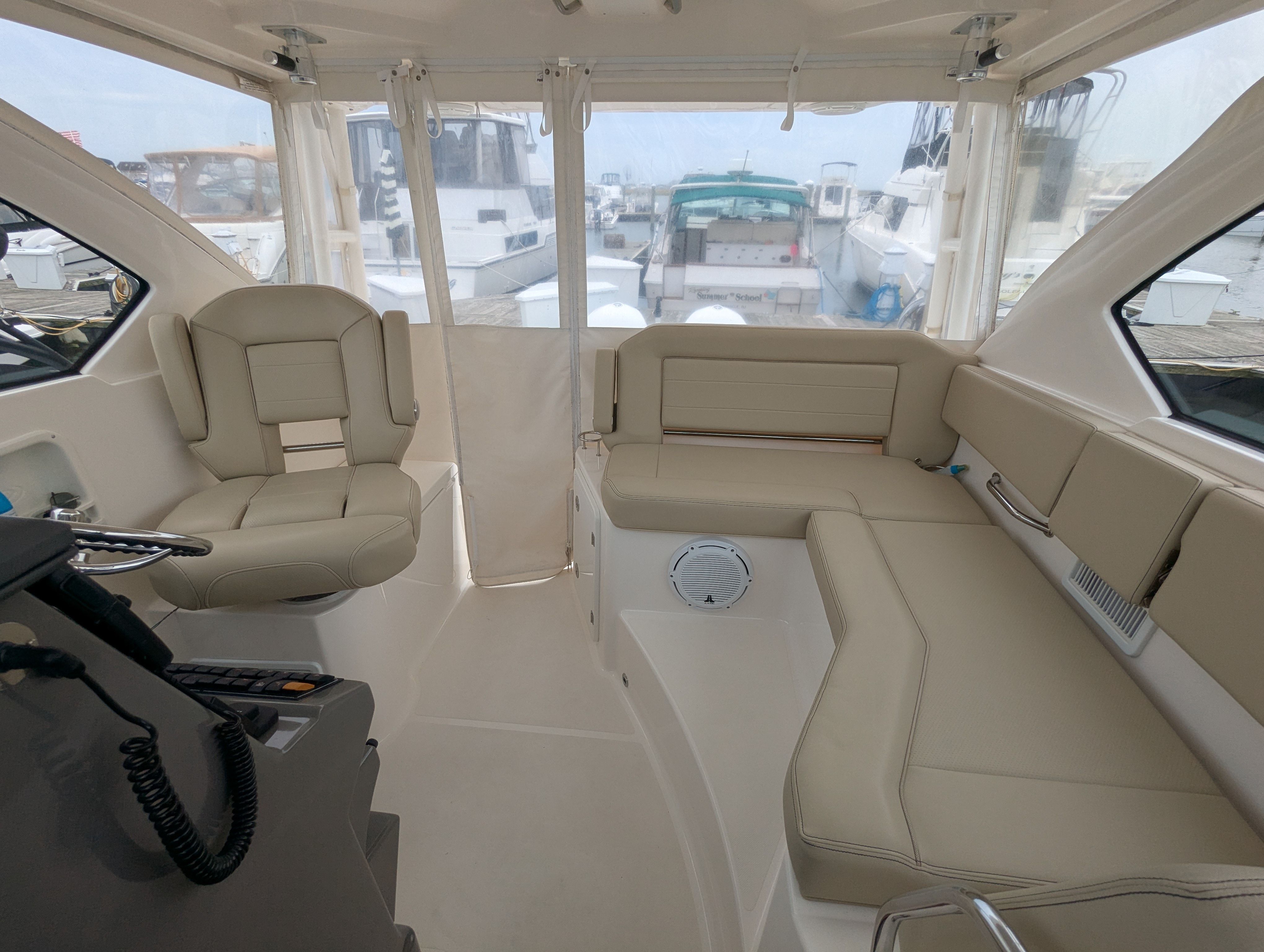 The Pursuit OS 355 Cruiser is designed with both leisure and practicality in mind. Its spacious layout offers plenty of room for guests, making it perfect for social gatherings, family outings, or relaxing solo escapes. The boat’s length of nearly 38 feet provides a stable platform, ensuring comfort even in choppy waters.Special features of the OS 355 include a thoughtfully designed cockpit and cabin, which maximize both functionality and luxury. The helm station is equipped for easy navigation, while the seating arrangements allow for relaxation and conversation. The boat’s construction reflects Pursuit’s commitment to quality, with attention to detail evident in every aspect of the design.
