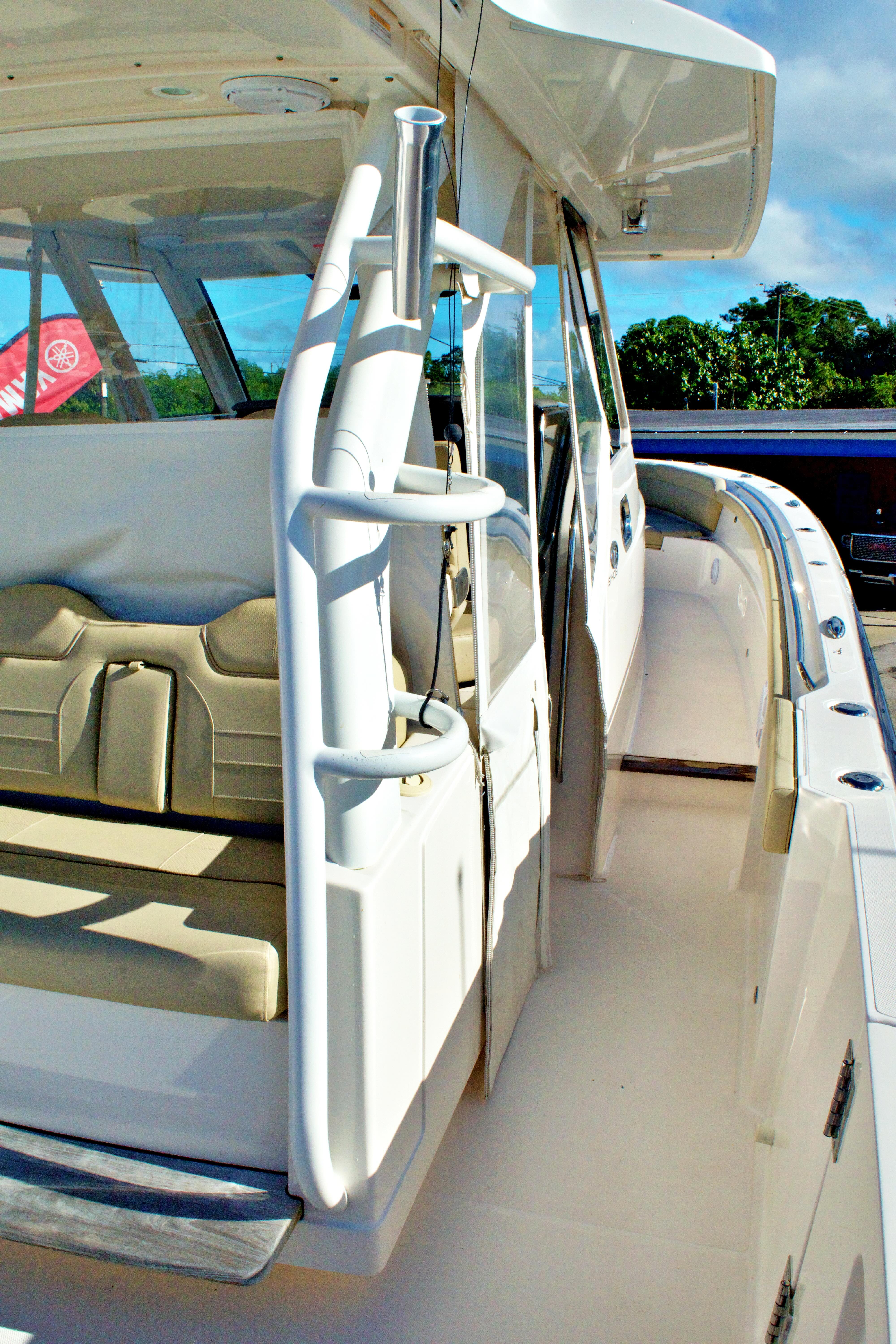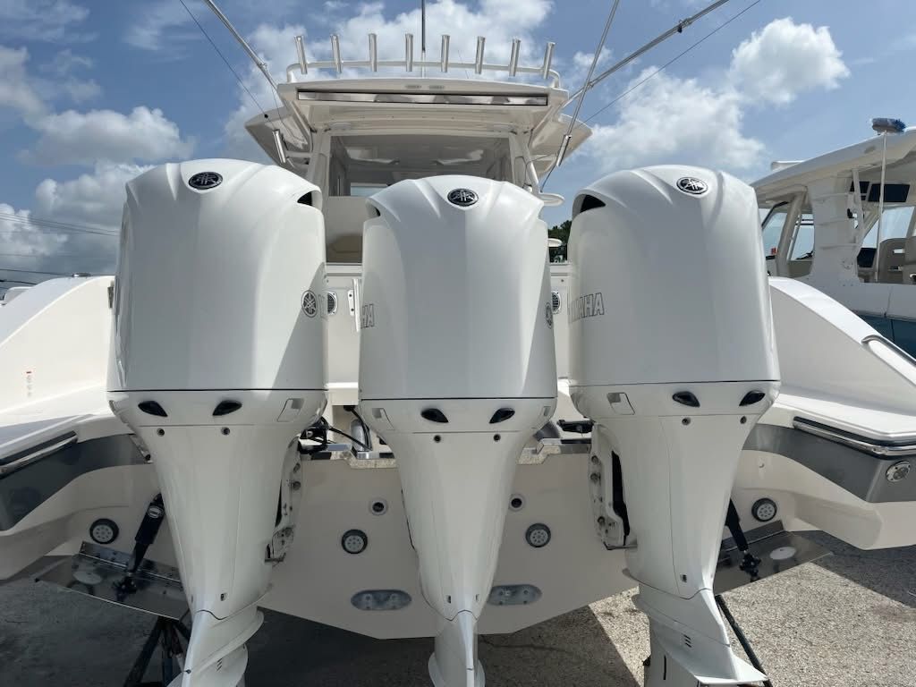 2017 Pursuit S 408 with Triple Yamaha 350s - Immerse yourself in the ultimate offshore experience with this meticulously maintained Pursuit S 408. Powered by triple Yamaha 350 engines, this sleek and powerful vessel offers unparalleled performance on the water. Equipped with a brand-new 8kW Fisher Panda generator installed in April 2023, you can enjoy extended adventures with all the comforts of home. The engines received a thorough service in April 2023, ensuring reliability and peak performance. Whether you're a fishing enthusiast or seeking a luxurious cruising experience, this Pursuit S 408 delivers on every front. Don't miss the opportunity to own a top-tier boat that combines cutting-edge technology, power, and comfort seamlessly.