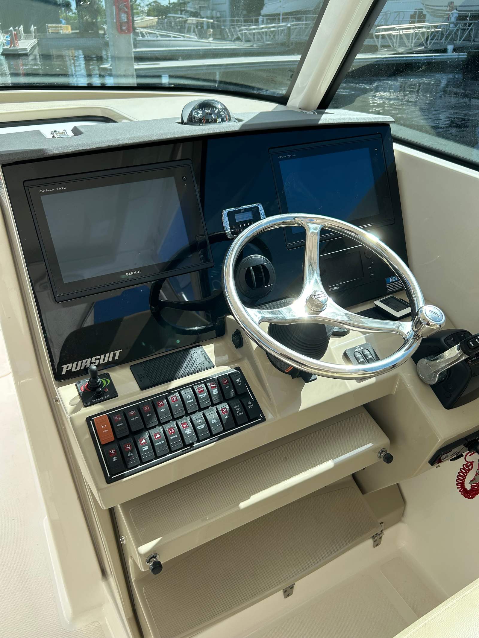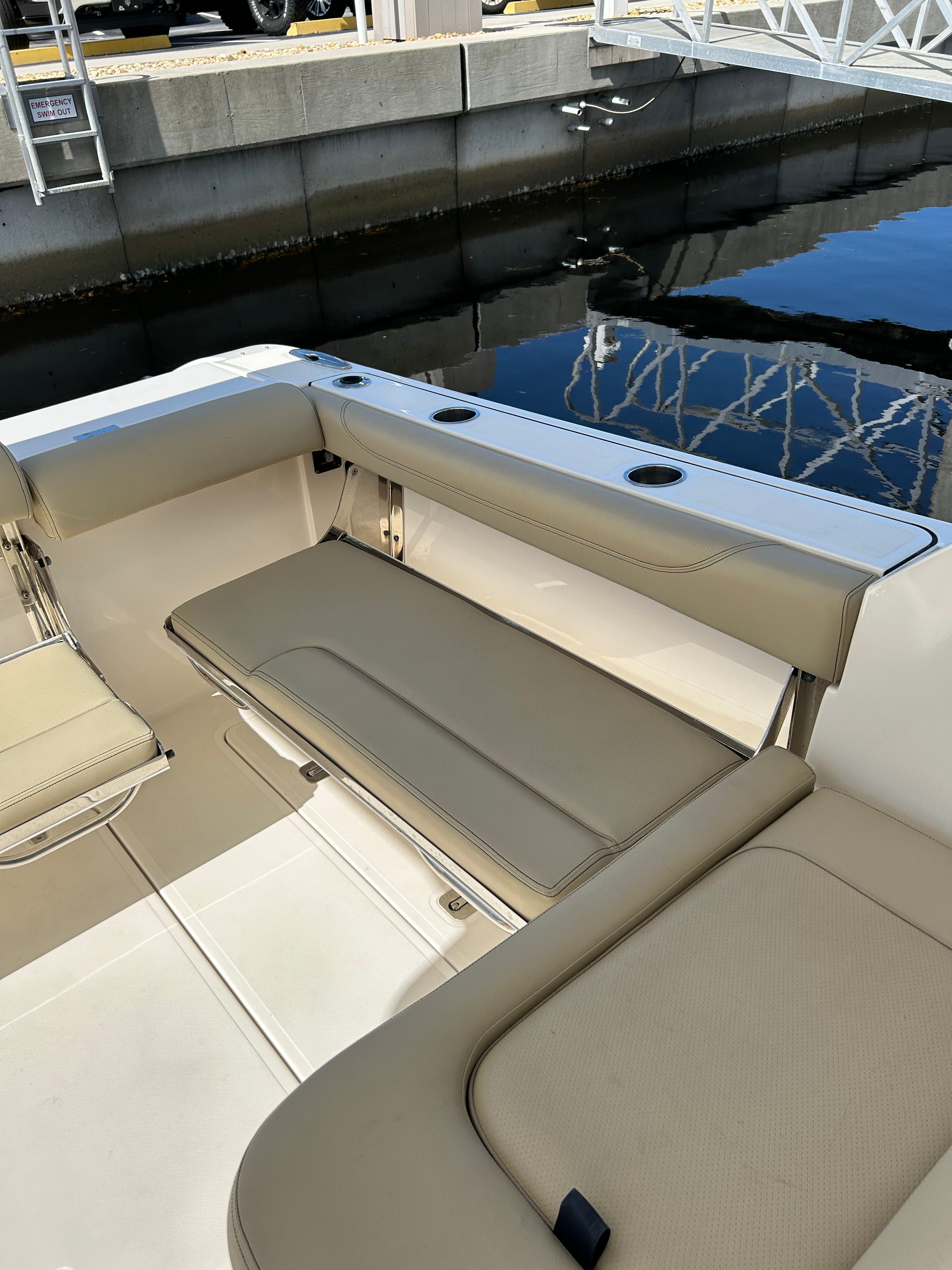 This Pursuit DC 325 Dual Console boat for sale is perfectly suited for a variety of on-water activities. Imagine setting out for a family day trip, with plenty of space for everyone to relax and play. The dual console design makes it easy to switch between cruising, fishing, and water sports, adapting to your group’s interests and needs. Anglers will appreciate the ample deck space and storage for tackle and gear, while those seeking relaxation can stretch out in the comfortable seating areas and soak up the sun. The DC 325 is also an excellent choice for luxury getaways, offering a stylish and well-equipped platform for exploring new destinations or enjoying quiet moments on the water.