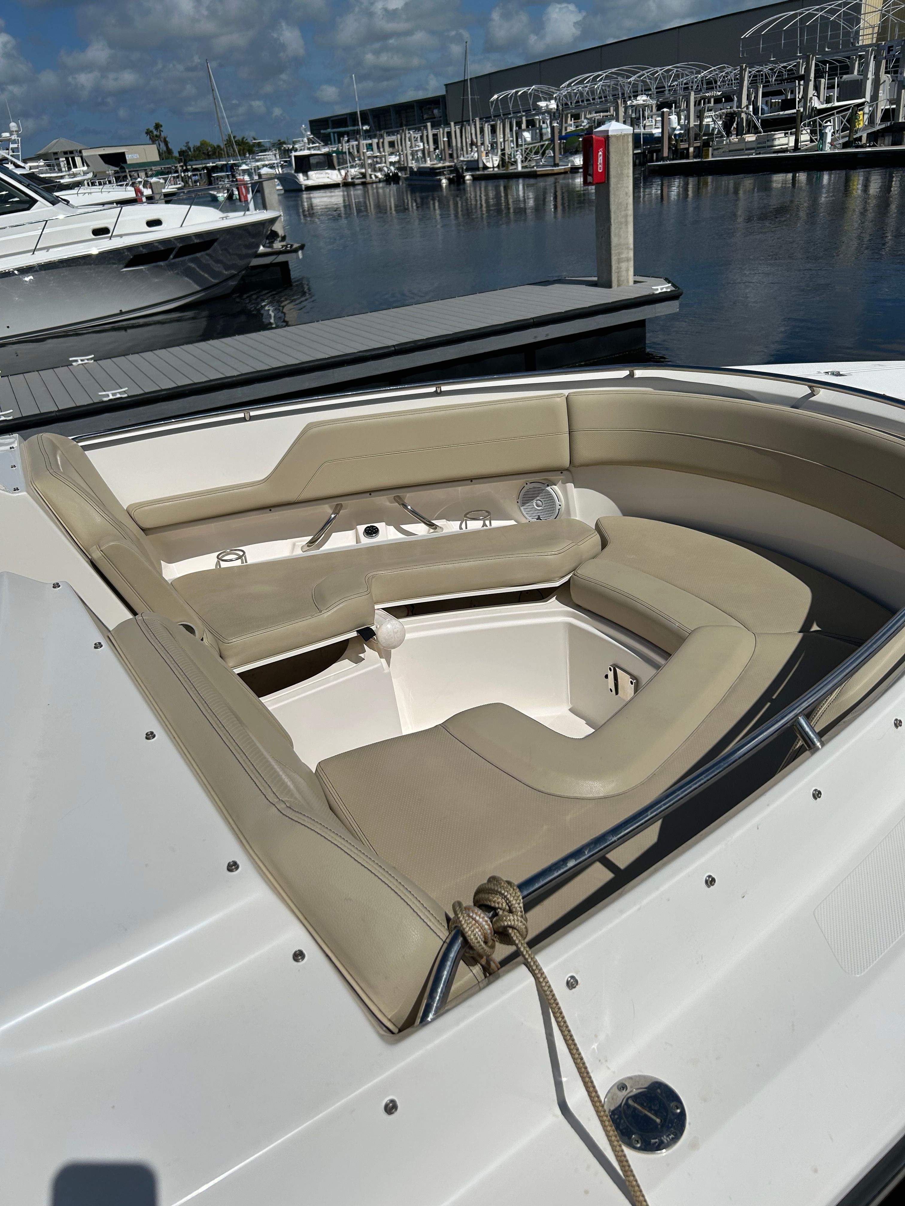 The Pursuit DC 325 is engineered for convenience and ease of ownership. Its dual engines not only provide impressive power but also contribute to fuel efficiency, allowing you to enjoy longer trips without frequent refueling stops. The boat’s generous storage compartments make it simple to stow fishing gear, picnic supplies, and personal items, ensuring everything you need is within reach. Docking is a breeze thanks to the responsive handling and intuitive controls, while the durable construction ensures your investment stands the test of time. Whether you’re a seasoned boater or new to the water, the DC 325’s user-friendly features make every outing enjoyable and stress-free.