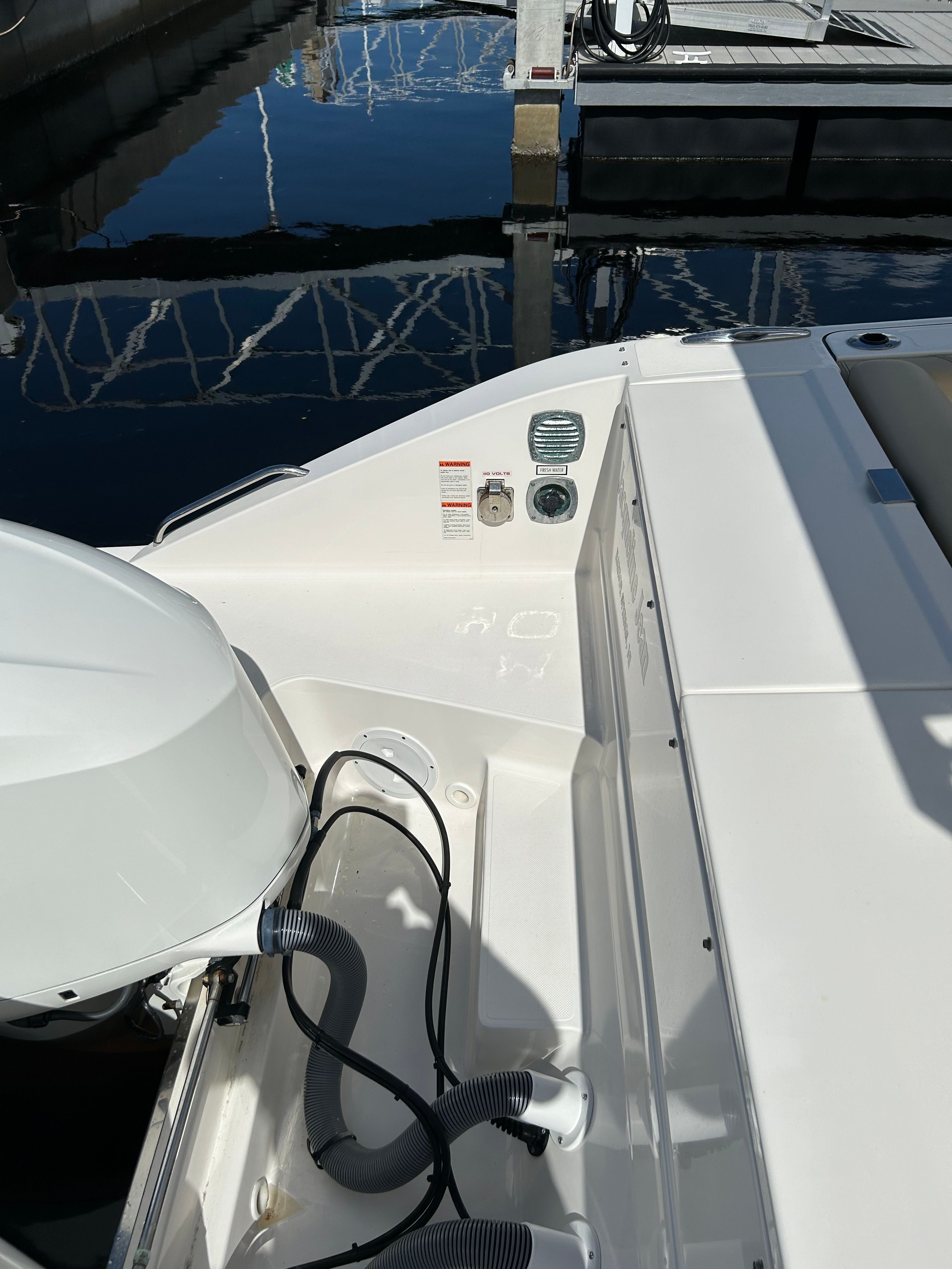 Powering this Pursuit DC 325 are twin engines, delivering a combined 600 horsepower for exhilarating performance and smooth cruising. Whether you’re navigating coastal waters or heading offshore for a day of adventure, the DC 325’s robust engine setup ensures you have the power and reliability you need. With only 237 engine hours, these engines offer plenty of life and dependable operation, giving you peace of mind as you explore new horizons. The dual engine configuration also enhances maneuverability and control, making docking and tight turns effortless.