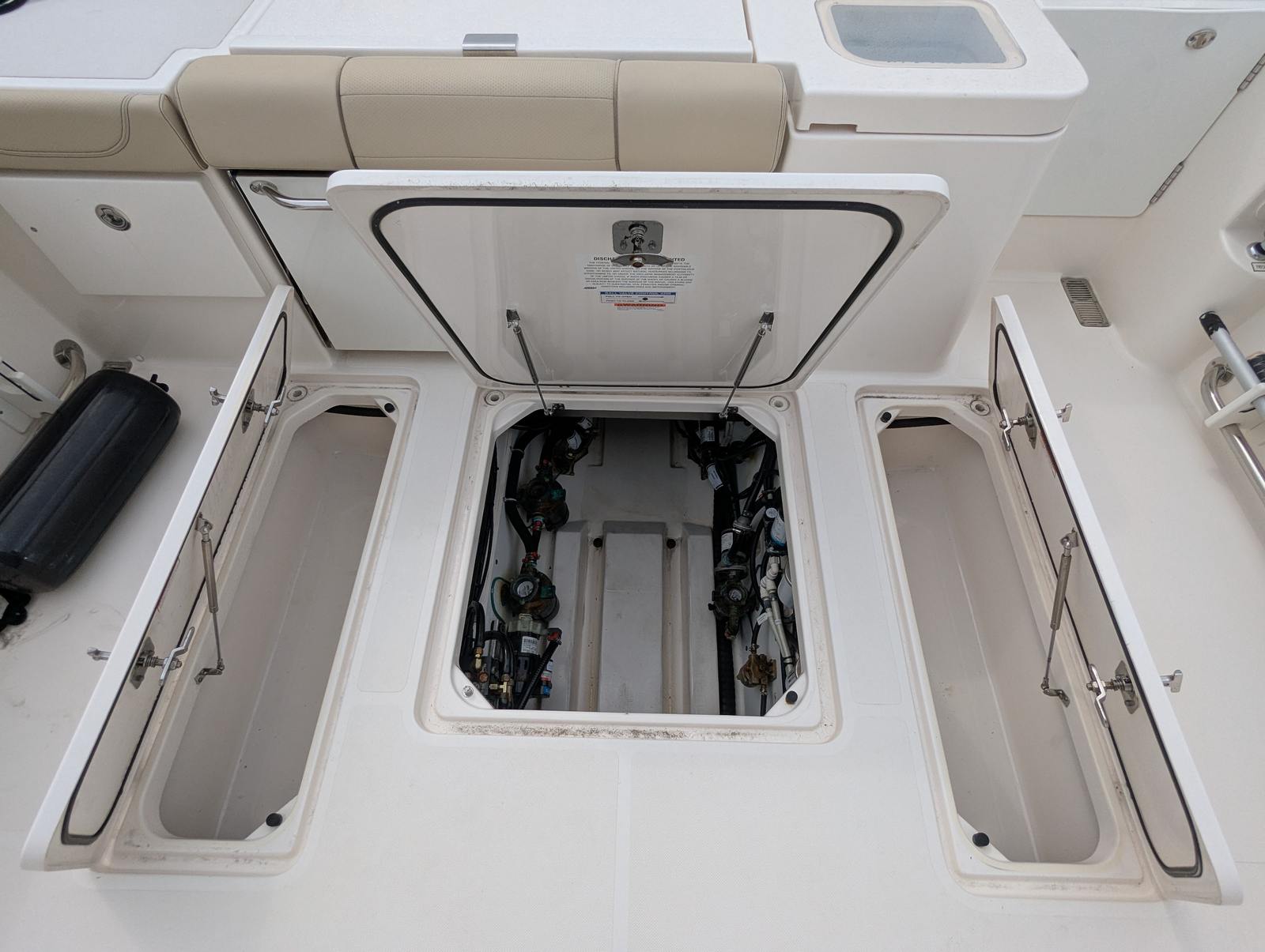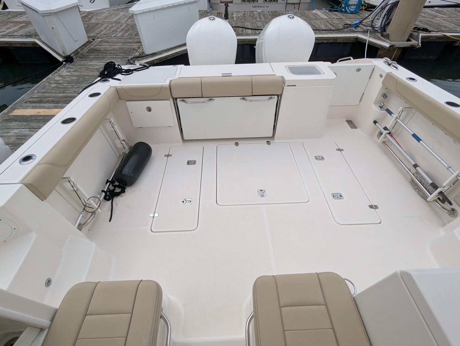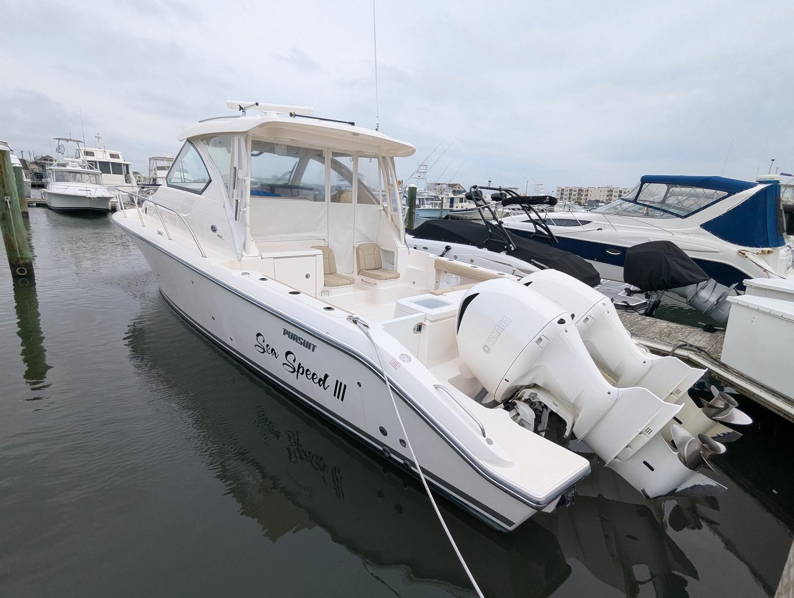 Powering the Pursuit OS 355 are two robust engines, delivering a combined 700 horsepower. With only 201 engine hours, these engines have plenty of life left, promising reliable performance and exhilarating speed. Whether you’re cruising along the coastline, heading out for a weekend getaway, or exploring new waters, the OS 355’s twin-engine setup ensures smooth handling, quick acceleration, and impressive fuel efficiency.The dual engines not only provide ample power for a variety of activities but also enhance maneuverability and safety. Navigating tight marinas or docking becomes a breeze, while the horsepower allows you to reach your destination swiftly and comfortably. For those who appreciate the thrill of boating, the Pursuit OS 355’s performance metrics make it a standout choice among cruiser boats for sale.