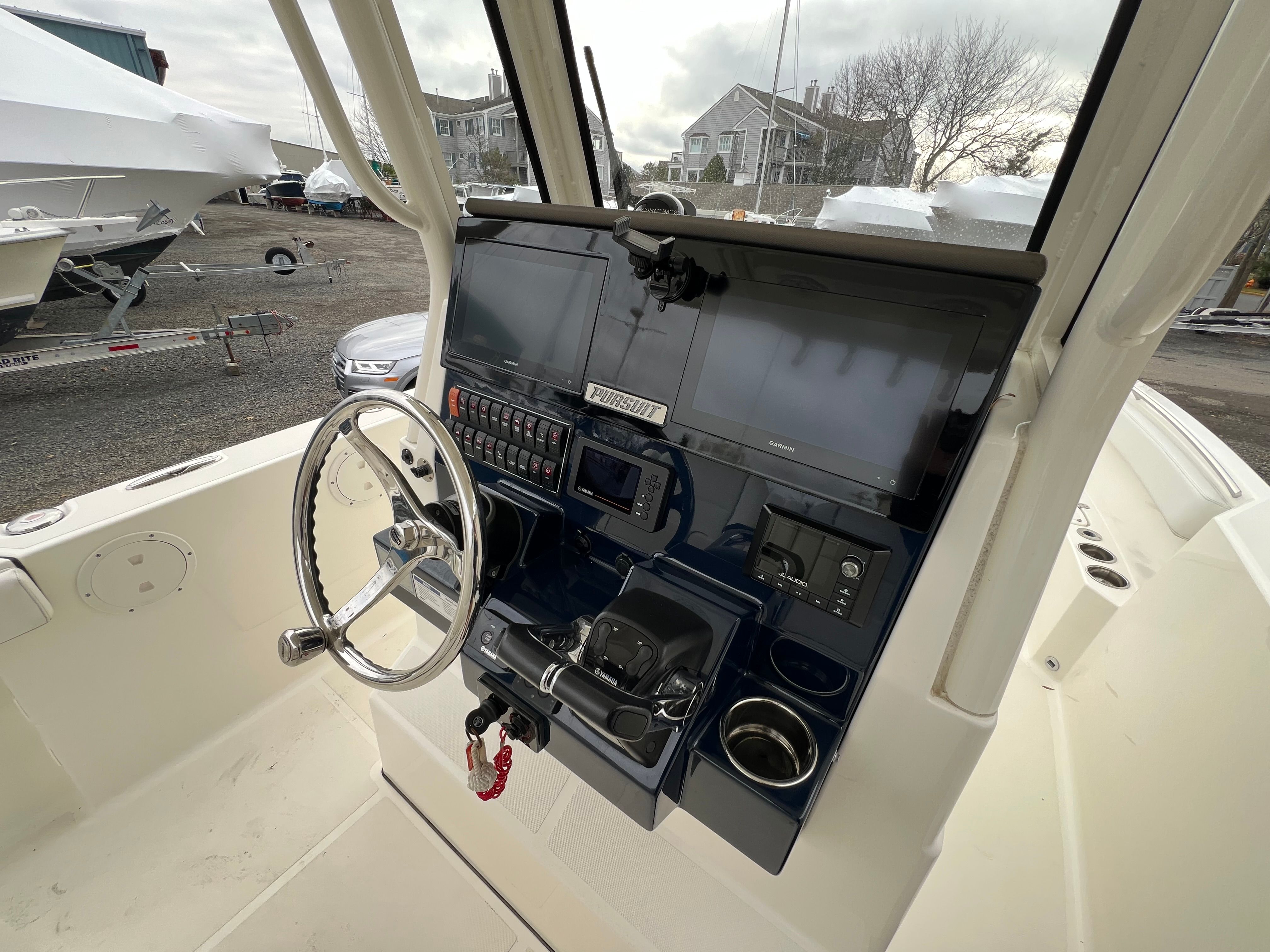 Trailer included, FLIR, Dual Garmin 12" Touch Screens, Radar/GPS/Fish, JL Audio Stereo, VHF, Bow Cushion Set