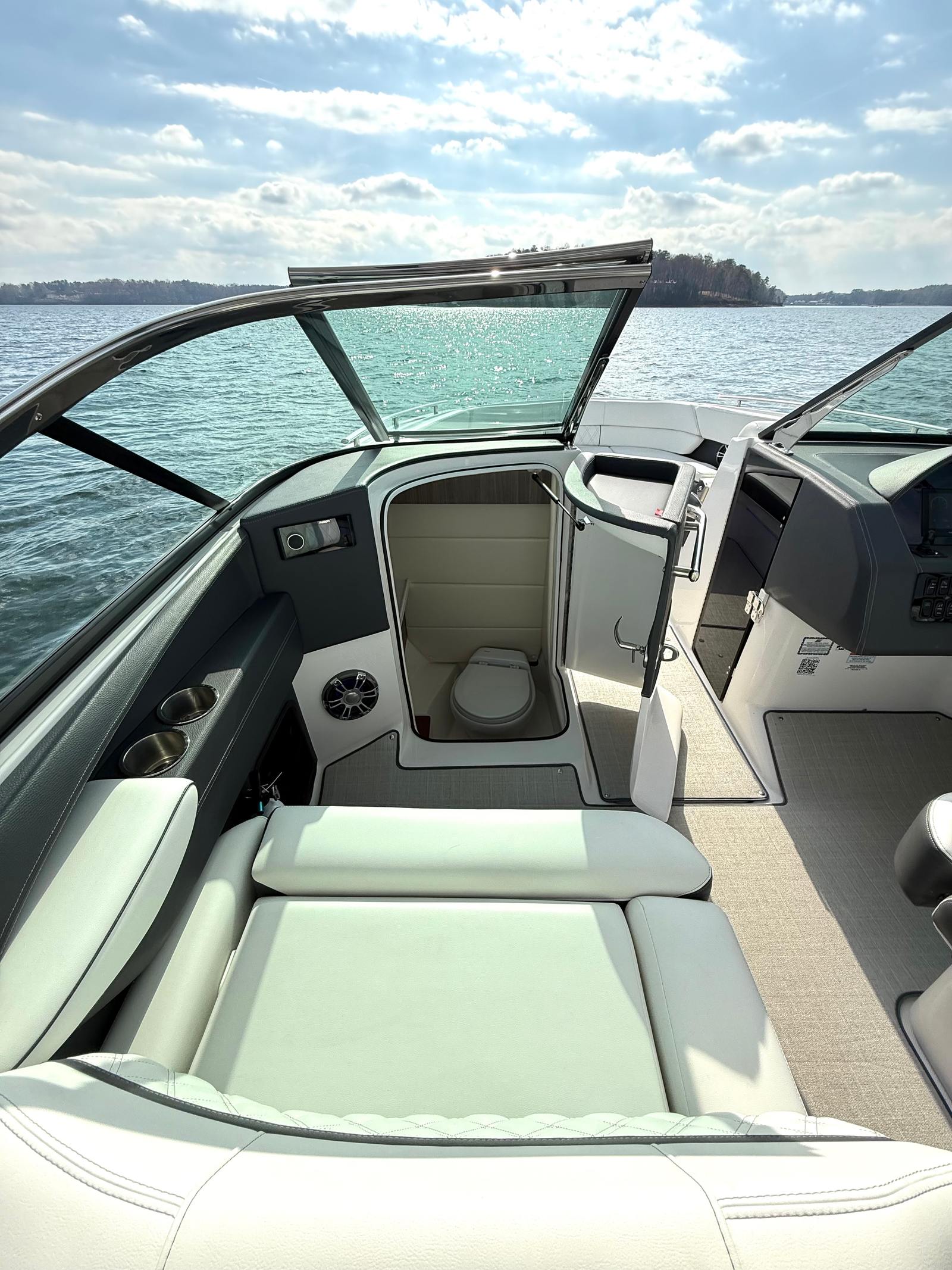 • Technology Package: 110V Battery Charger, Underwater Lights, Electric Helm Seat, Lighting Package, Docking Lights, High-Performance Stereo