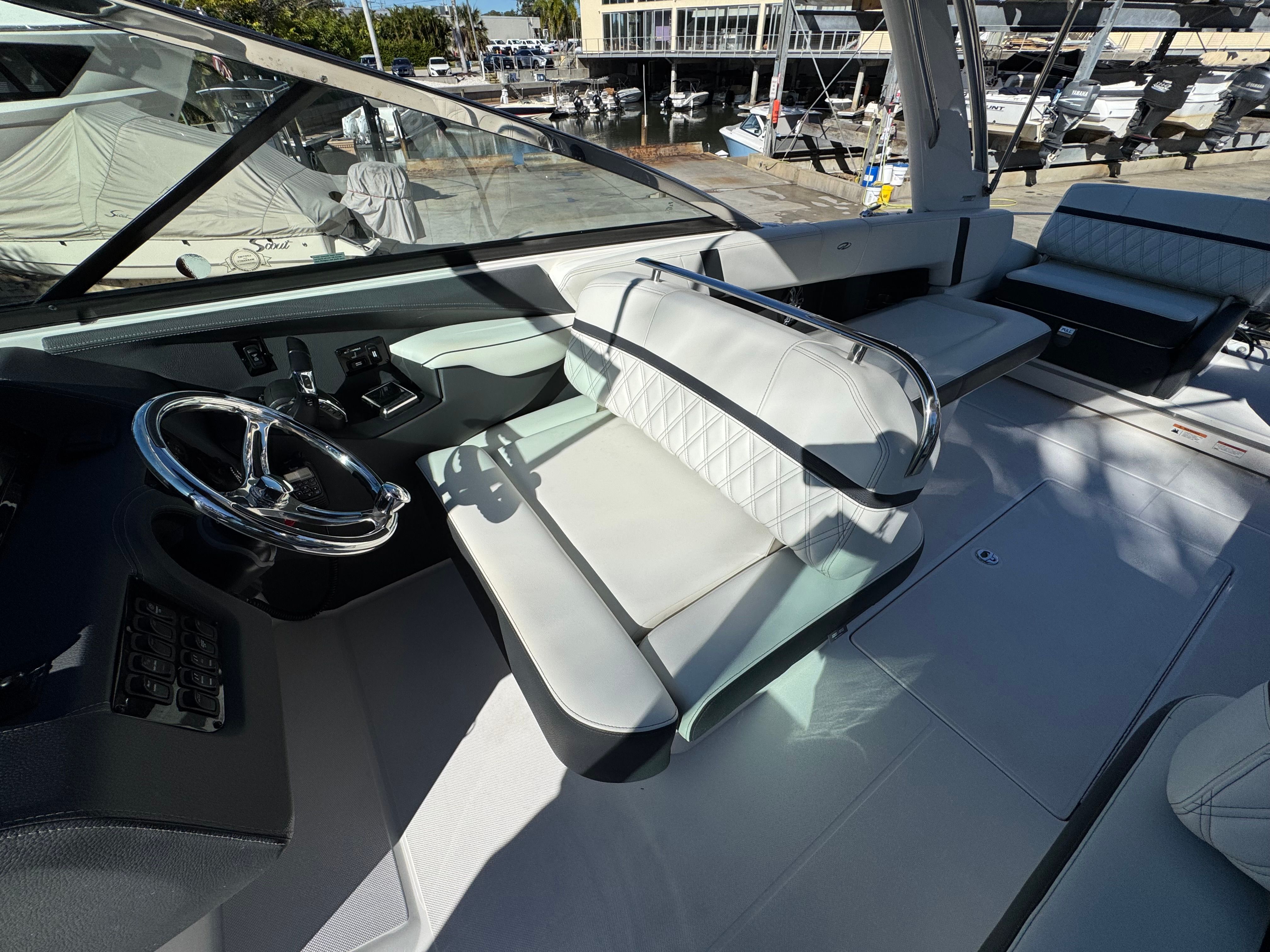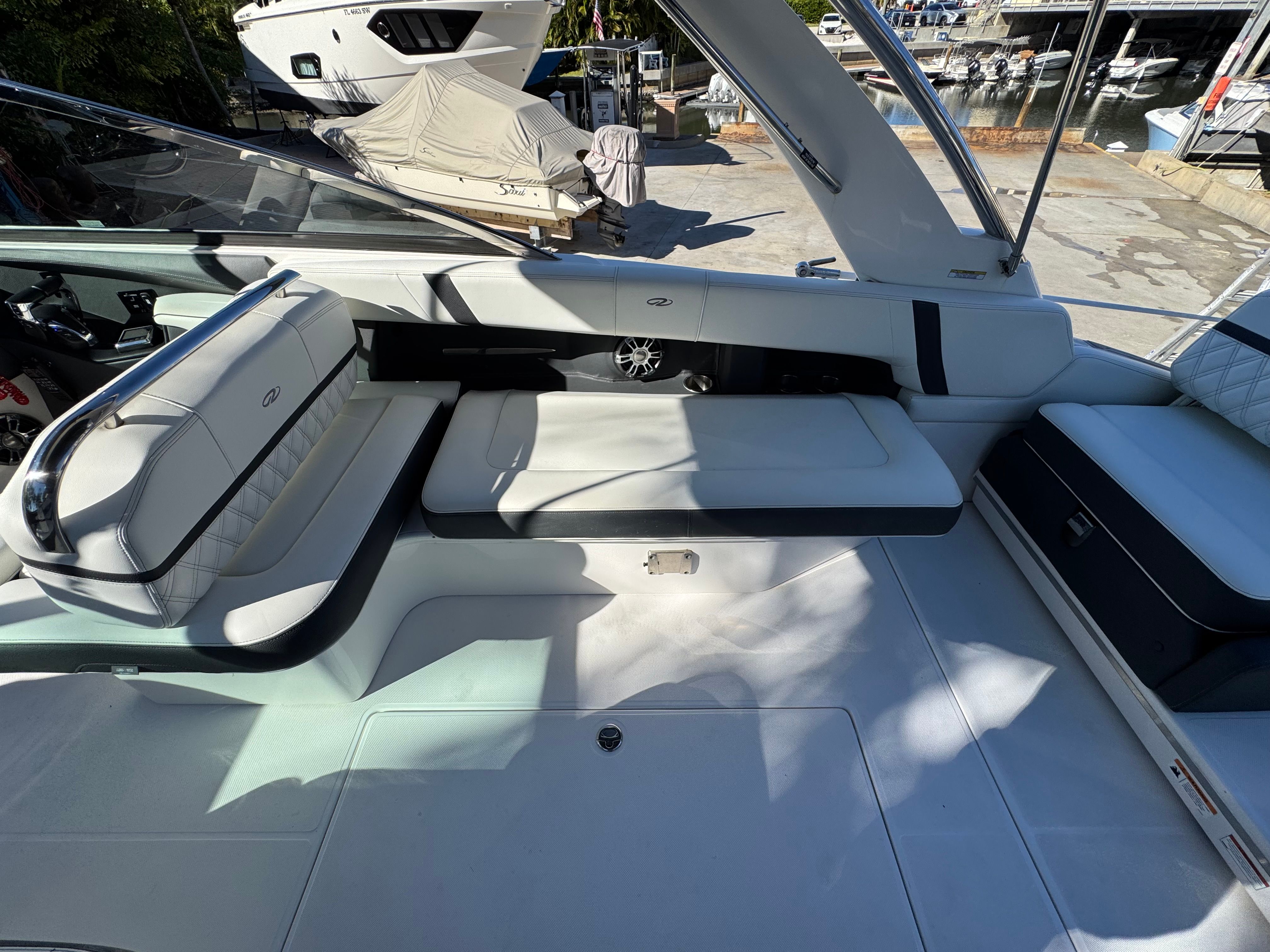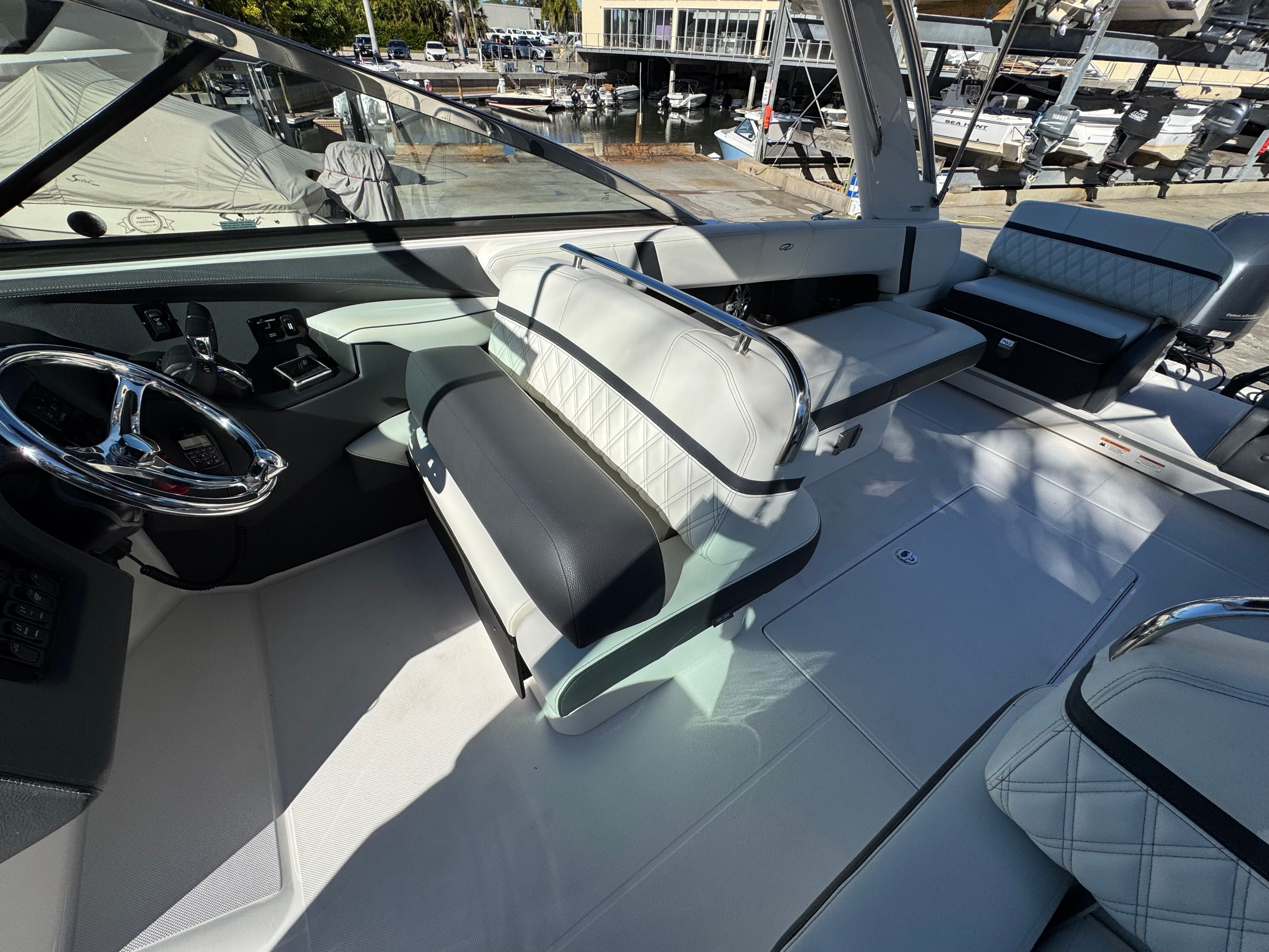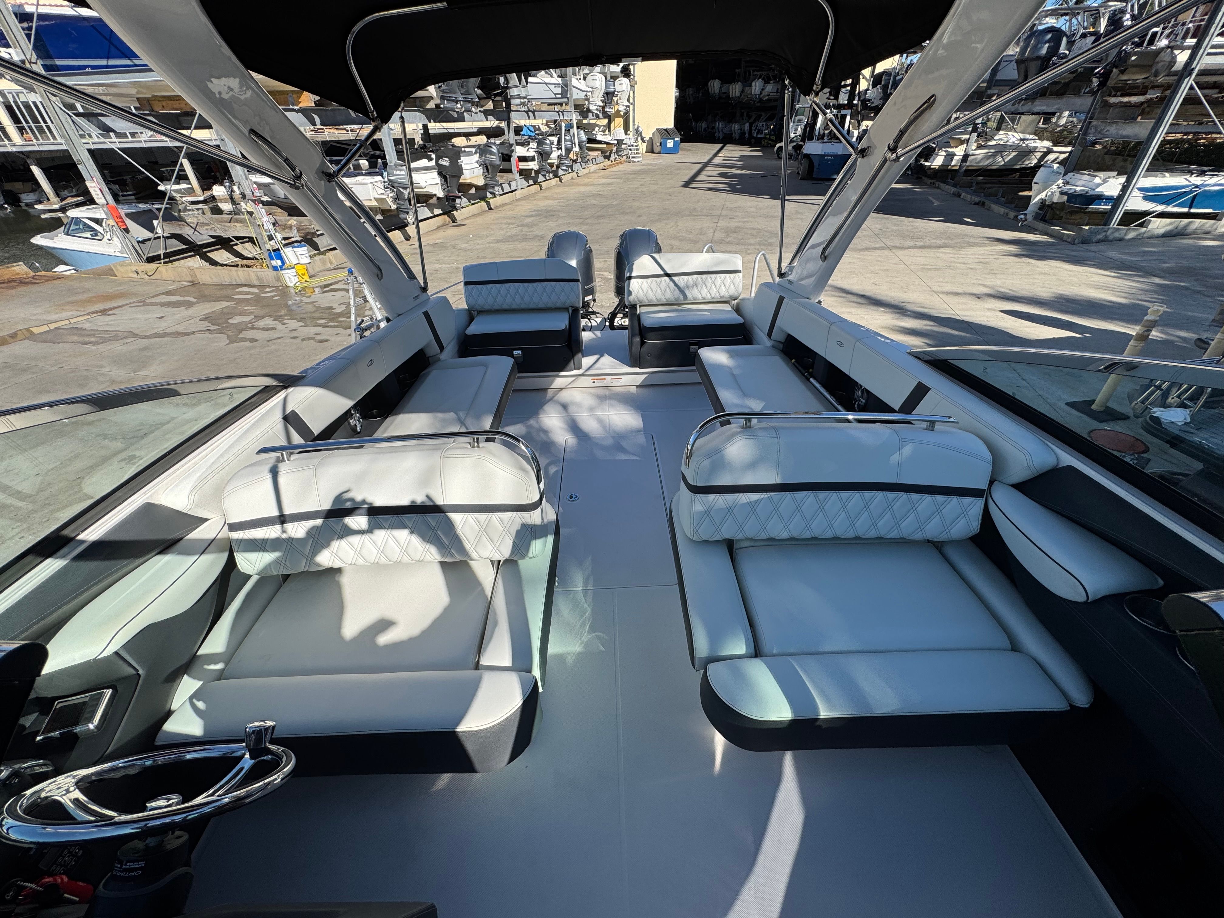 - SLIDEAWAY SEATING - With just a push of a button, slide the dual UltraLounges and center walk-thru to extend your cockpit or swim platform for an extra 10" of space.